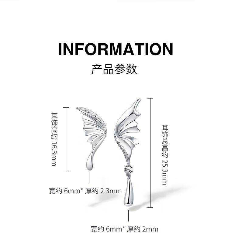 Saturday Fu PT950 Platinum Earrings Butterfly Simple Exquisite Fashion Women's Earrings Gift 3.37g