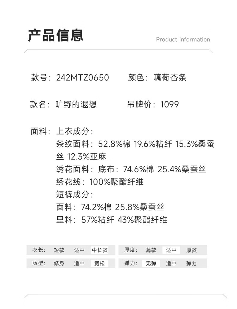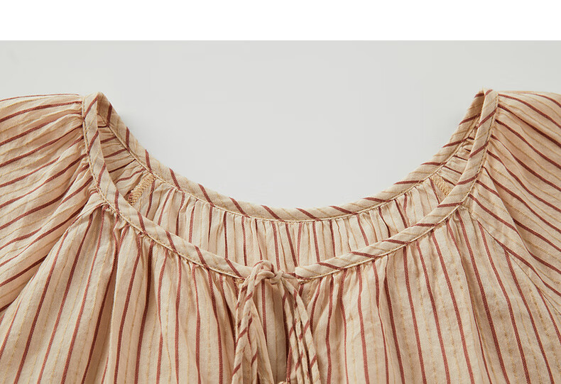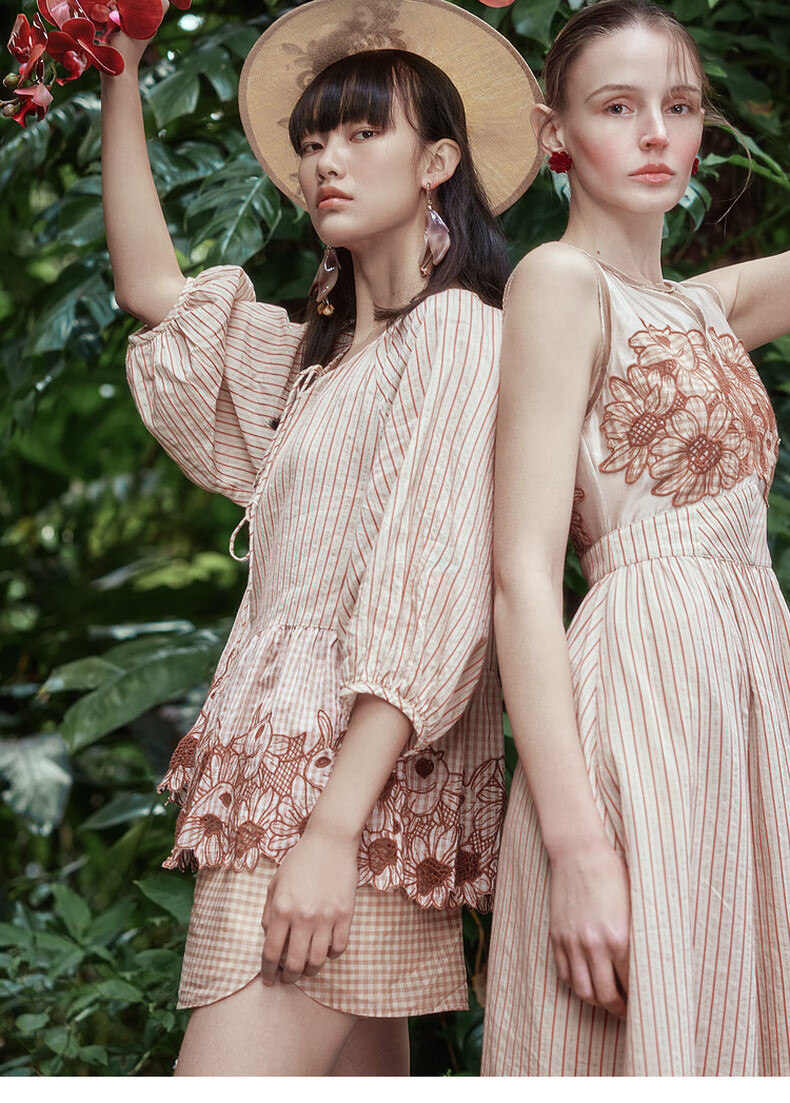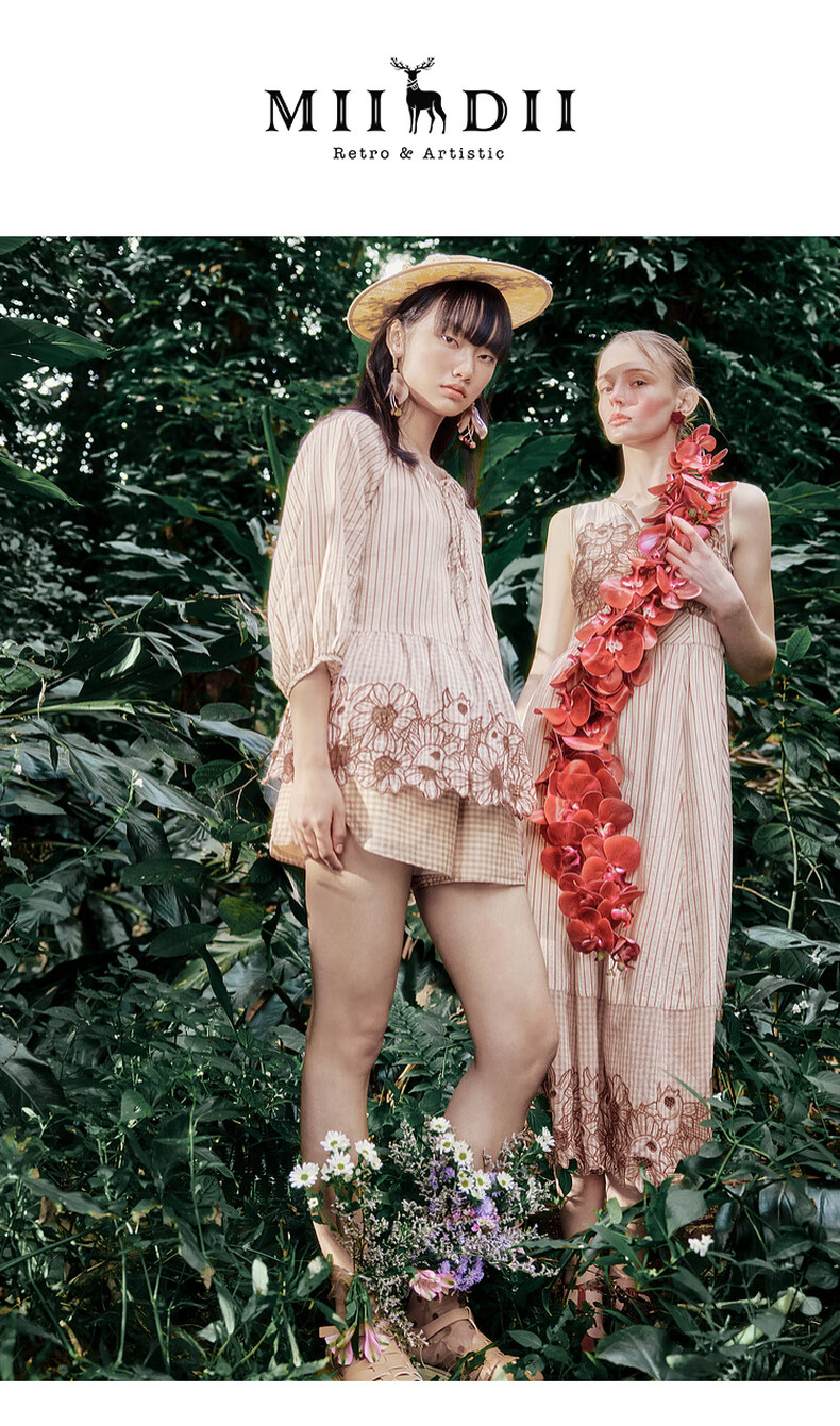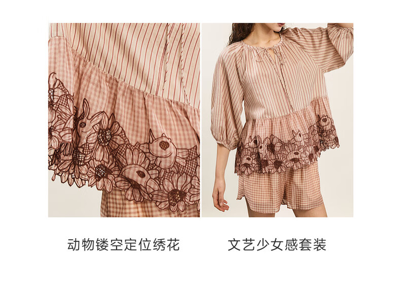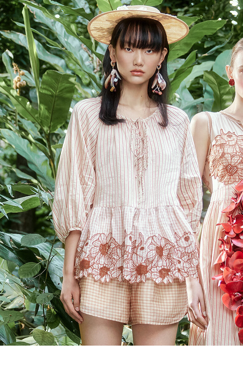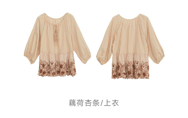 Riddle suit for women summer new style literary style embroidered loose top + shorts 242MTZ0650 lotus root apricot strips XS