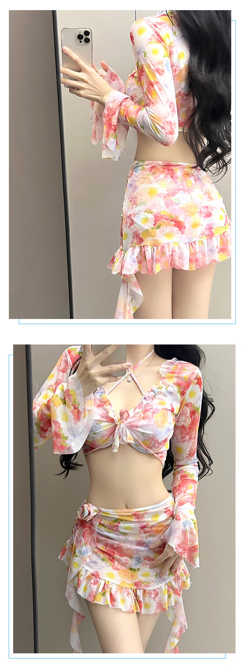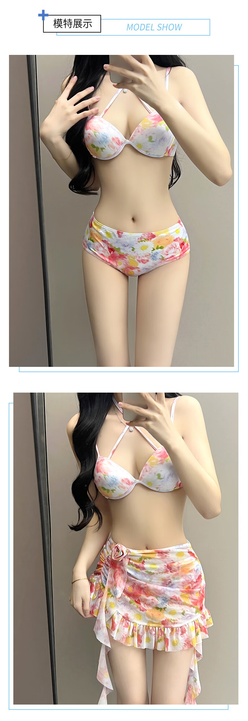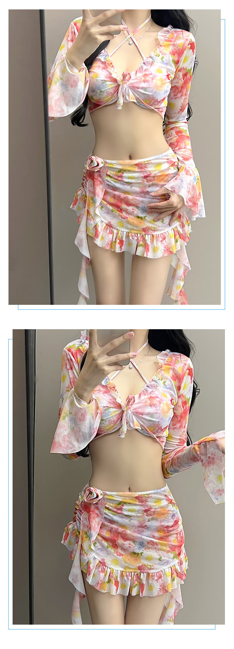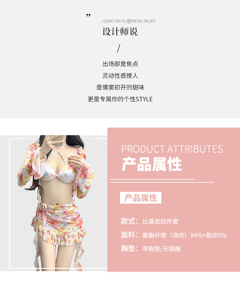 Lugeli bikini swimsuit for women 2024 new style seaside vacation four-piece set conservative high-end split swimsuit hot spring floral bikini XL recommended 110-135Jin Jin equals 0.5 kg