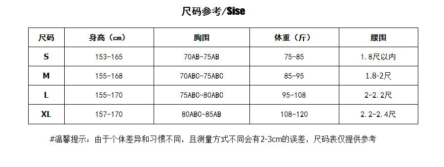 China (cm) 160-165/84-86 165-170 / 88-90 167-172 / 92-96 168-173 / 98-102 170-176 / 106-110