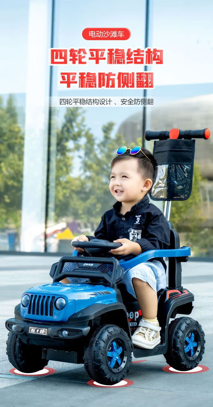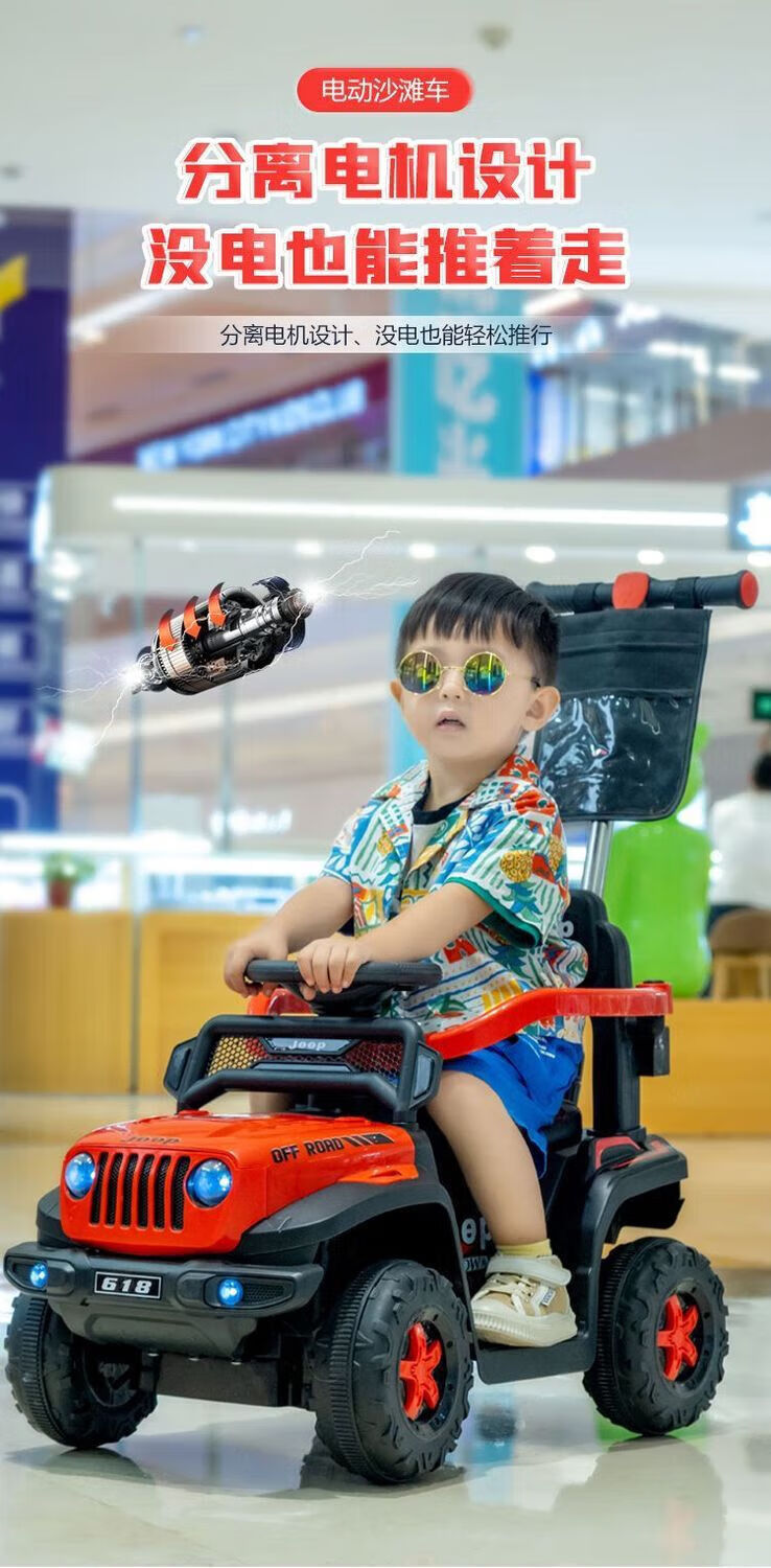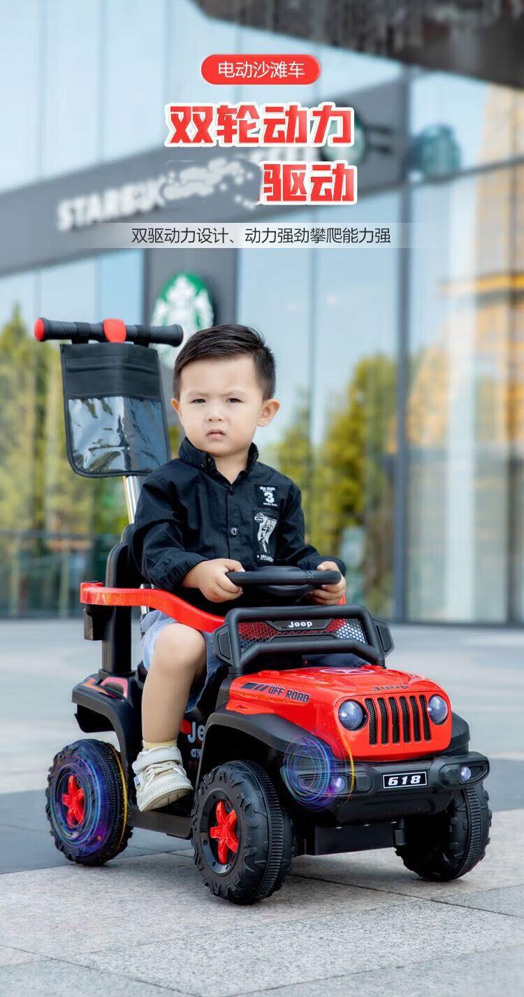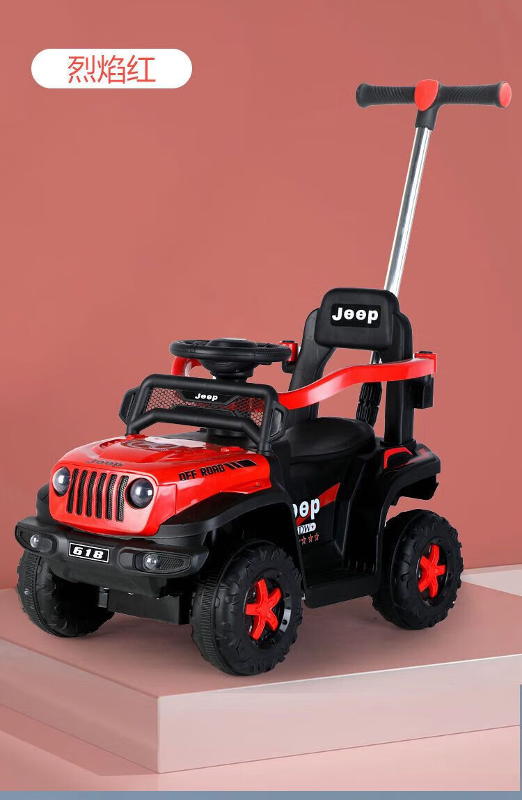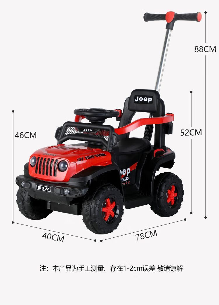 Chibeixing Children's Electric Car Stroller Four-Wheel Remote Control Off-Road Vehicle Male and Female Baby Birthday Gift Toy Car Can Seat Dual-Drive Remote Control - Flame Red (Push Handle)