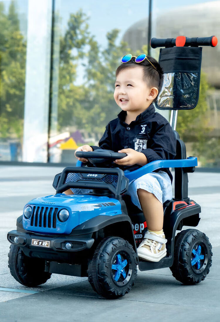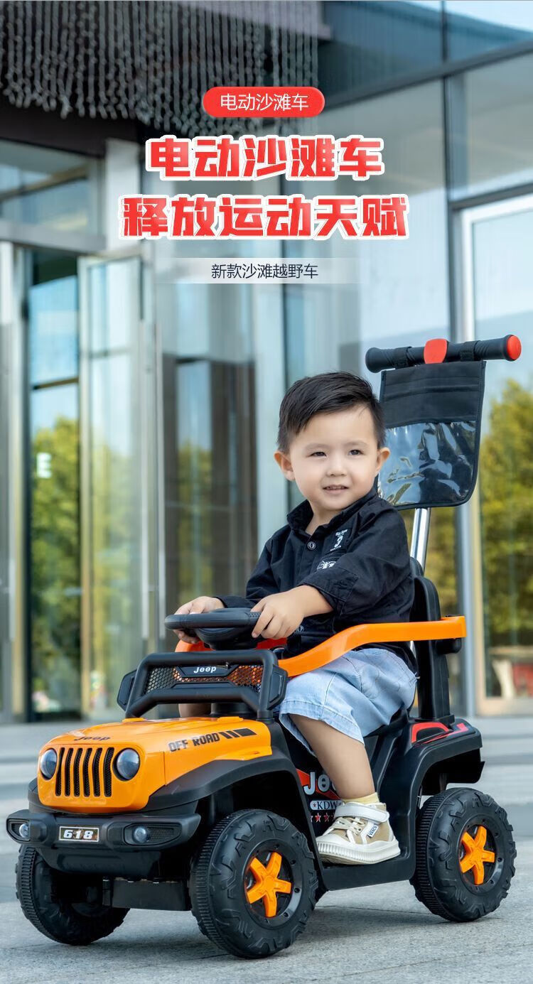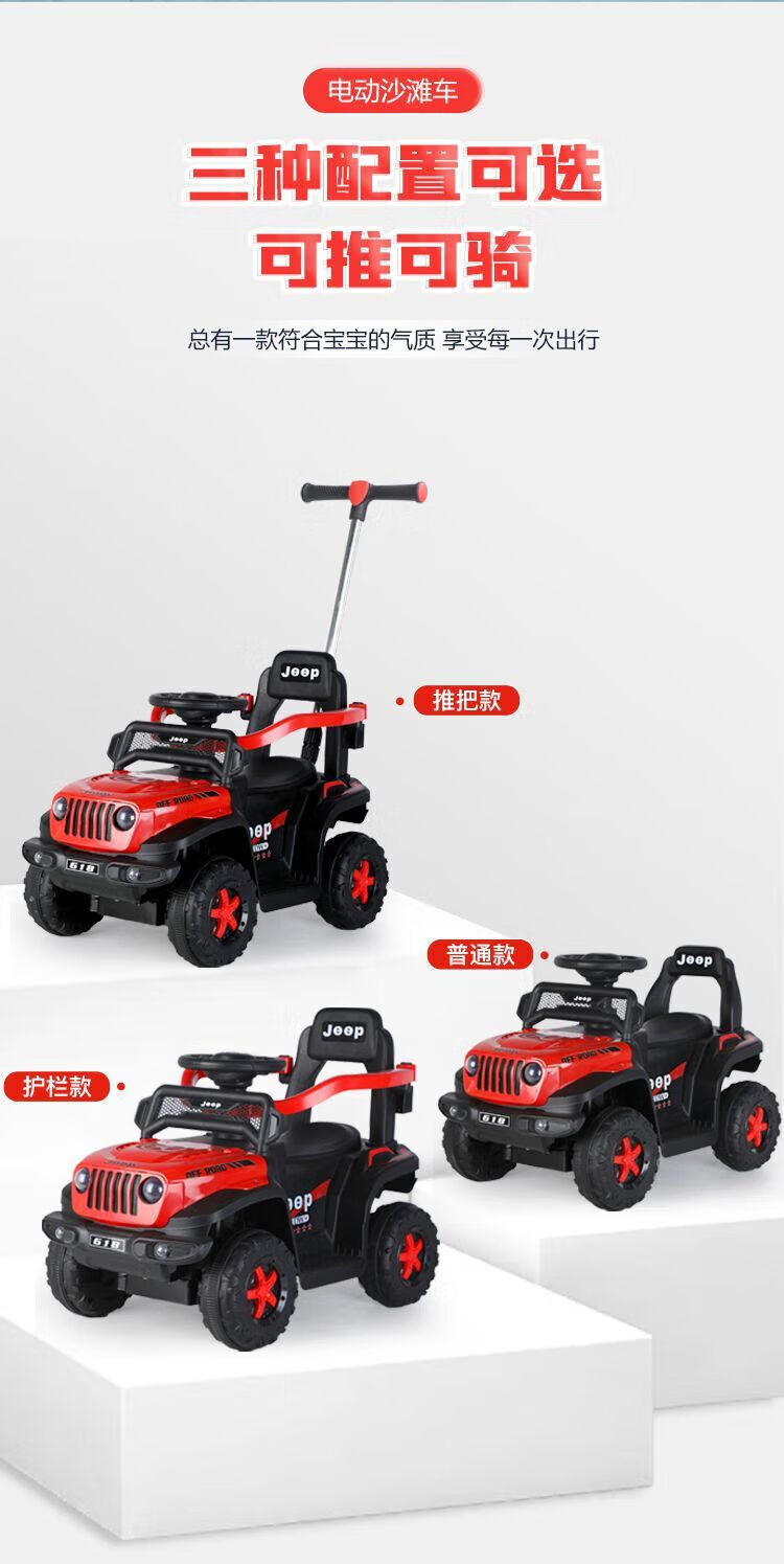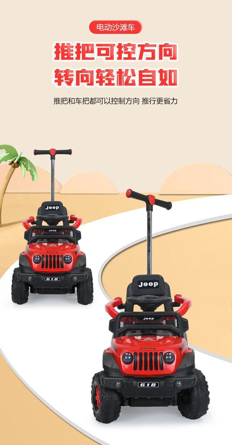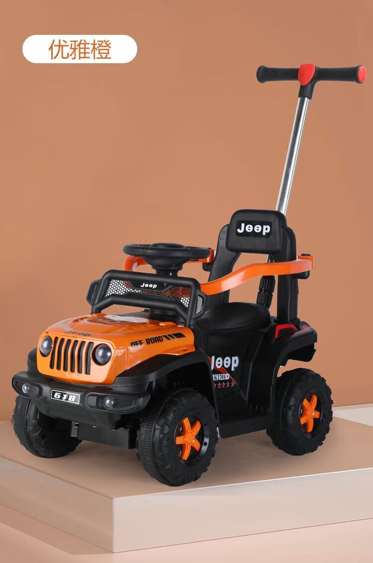 Chibeixing Children's Electric Car Stroller Four-Wheel Remote Control Off-Road Vehicle Male and Female Baby Birthday Gift Toy Car Can Seat Dual-Drive Remote Control - Flame Red (Push Handle)
