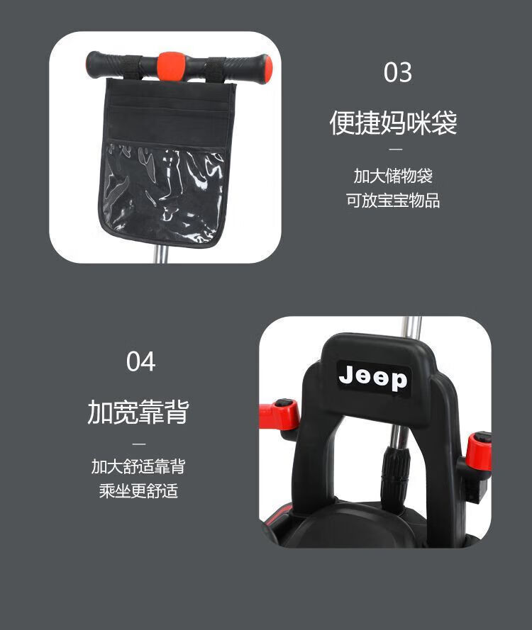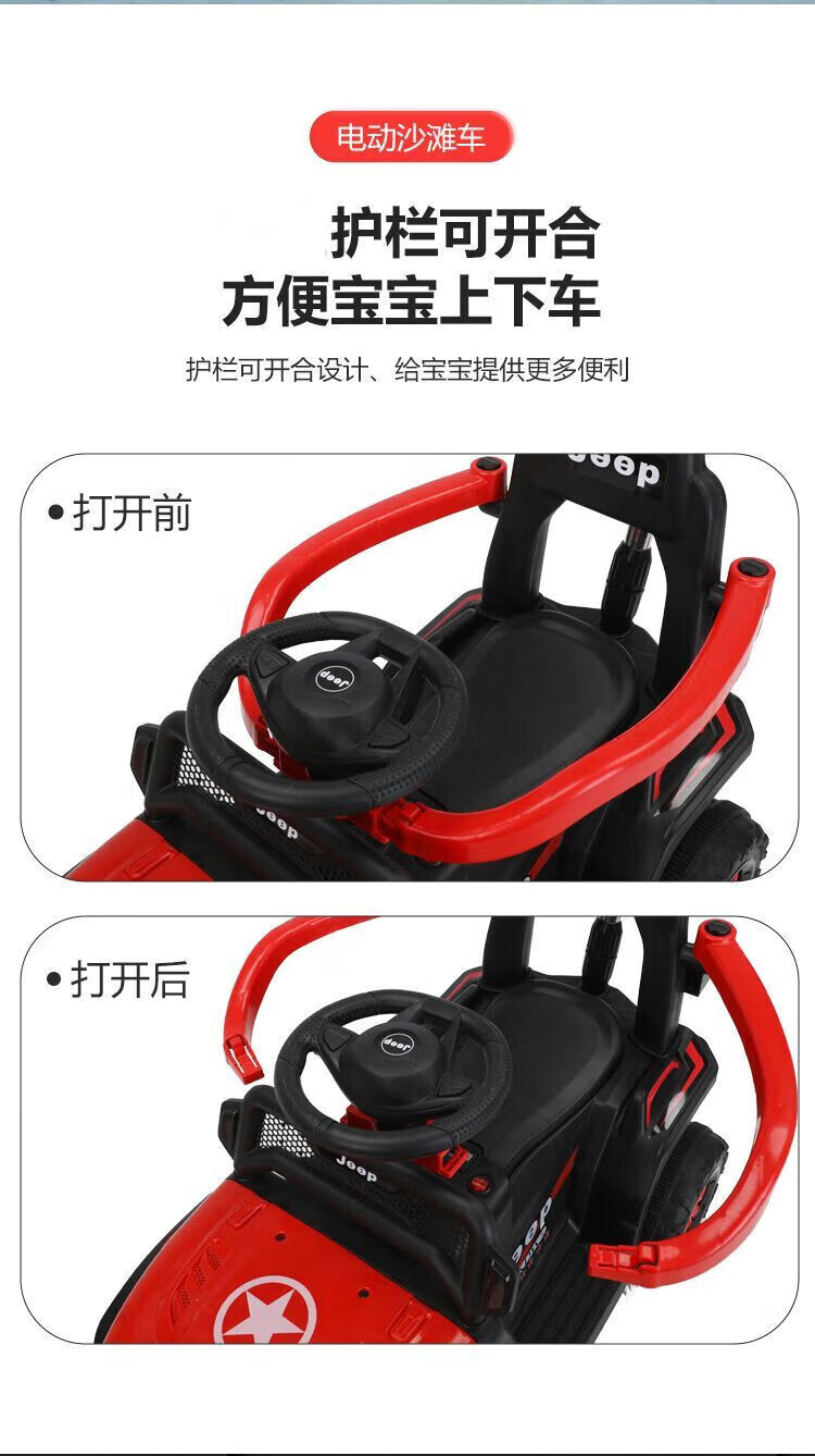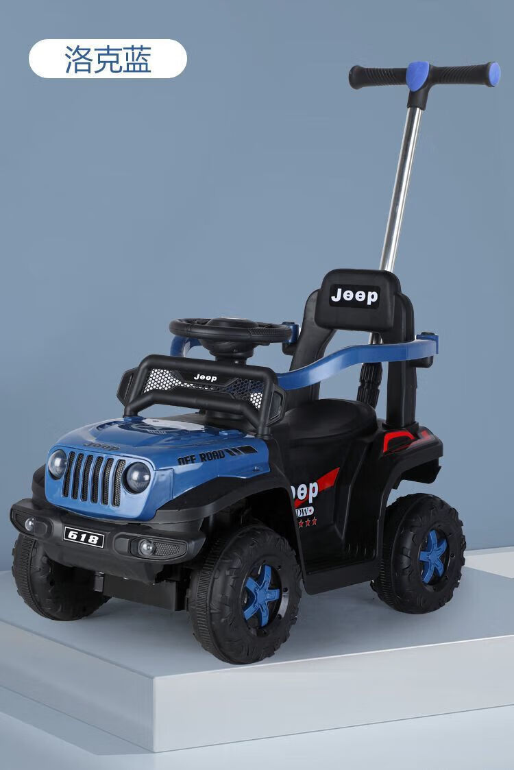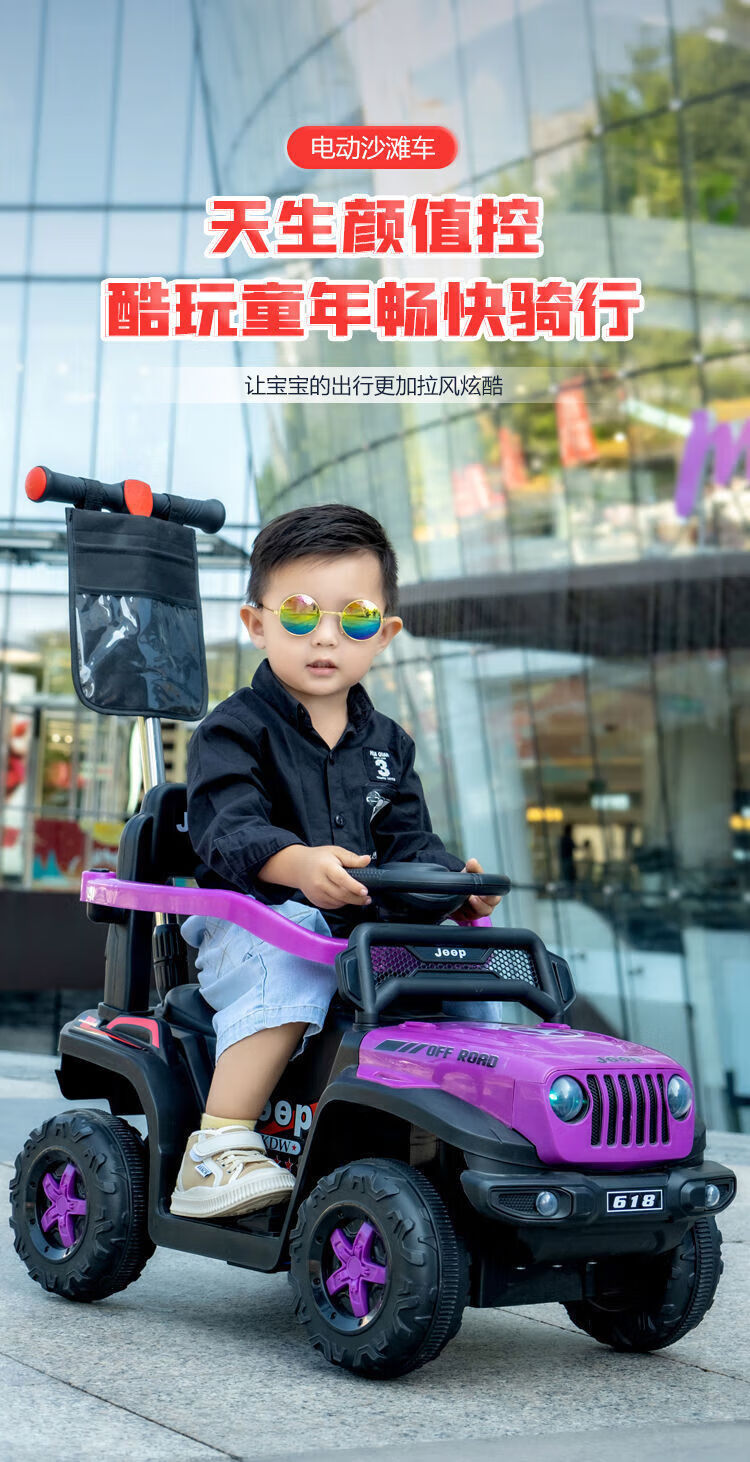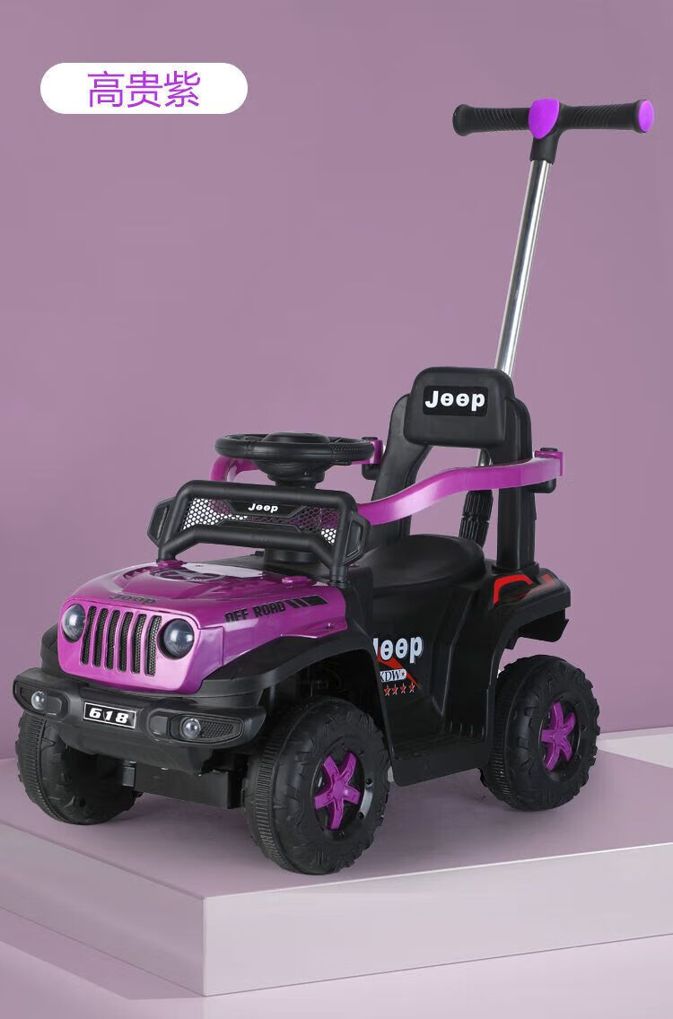 Chibeixing Children's Electric Car Stroller Four-Wheel Remote Control Off-Road Vehicle Male and Female Baby Birthday Gift Toy Car Can Seat Dual-Drive Remote Control - Flame Red (Push Handle)