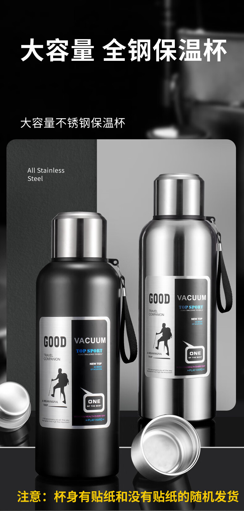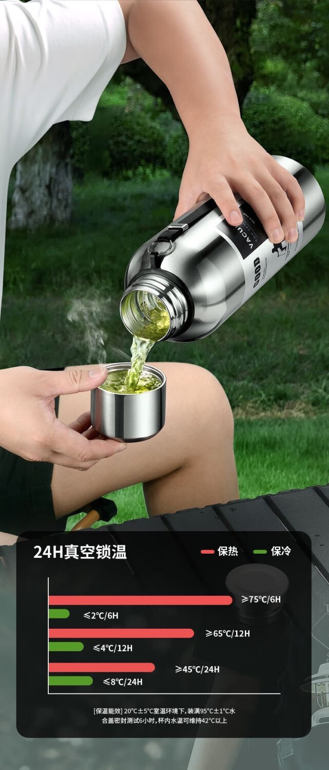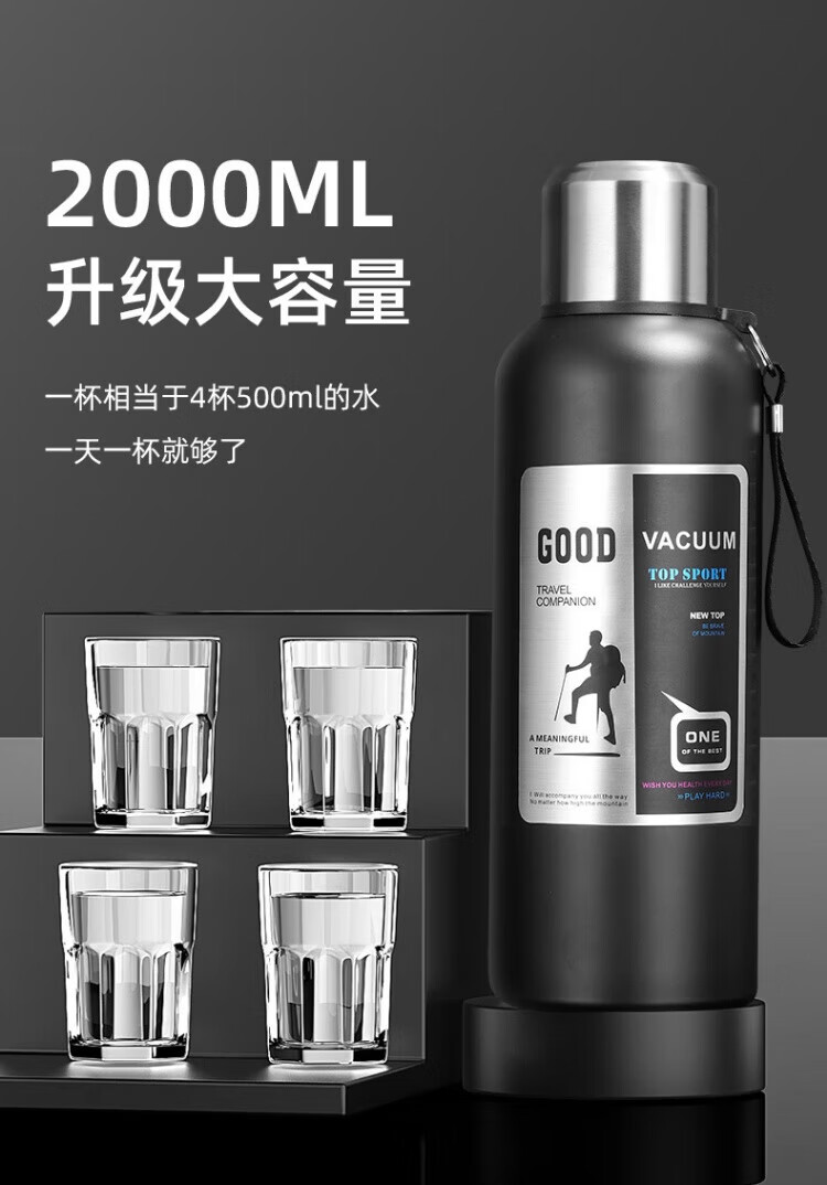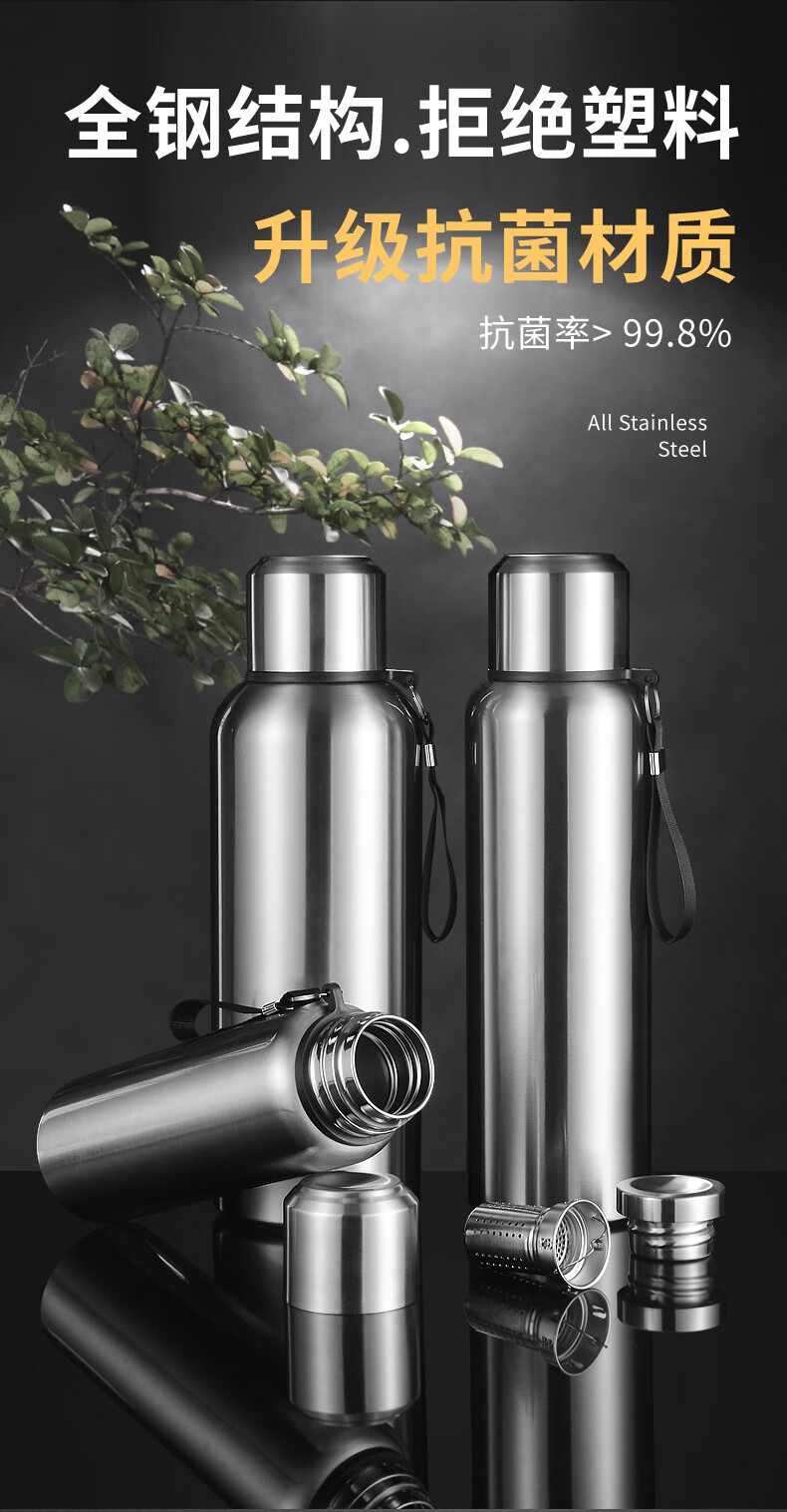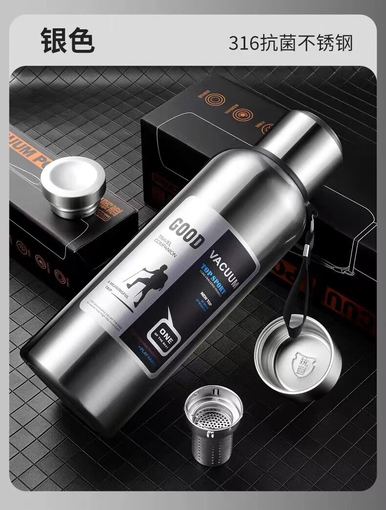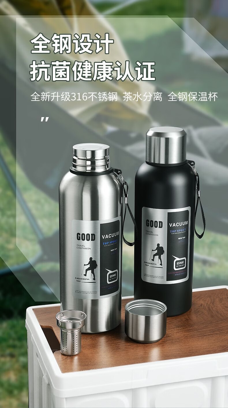 Sohe outdoor thermos cup 316 stainless steel thermos pot large capacity portable vacuum all-steel pot extra large all-steel thermos pot silver cup lid + inner plug + leakage net 2000.0ml