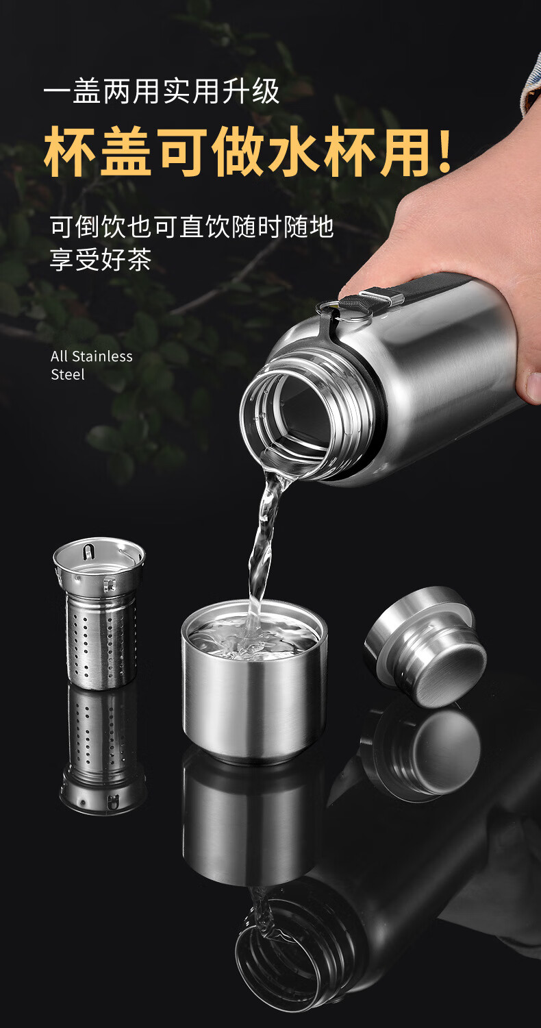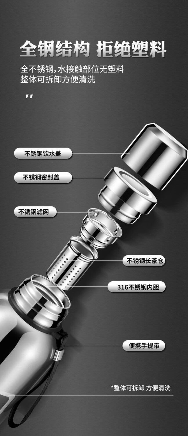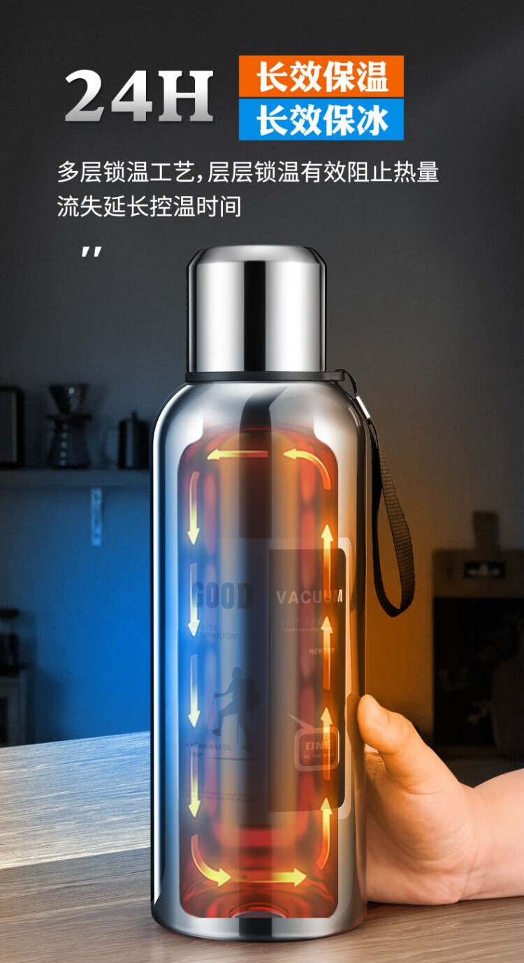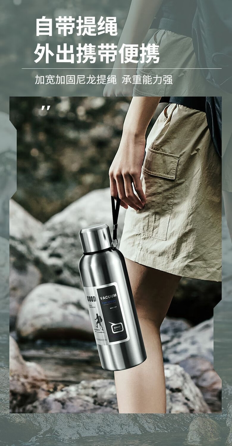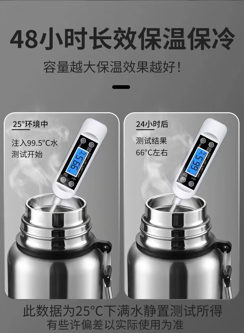 Sohe outdoor thermos cup 316 stainless steel thermos pot large capacity portable vacuum all-steel pot extra large all-steel thermos pot silver cup lid + inner plug + leakage net 2000.0ml