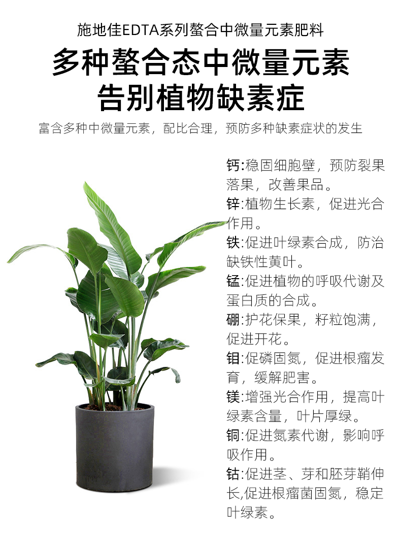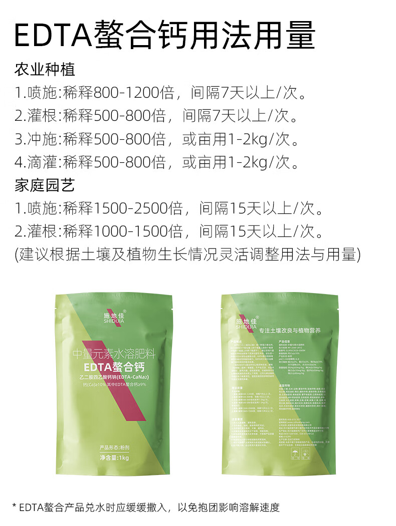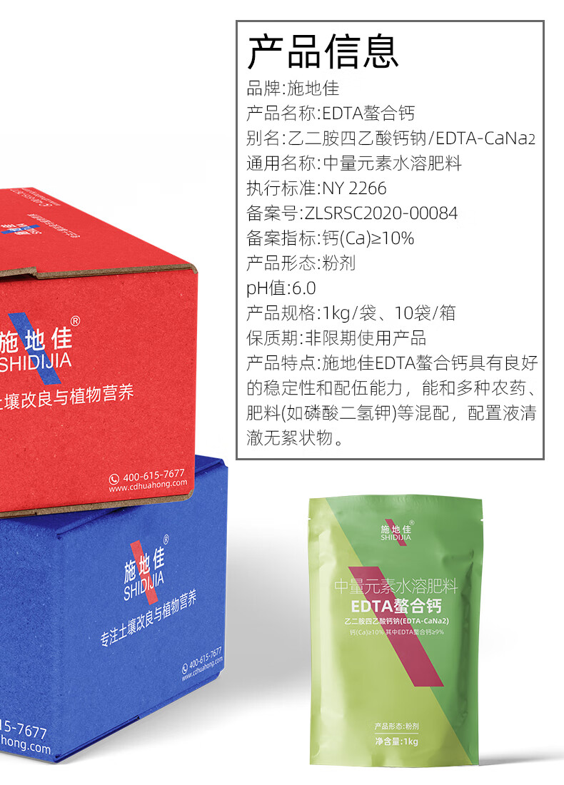 Shidijia organic EDTA chelated calcium fertilizer medium element water-soluble fertilizer watermelon grape strawberry apple tree vegetable foliar fertilizer EDTA chelated calcium 1kg*10 bags 1 box