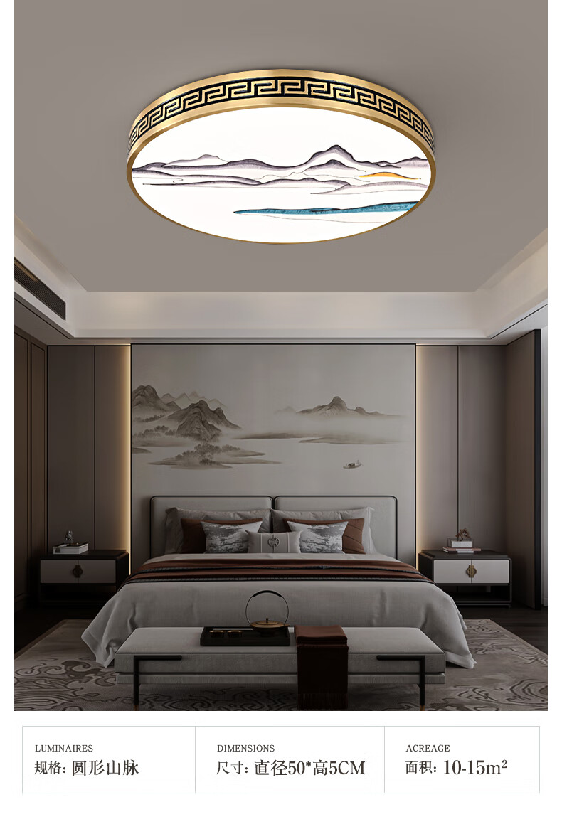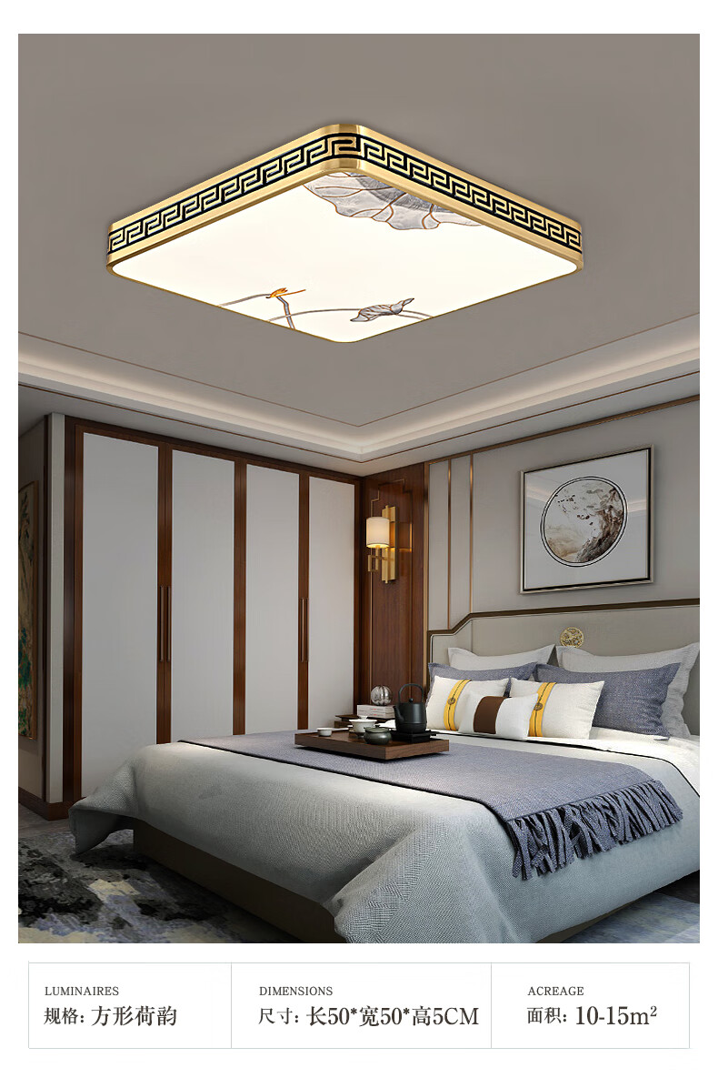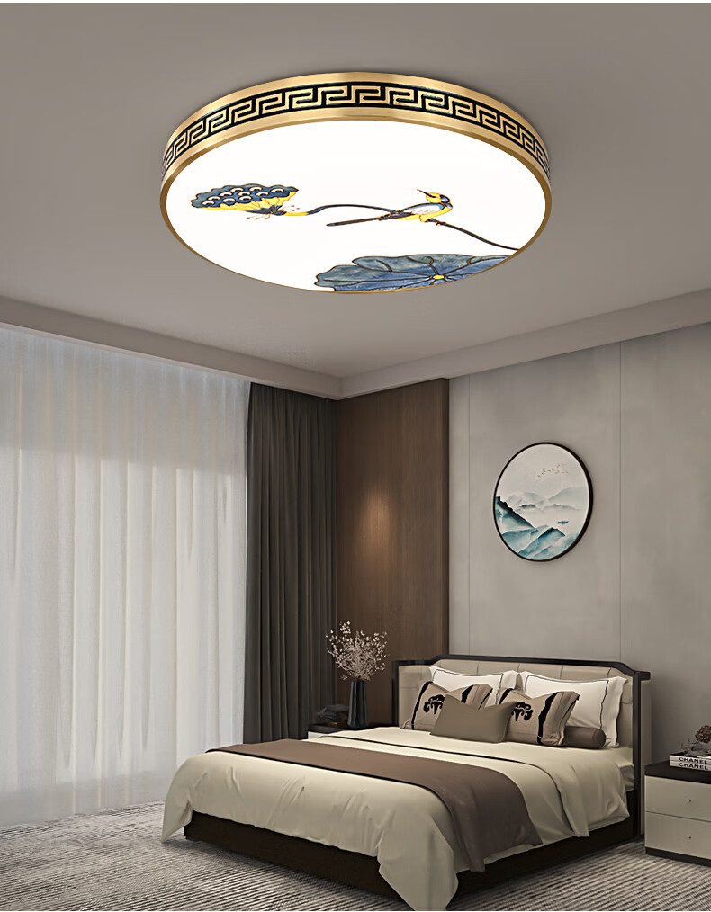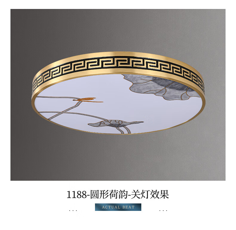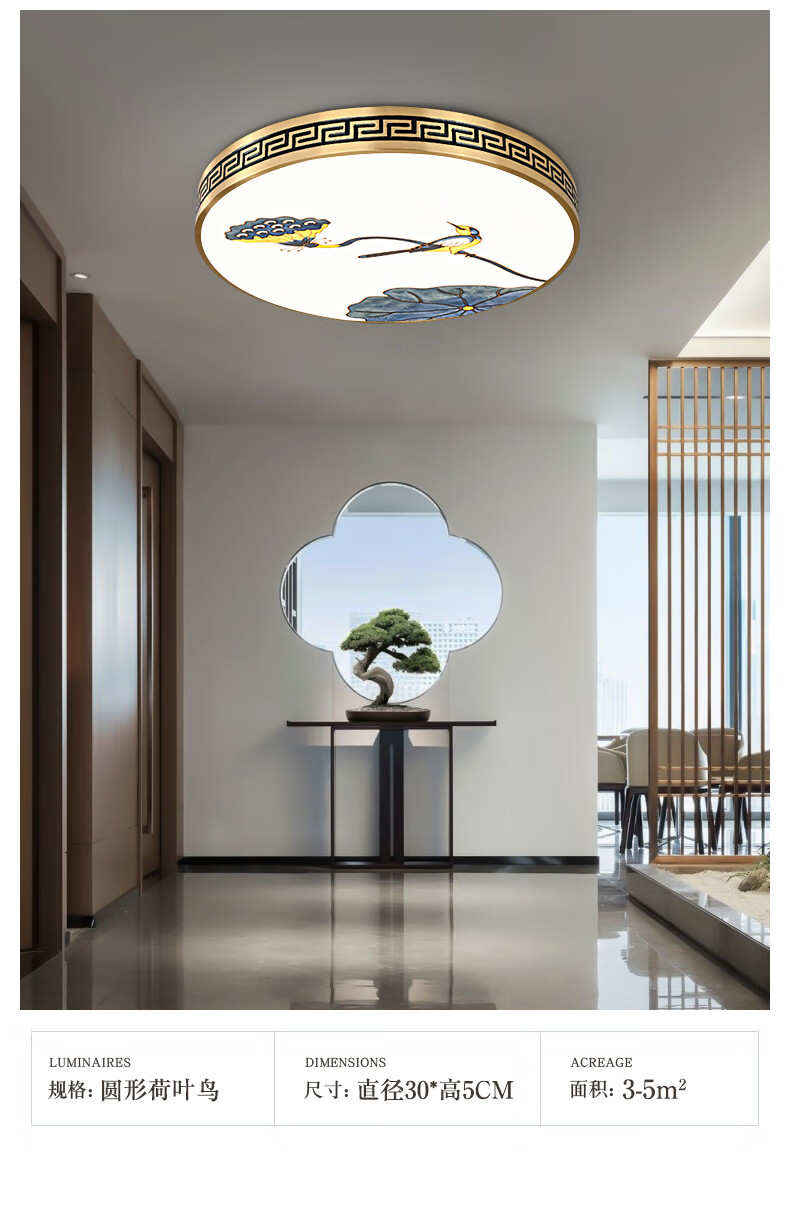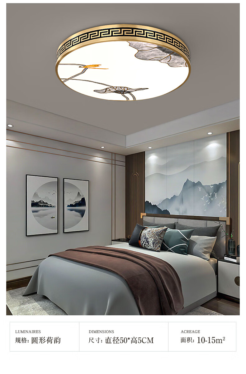 Qianzhang Lamp New Chinese Style Full Copper LED Ceiling Lamp Bedroom Living Room Headlight Study Room Tea Room Zen 2024 New Chinese Style Round 30cm Lotus Rhyme Great Wall 24W