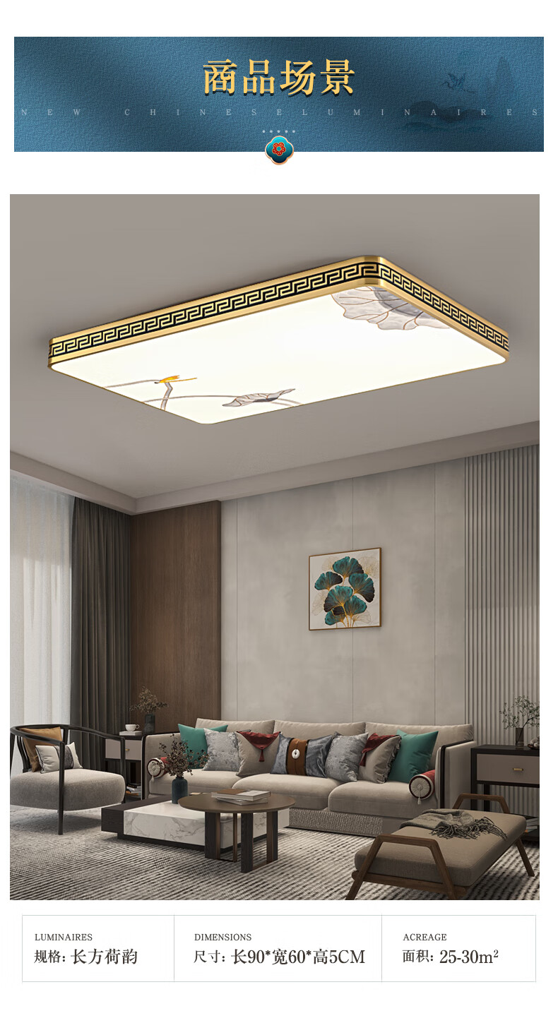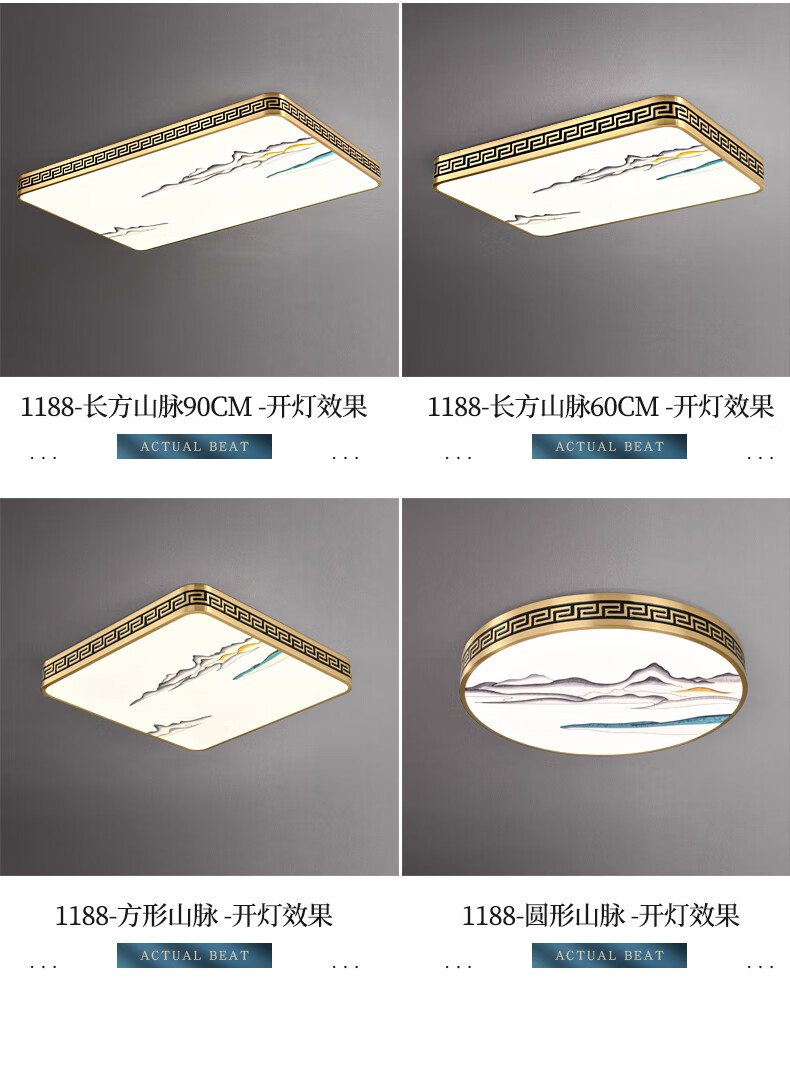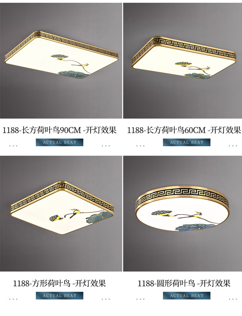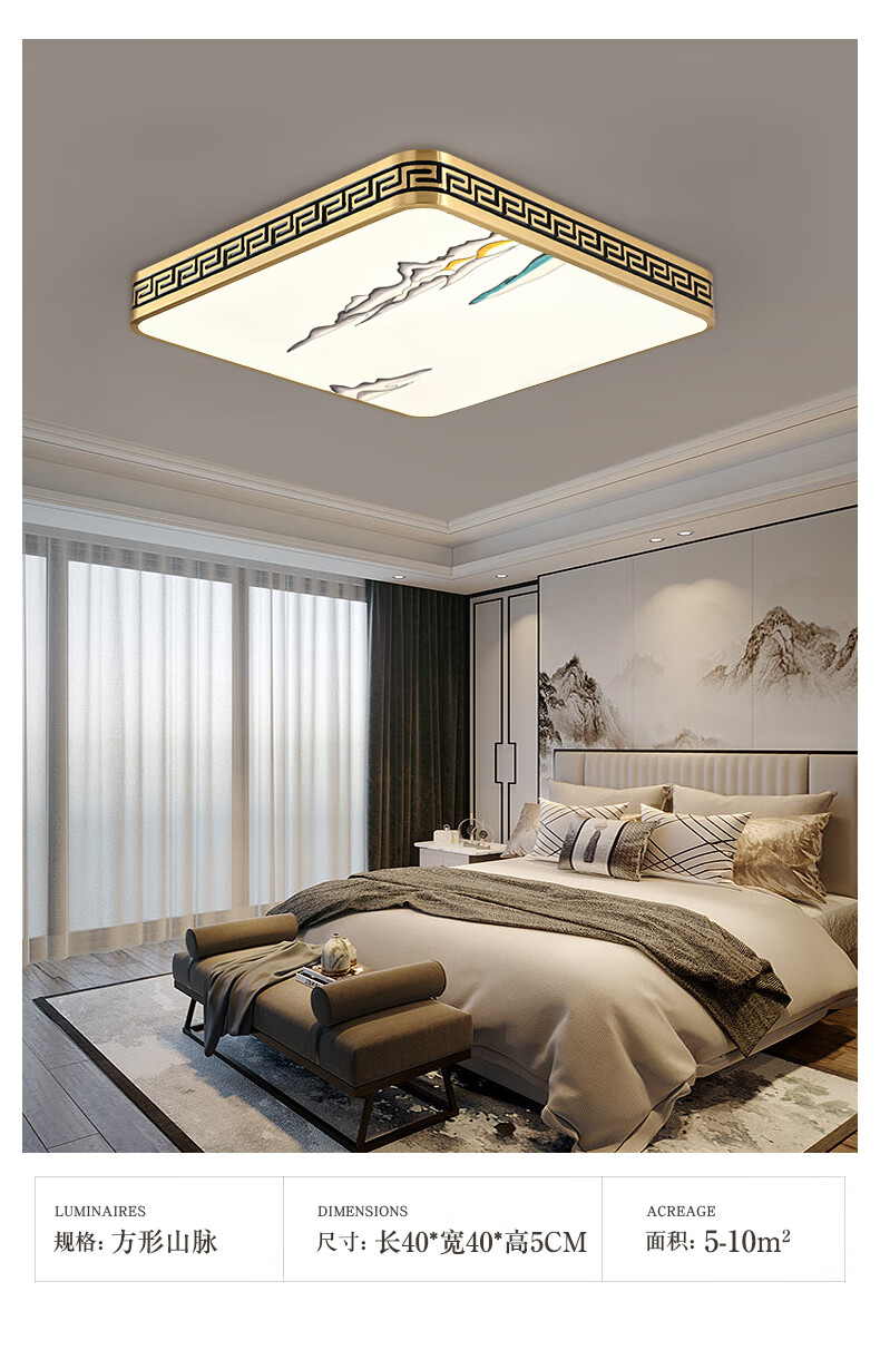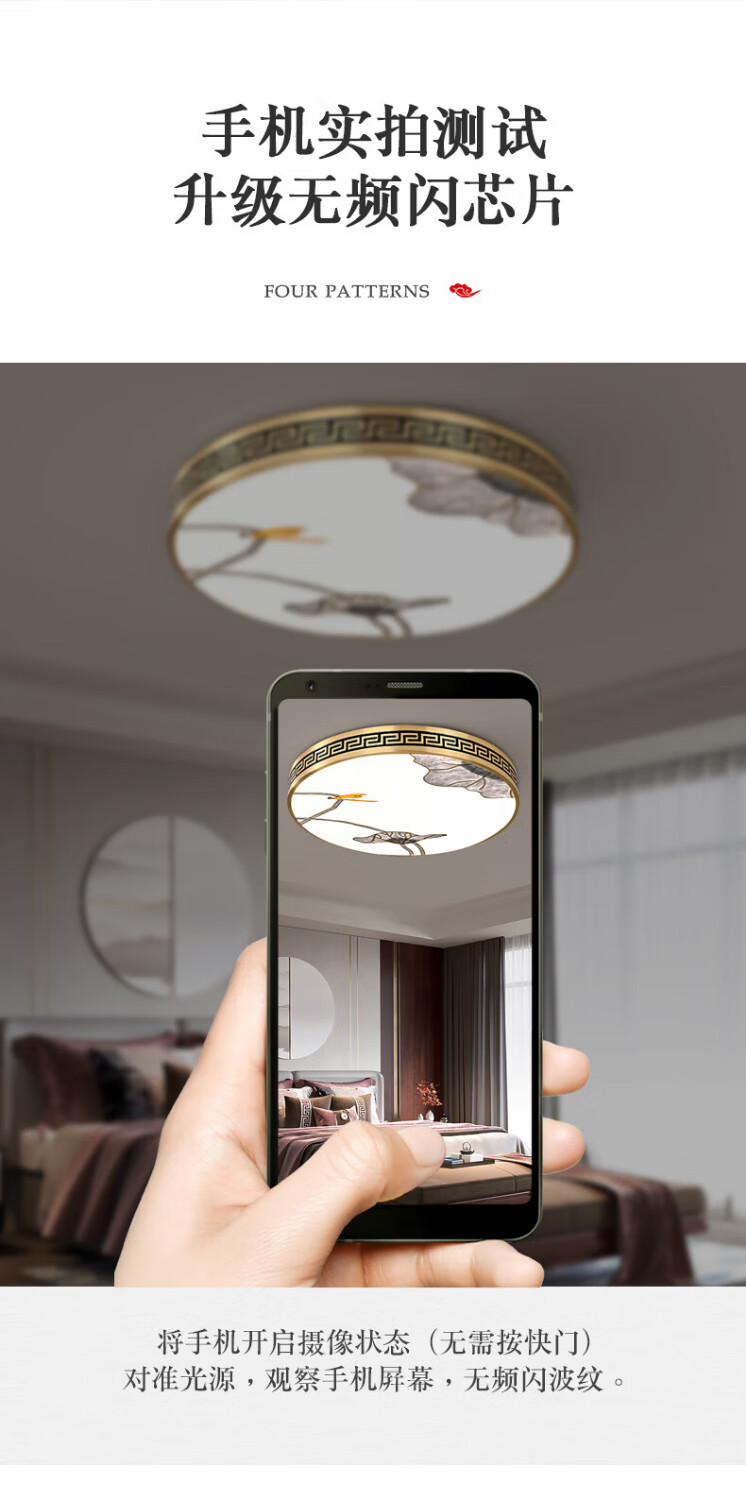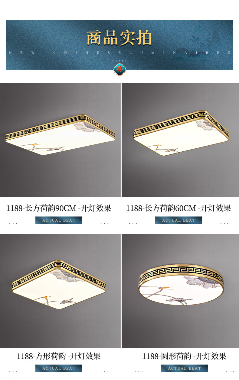 Qianzhang Lamp New Chinese Style Full Copper LED Ceiling Lamp Bedroom Living Room Headlight Study Room Tea Room Zen 2024 New Chinese Style Round 30cm Lotus Rhyme Great Wall 24W