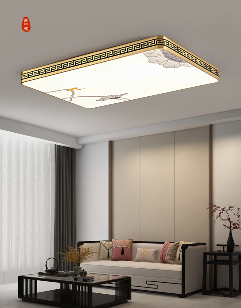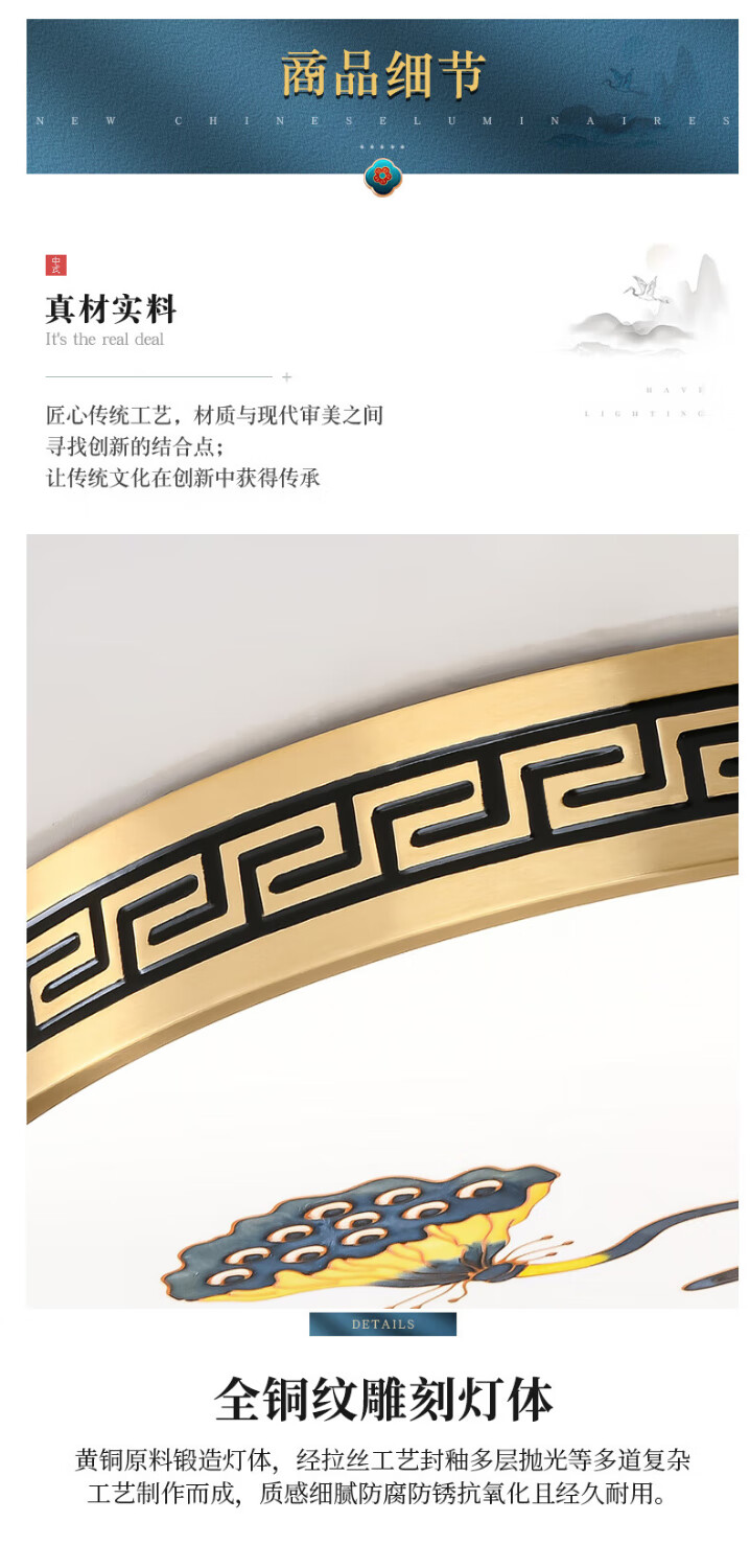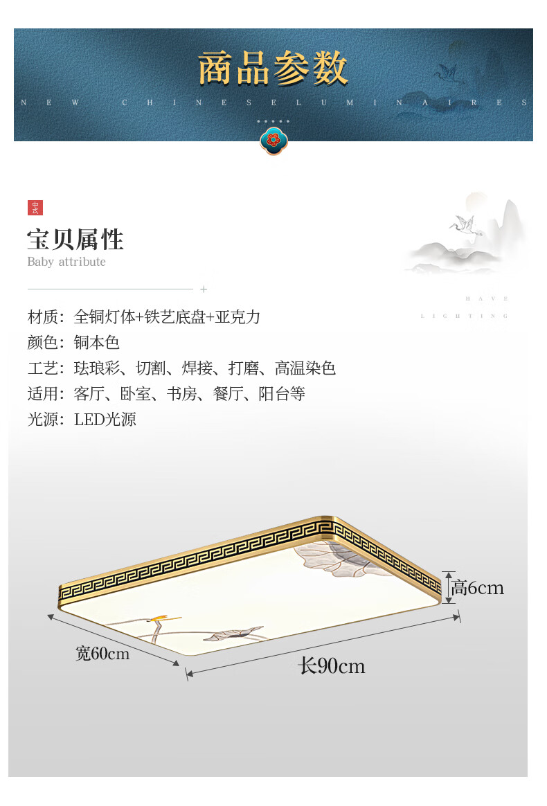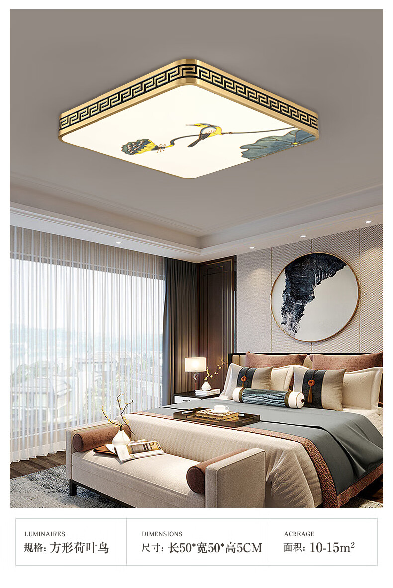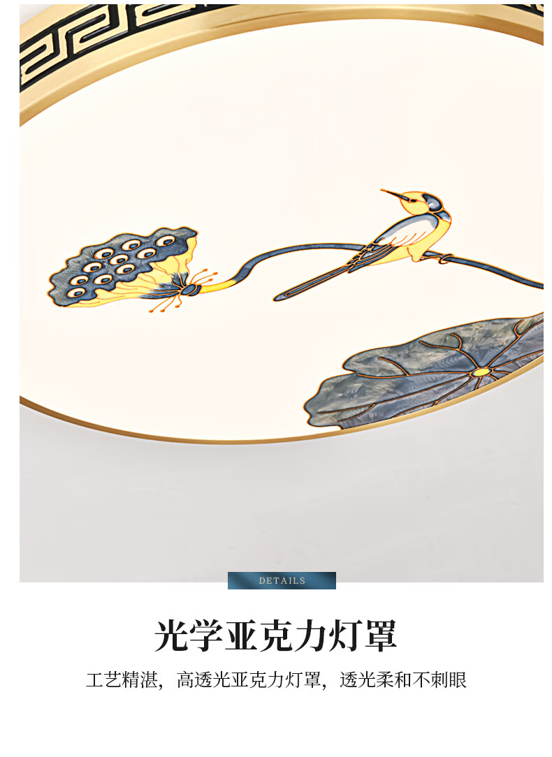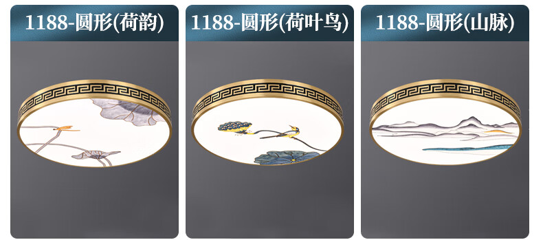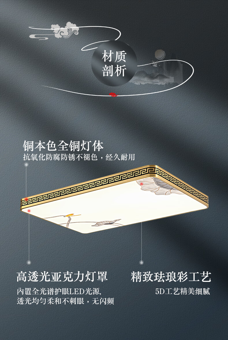 Qianzhang Lamp New Chinese Style Full Copper LED Ceiling Lamp Bedroom Living Room Headlight Study Room Tea Room Zen 2024 New Chinese Style Round 30cm Lotus Rhyme Great Wall 24W