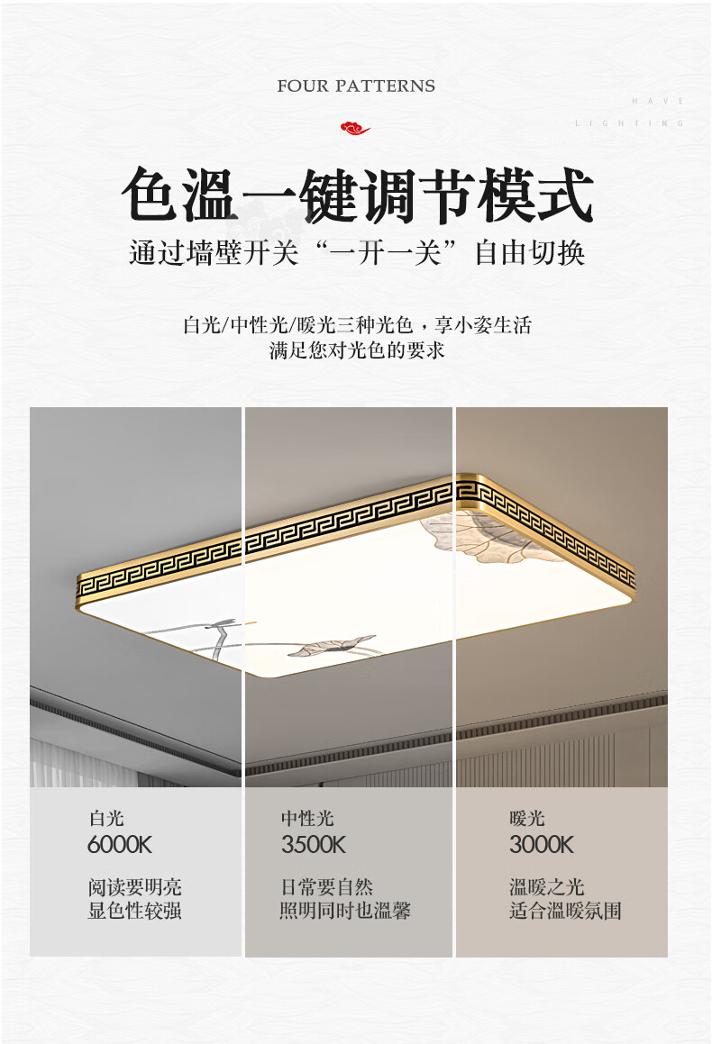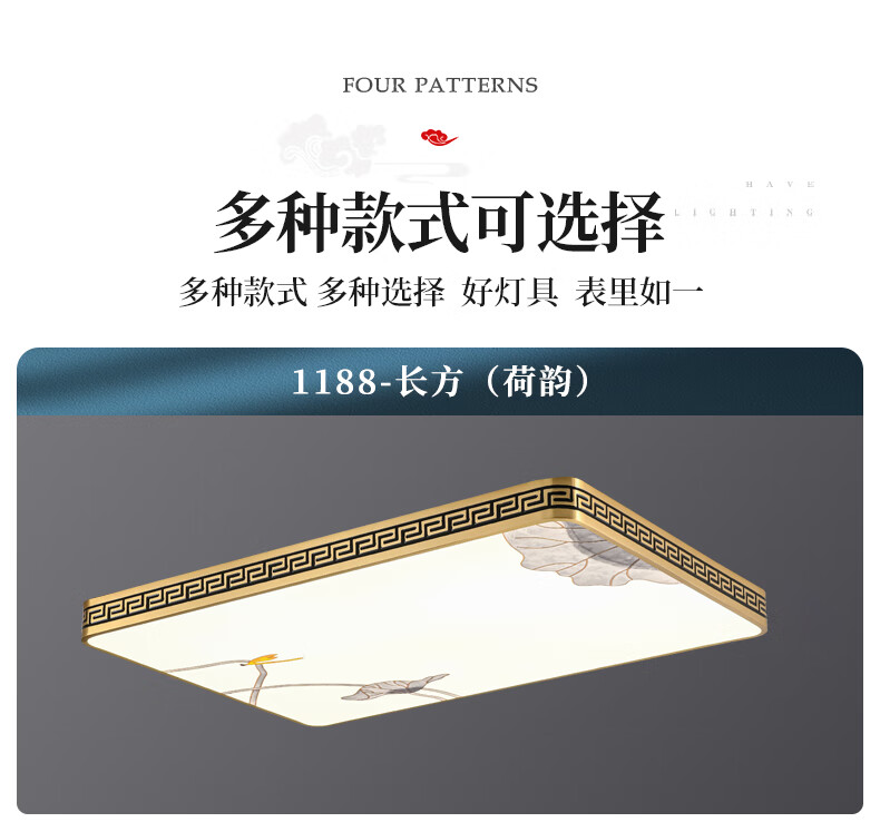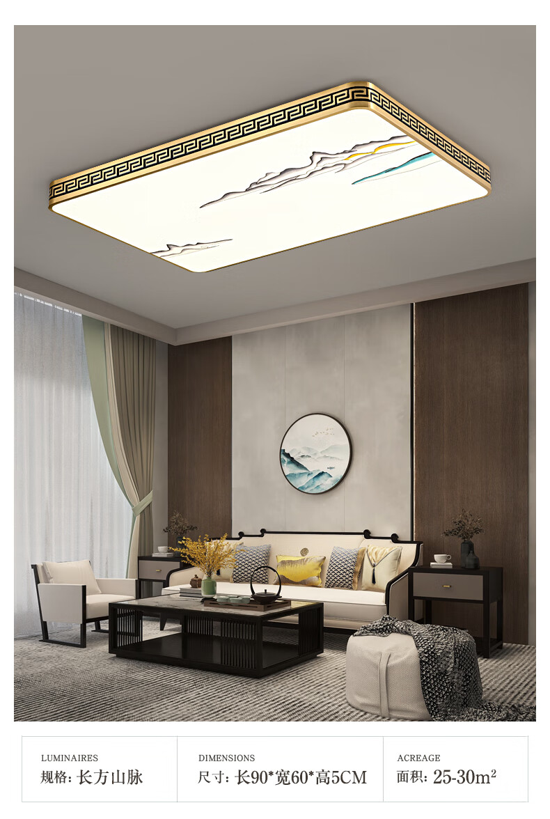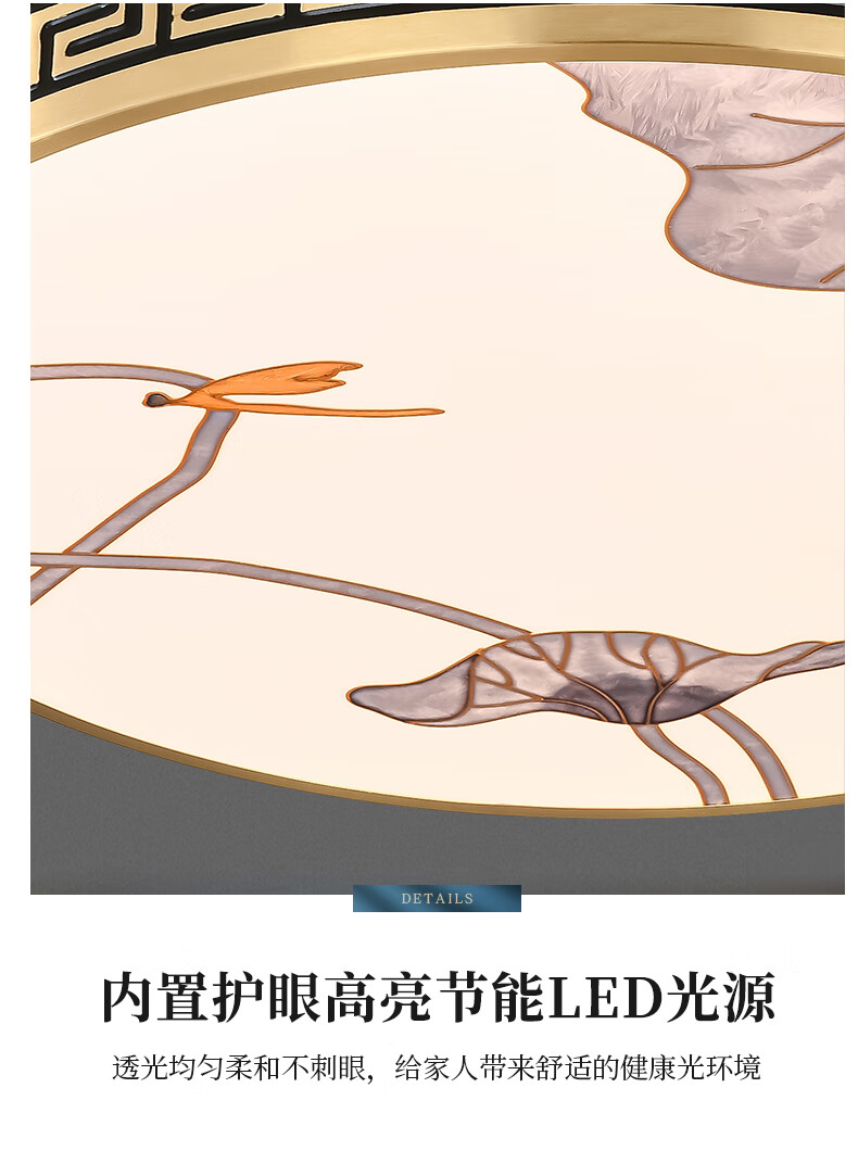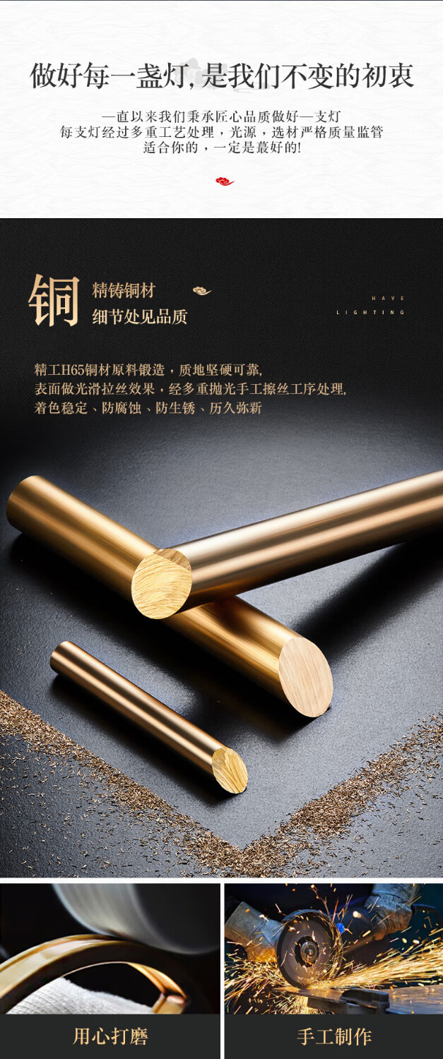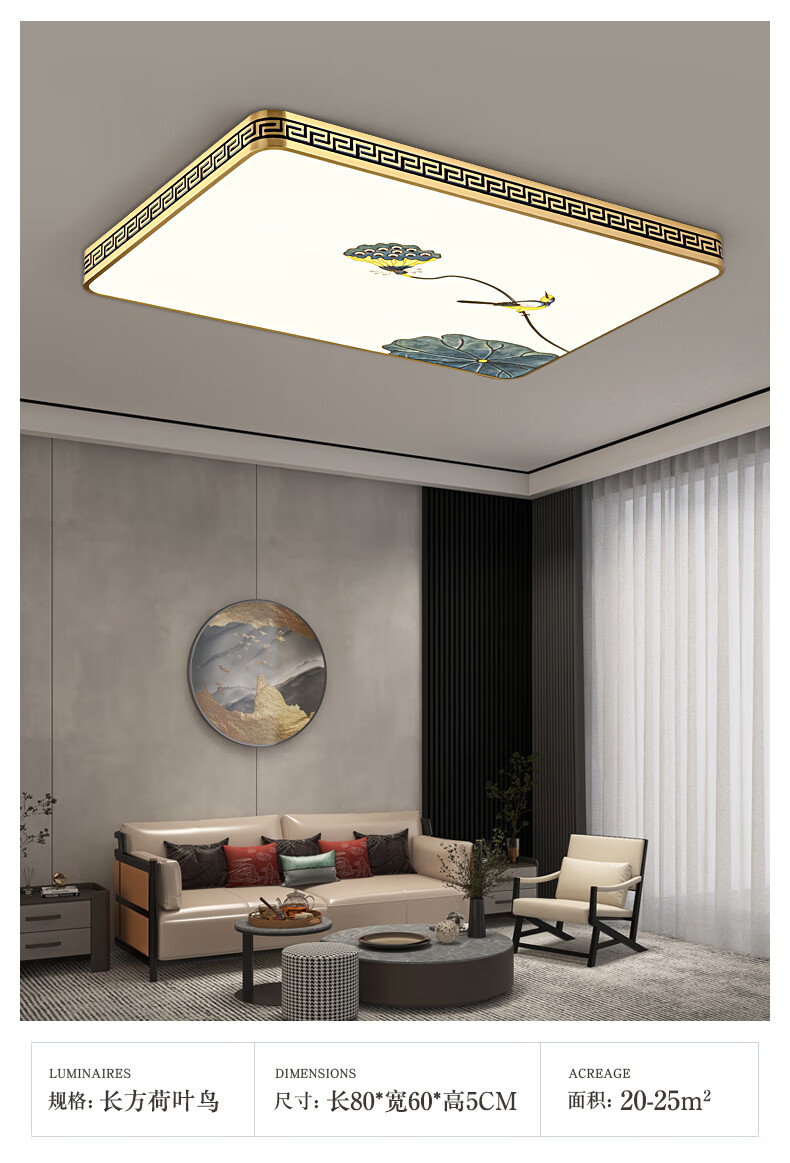 Qianzhang Lamp New Chinese Style Full Copper LED Ceiling Lamp Bedroom Living Room Headlight Study Room Tea Room Zen 2024 New Chinese Style Round 30cm Lotus Rhyme Great Wall 24W