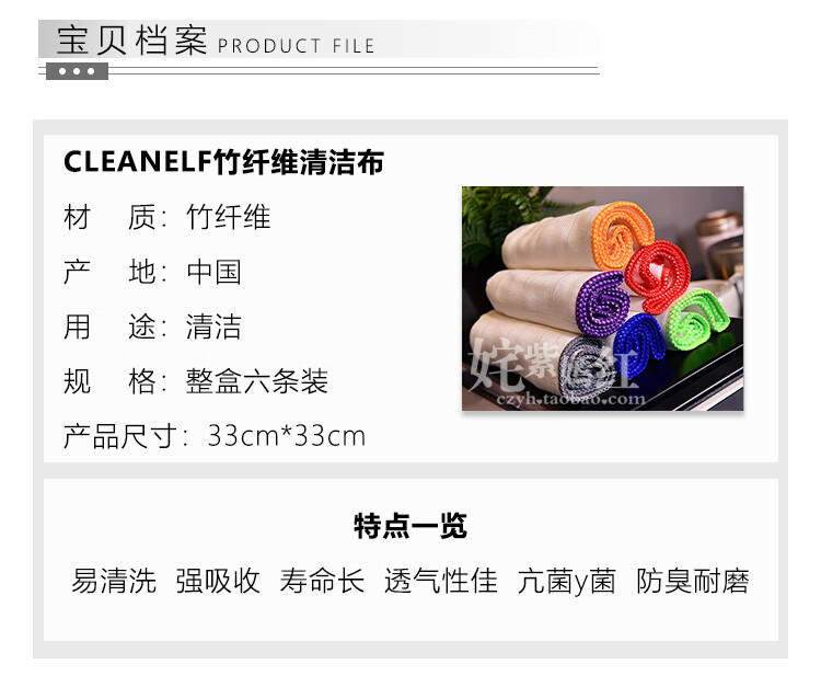 Xixiangyuan non-stick oil, decontamination and easy to clean American CLEANELF bamboo fiber dishcloth household cleaning rags 6 pack