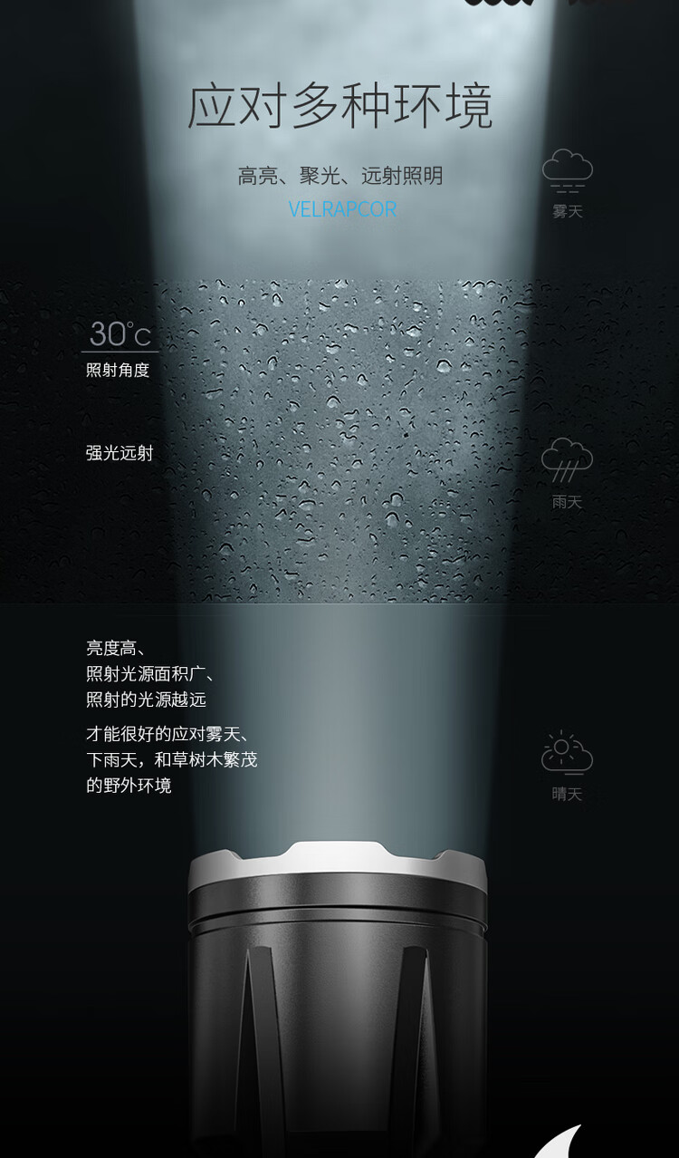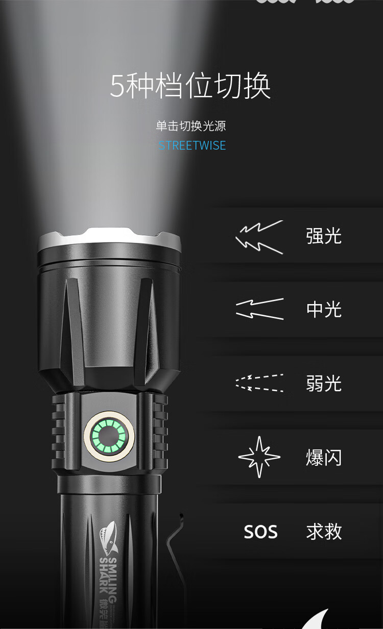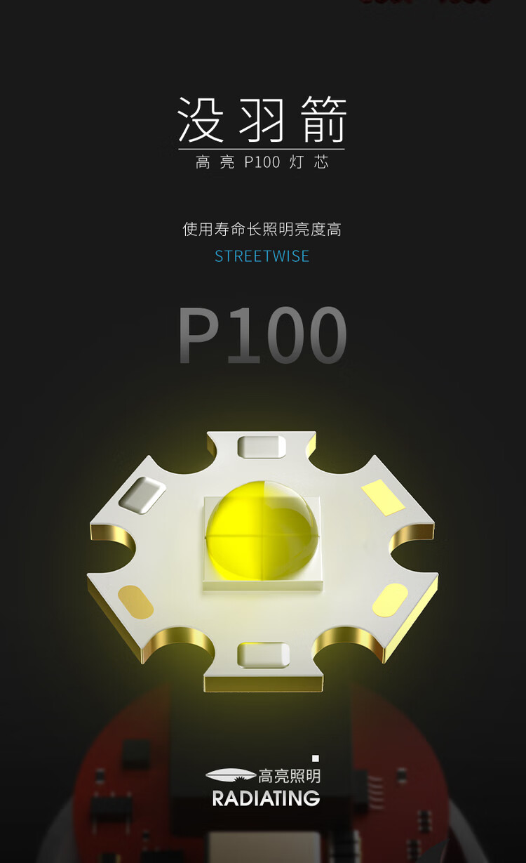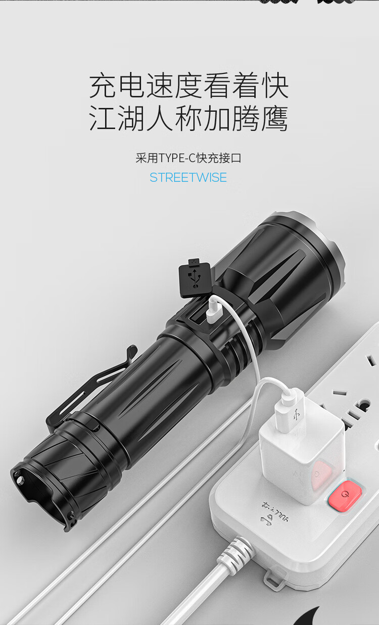 FENGLANQ FENGLANQ flashlight with strong light, 100,000 lumens, three thousand meters into the sky, rechargeable LED super bright mountaineering patrol light, P100 round wick, battery life 510H