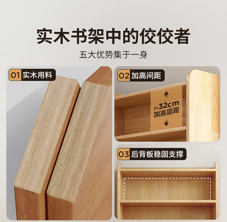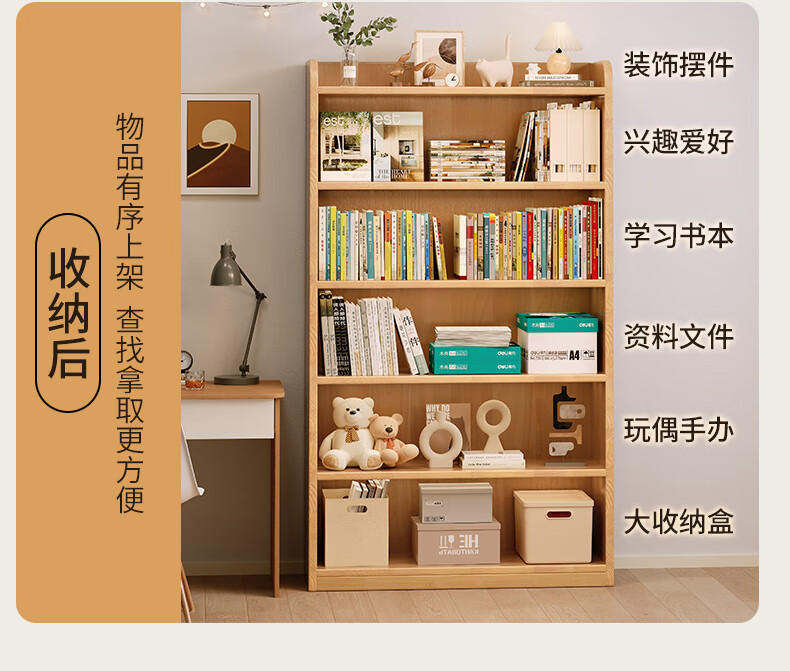 Zhongtao all solid wood bookshelf pure solid wood bookcase storage rack floor-standing integrated wall-mounted simple children's high school student bedroom multi-layer special price impulse all solid wood 80*24*180CM all solid wood