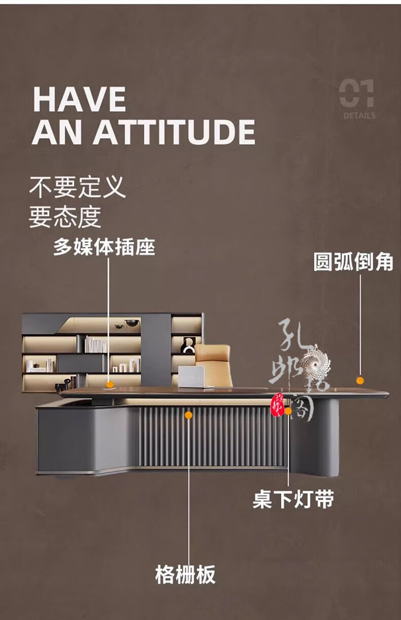 Kong Qiu Mingge desk boss table simple modern president table high-end light luxury desk chairman office desk and chair combination 2.4 meters boss table