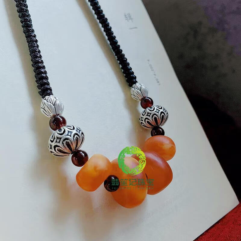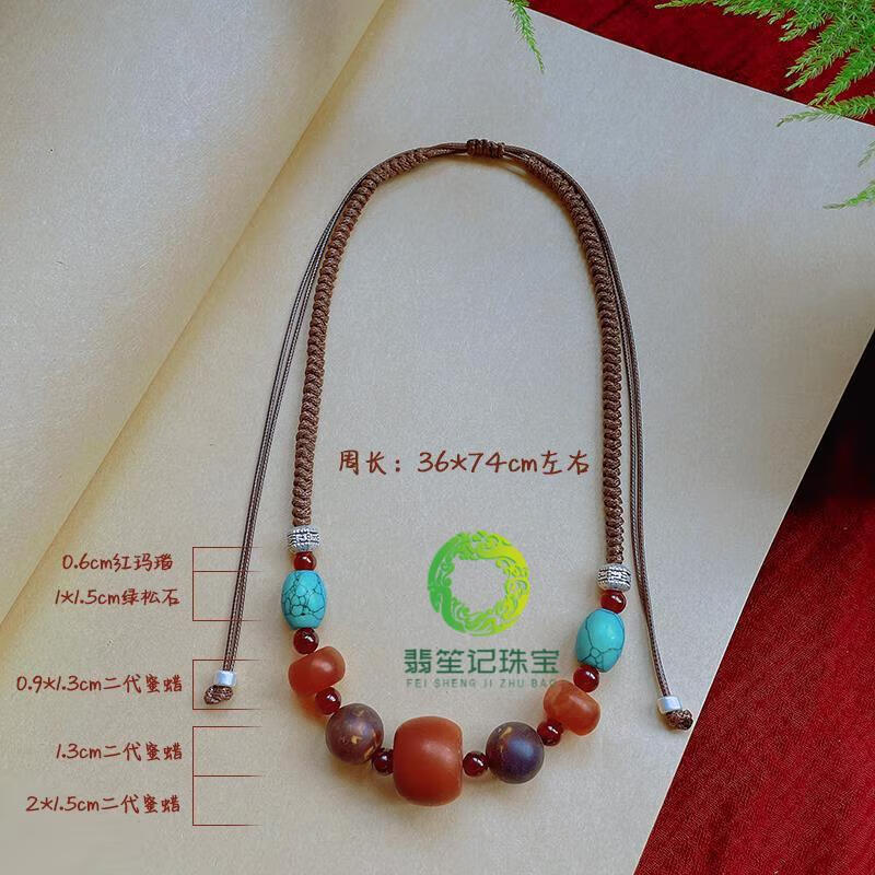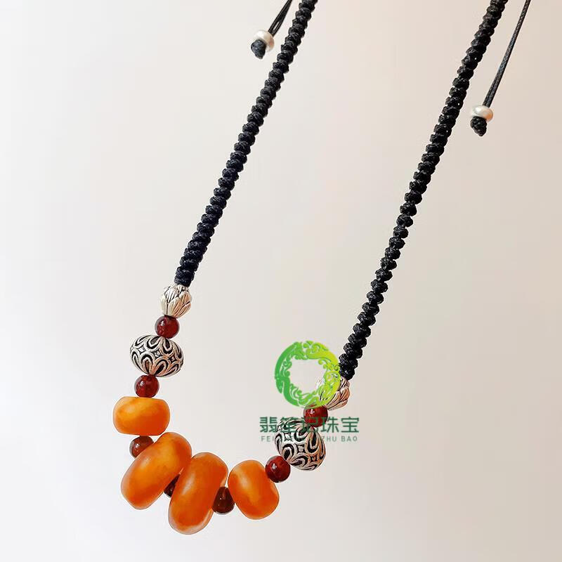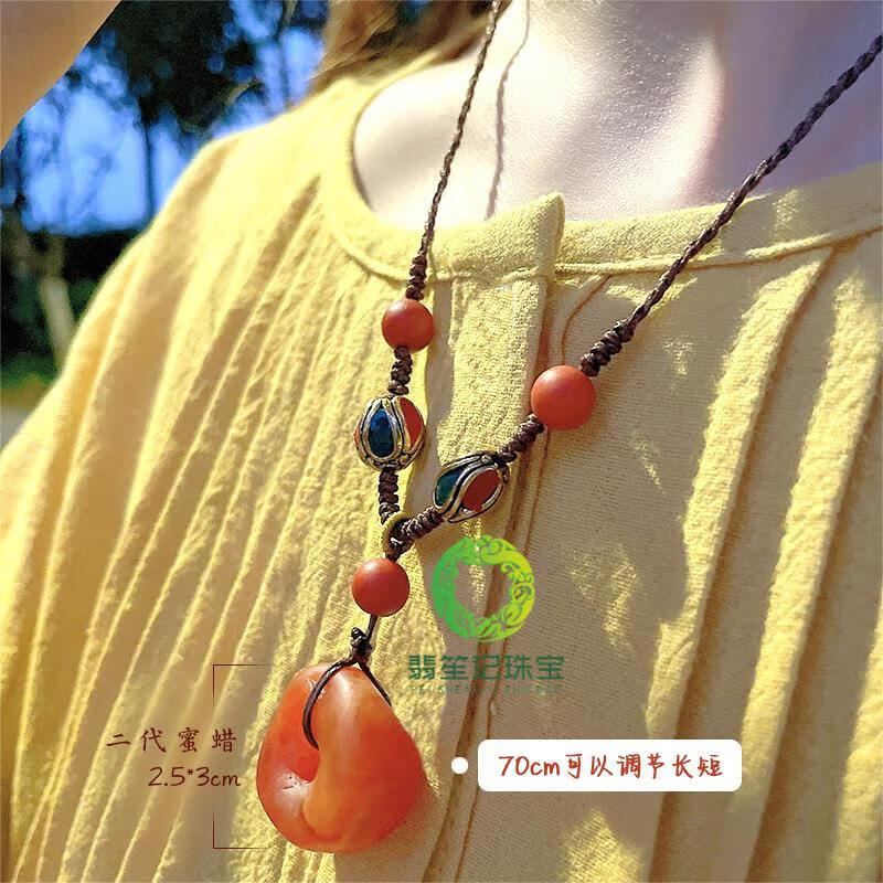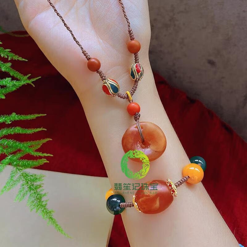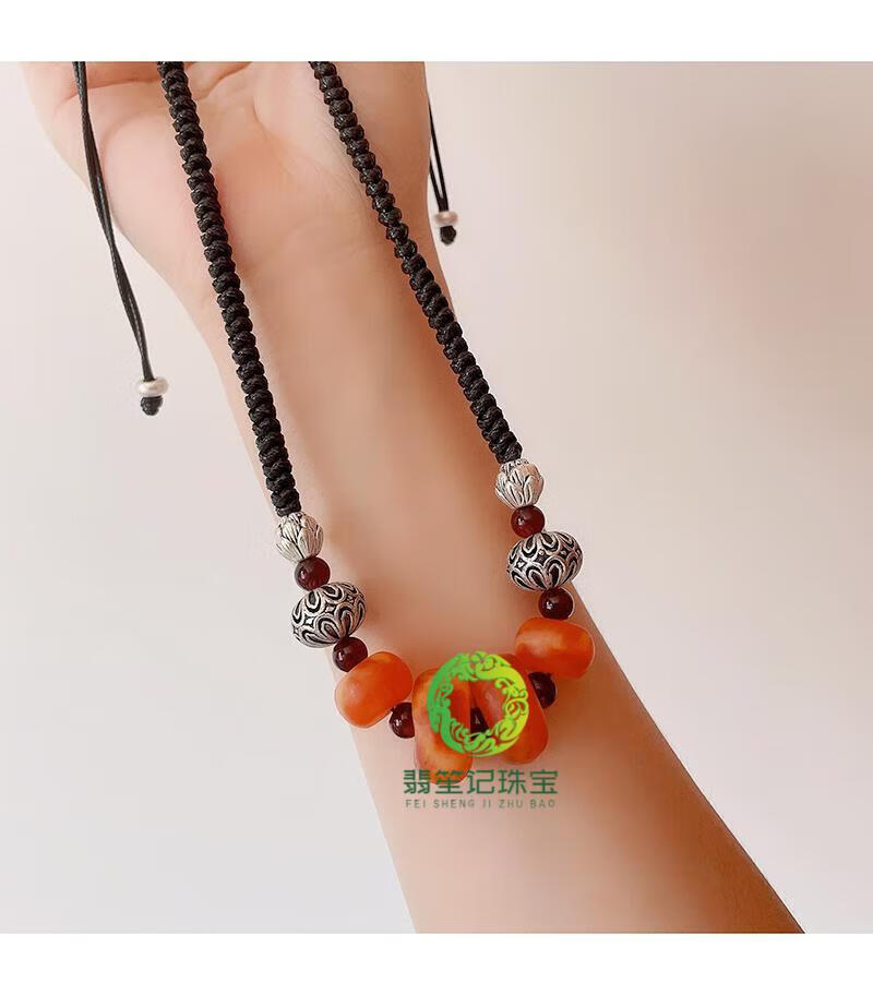Fat Donglai's same style beeswax braided rope ancient second generation sweater with ornaments ethnic style peace buckle old lock wax women's bone match Mulian Peng peace buckle bracelet
