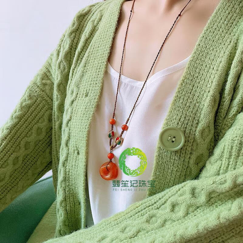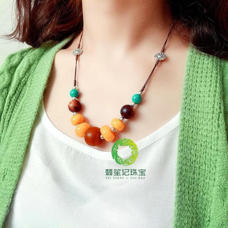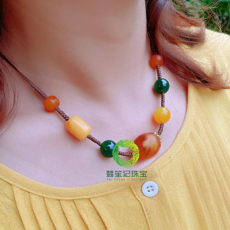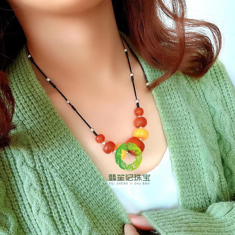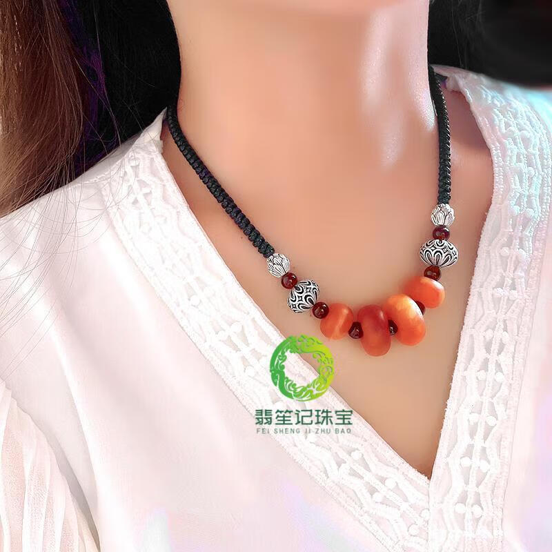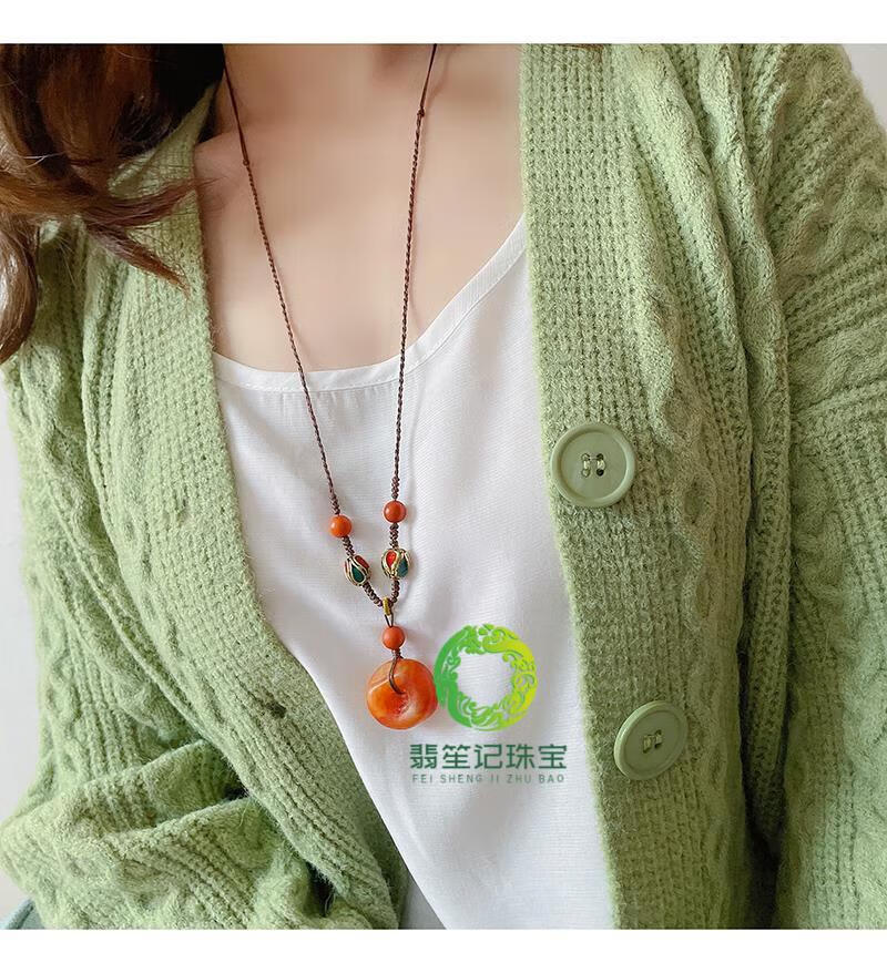 Fat Donglai's same style beeswax braided rope ancient second generation sweater with ornaments ethnic style peace buckle old lock wax women's bone match Mulian Peng peace buckle bracelet