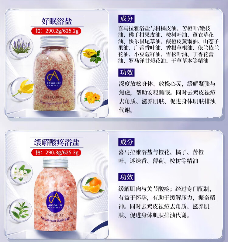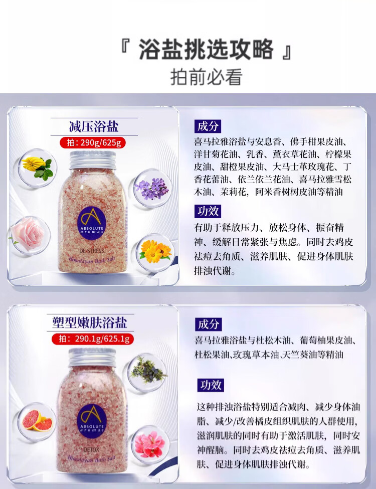 Absolutearomas British Chantilly Rose Bath Salt Bath Bath Salt Cleansing Essential Oil Body Scrub to Exfoliate Chicken Skin 625g Good Sleep Bath Salt