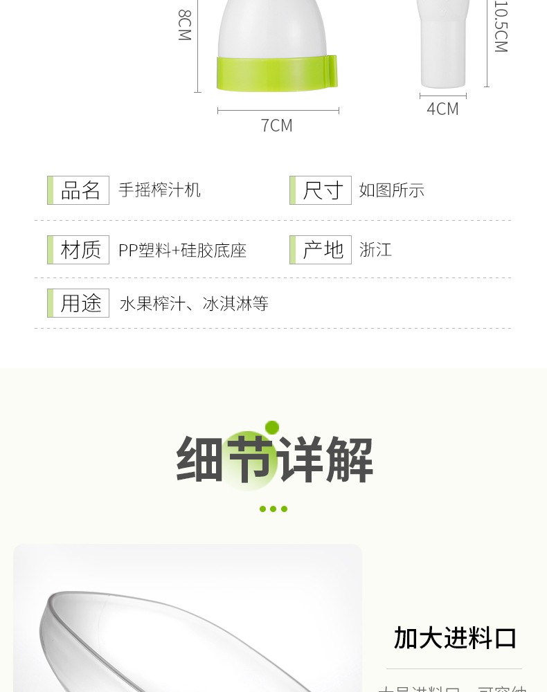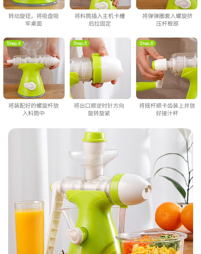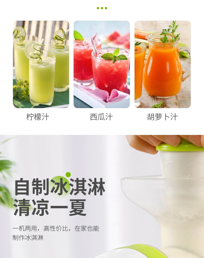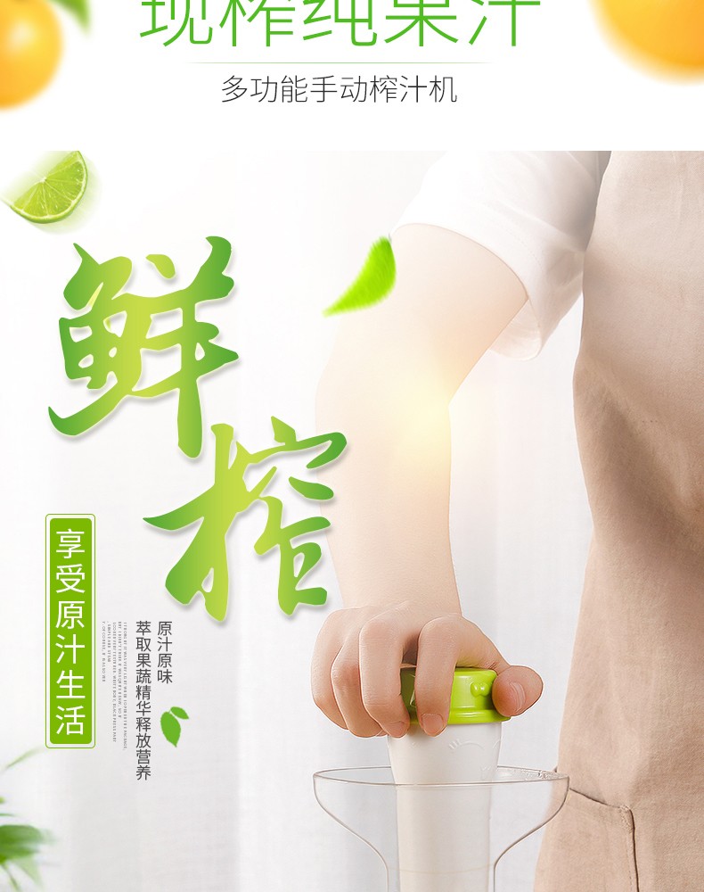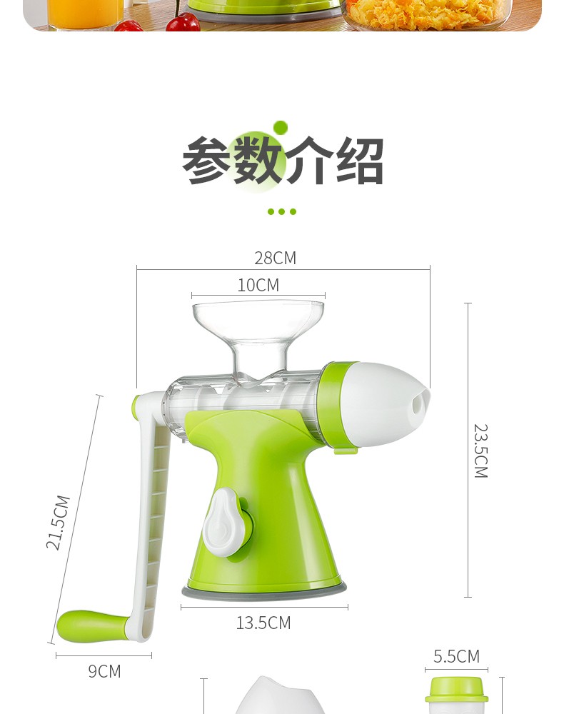 Jingyan manual juicer hand-pressed juicer household original juice machine small residue juice separation freshly squeezed fruit juice press artifact double port design juice + ice cream fruit green