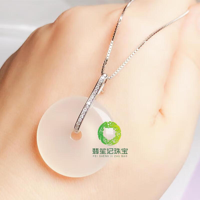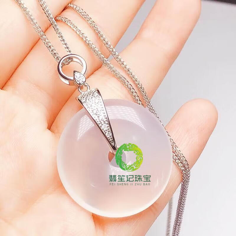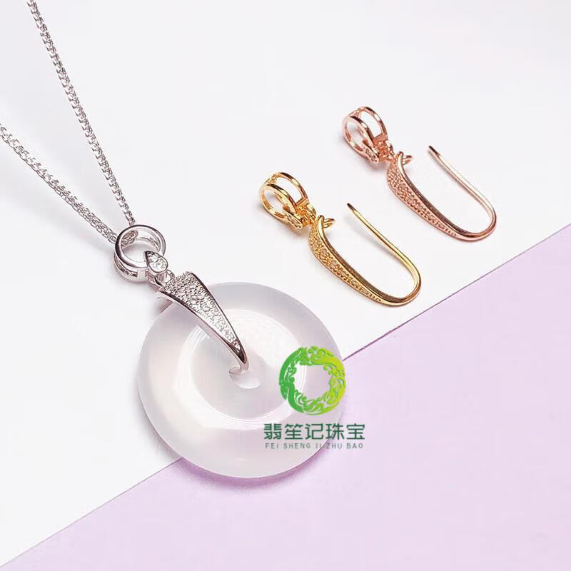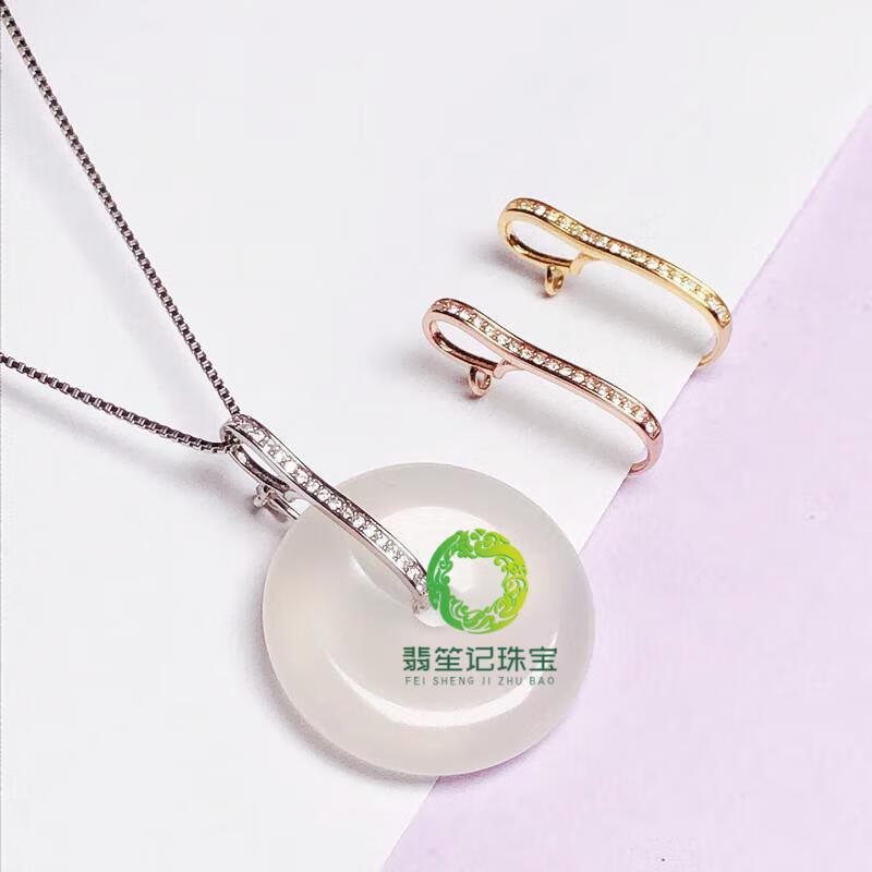 The same style as Fat Donglai focuses on quality 18k gold universal button pendant peace buckle clip jade jade Buddha necklace peace buckle crystal pendant buckle-white gold