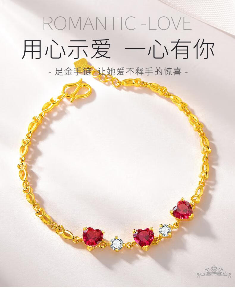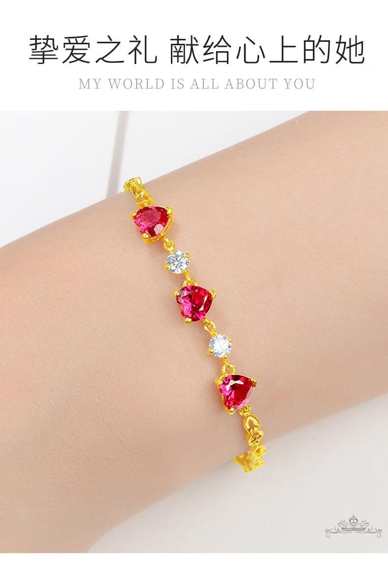 Haikai Bracelet Women's Yellow Gold and Red Gem Bracelet Luxury Jewelry Valentine's Day Birthday Gift for Wife Gold and Ruby Bracelet