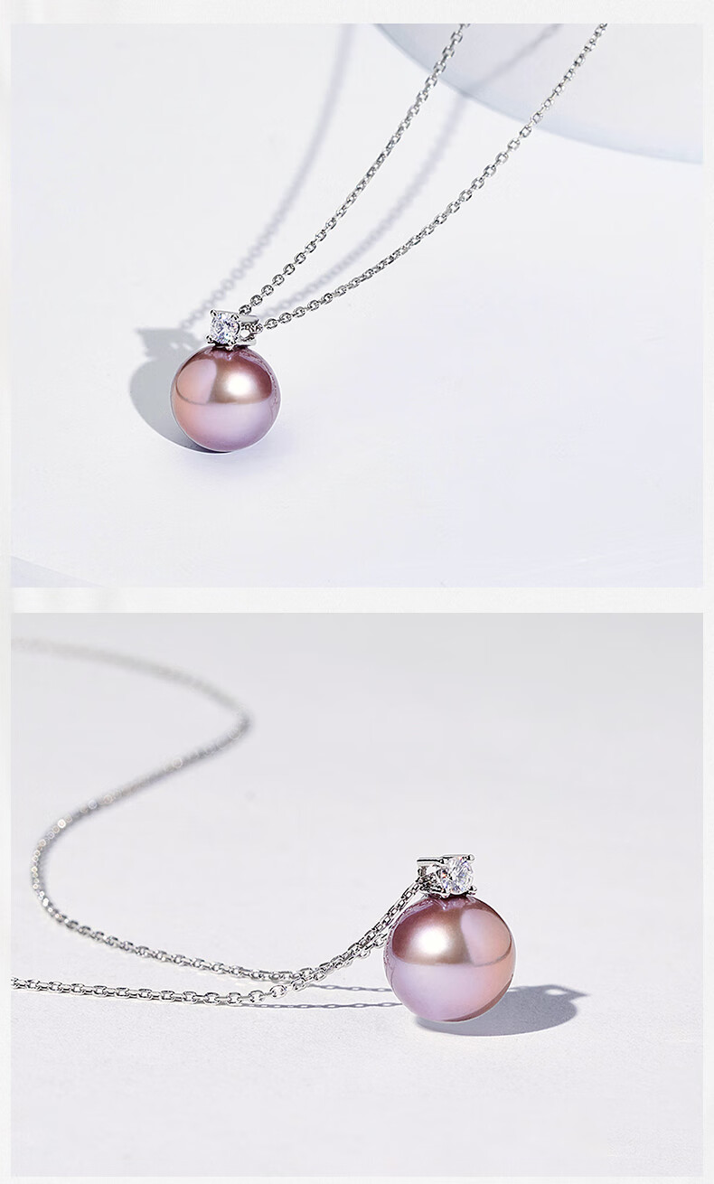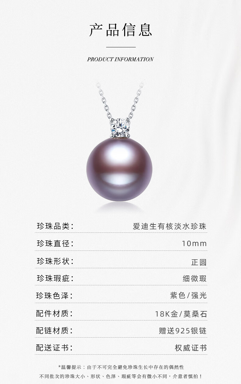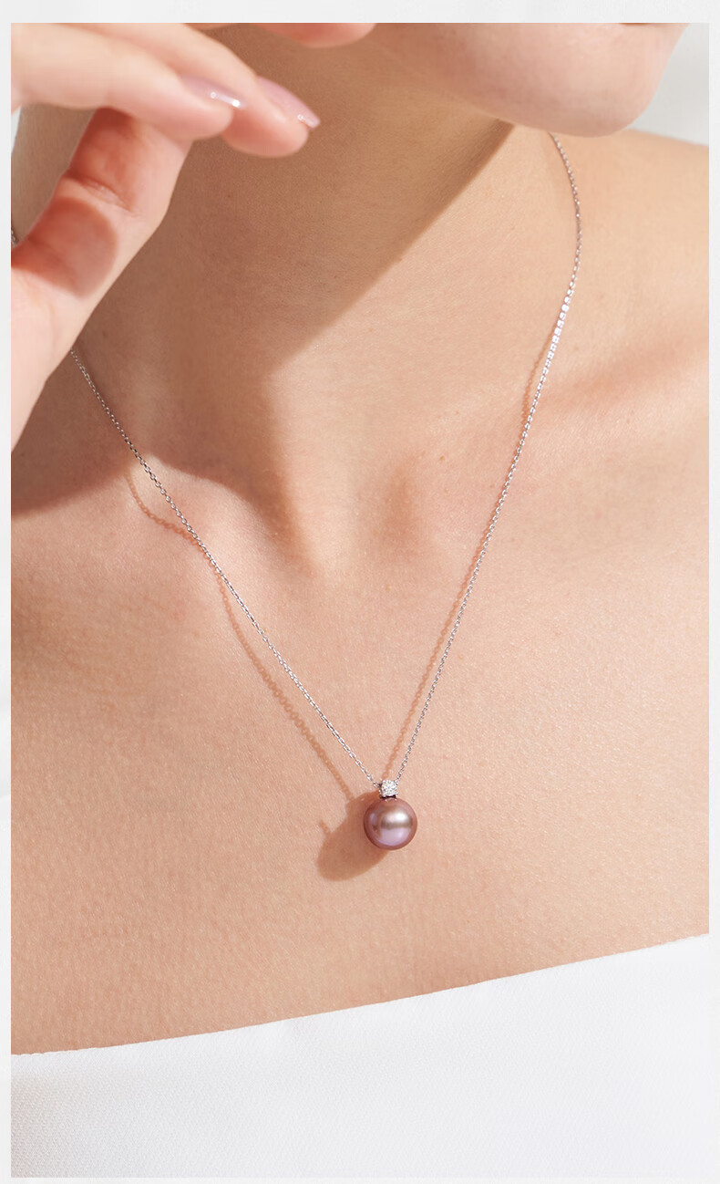 Tahiti Princess Style Pearl Pendant 18K Gold Edison Purple Freshwater Pearl Necklace 10 Points Moissanite + 925 Silver Chain Purple Edison 14-14.5mm