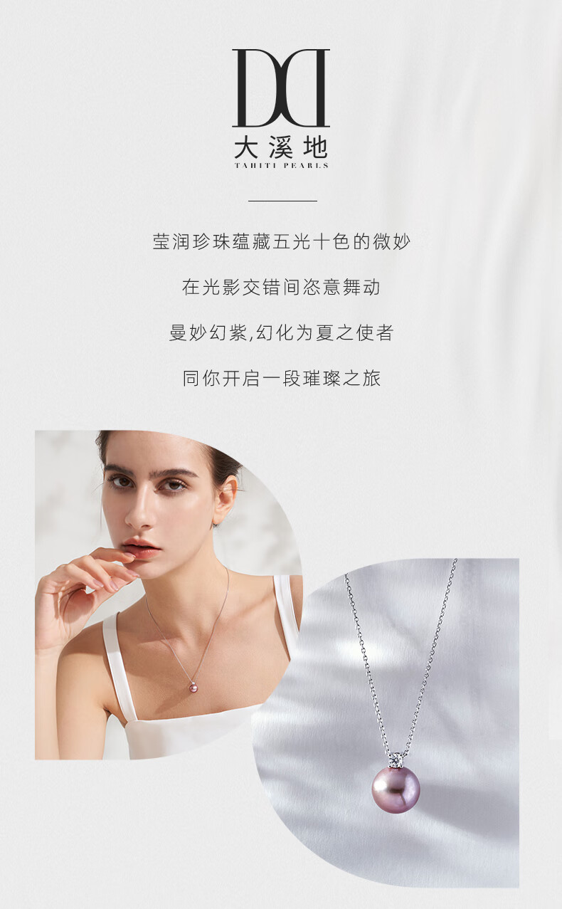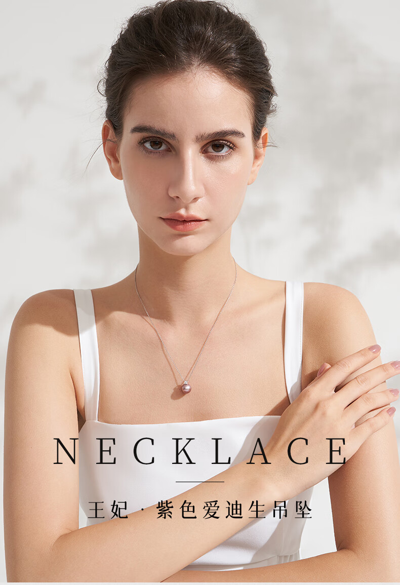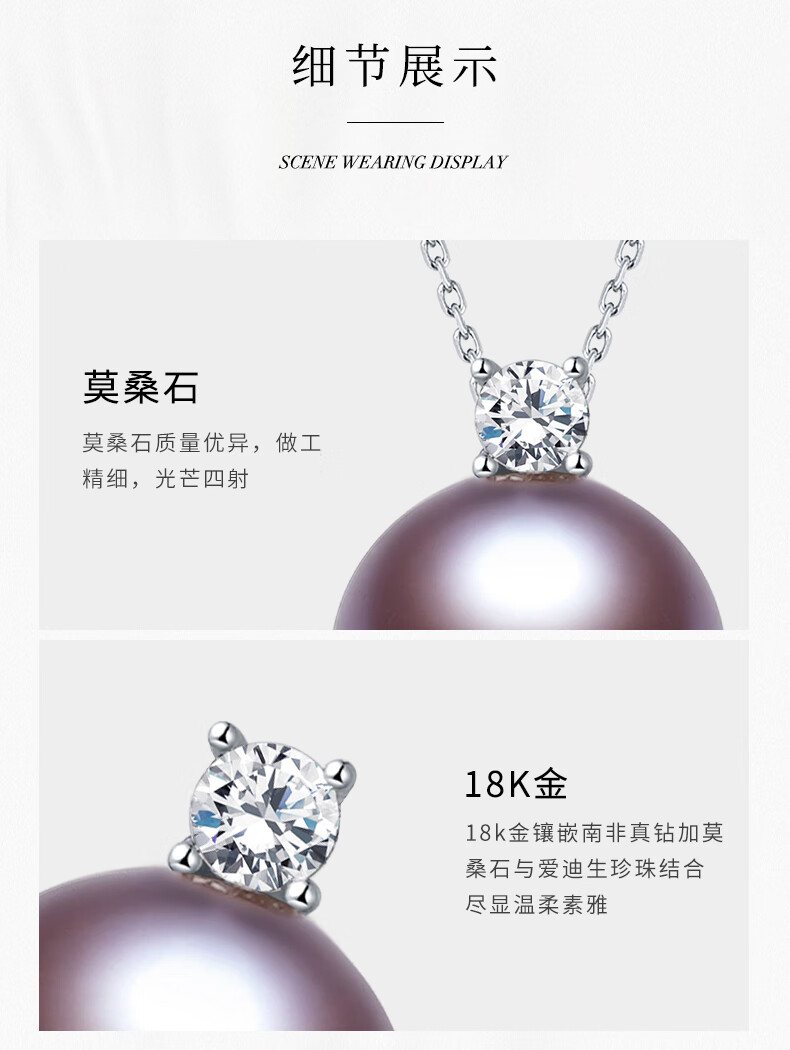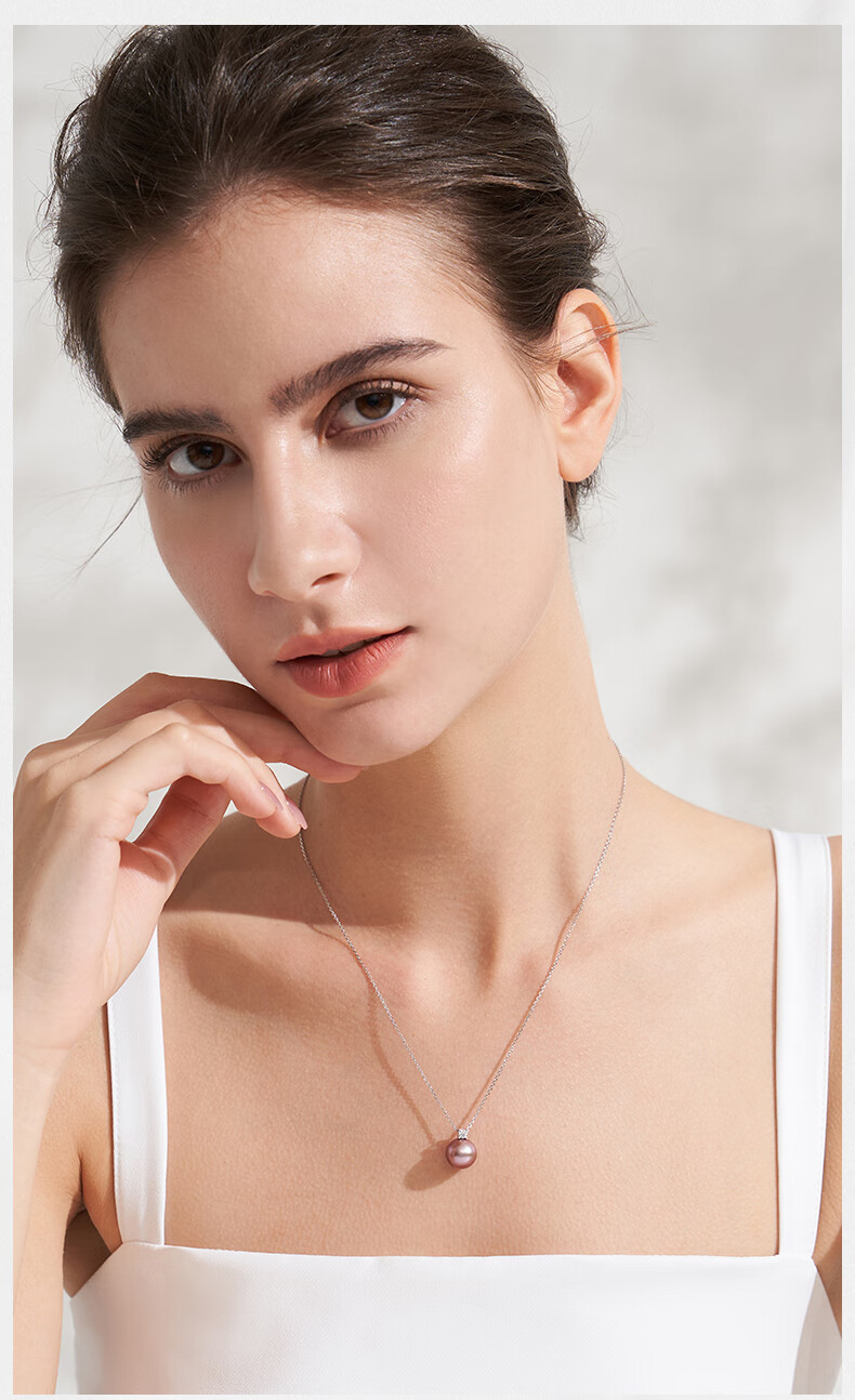 Tahiti Princess Style Pearl Pendant 18K Gold Edison Purple Freshwater Pearl Necklace 10 Points Moissanite + 925 Silver Chain Purple Edison 14-14.5mm