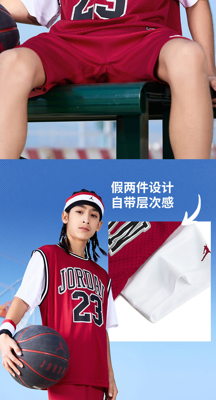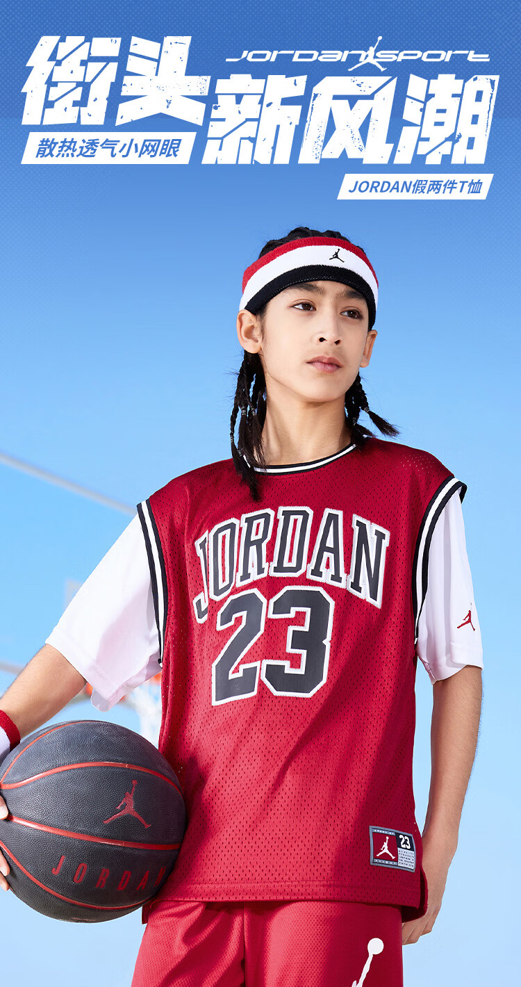 NIKE JORDAN Nike AJ children's clothing for boys and girls summer vacation two-piece short T-shirt 024 new breathable children's short-sleeved moss blue 110 /52 (4T) recommended height 98-104