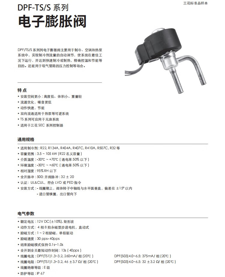 Sanhua electronic expansion valve DPF(TS1)1.3C-1.65-1.8-2.0-2.2-3.0-3.2-3 DPFTS1)18C03 interface 635m