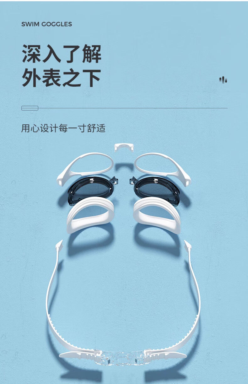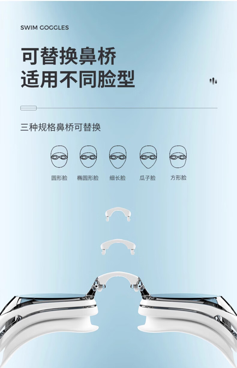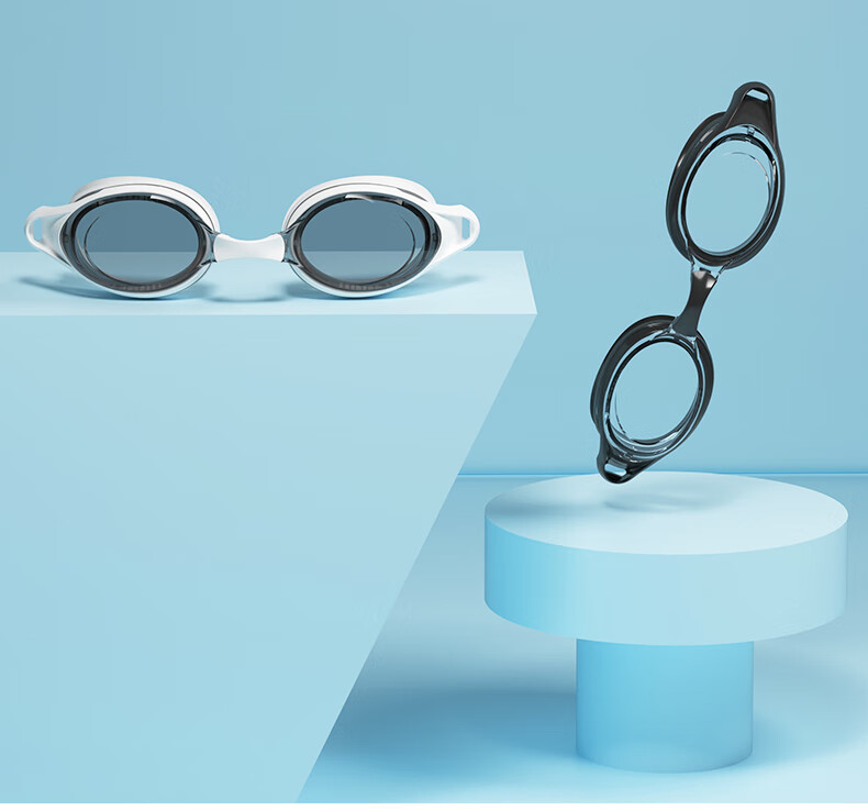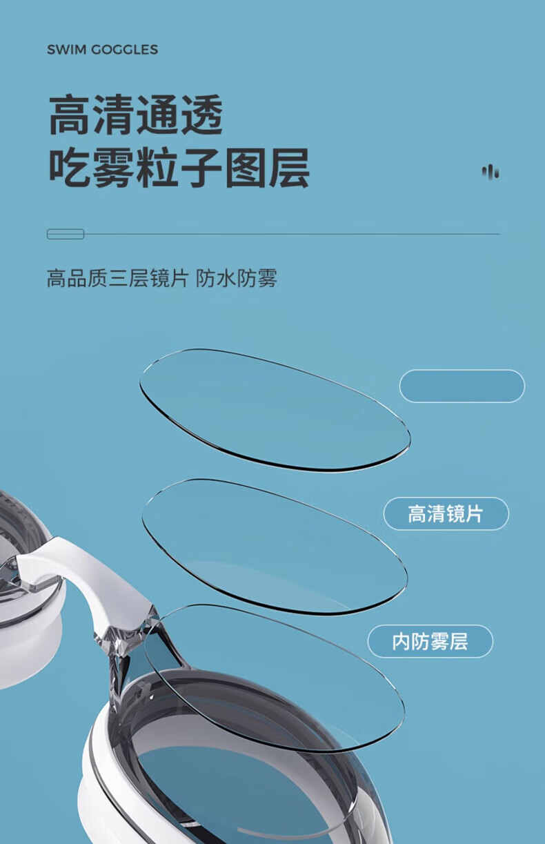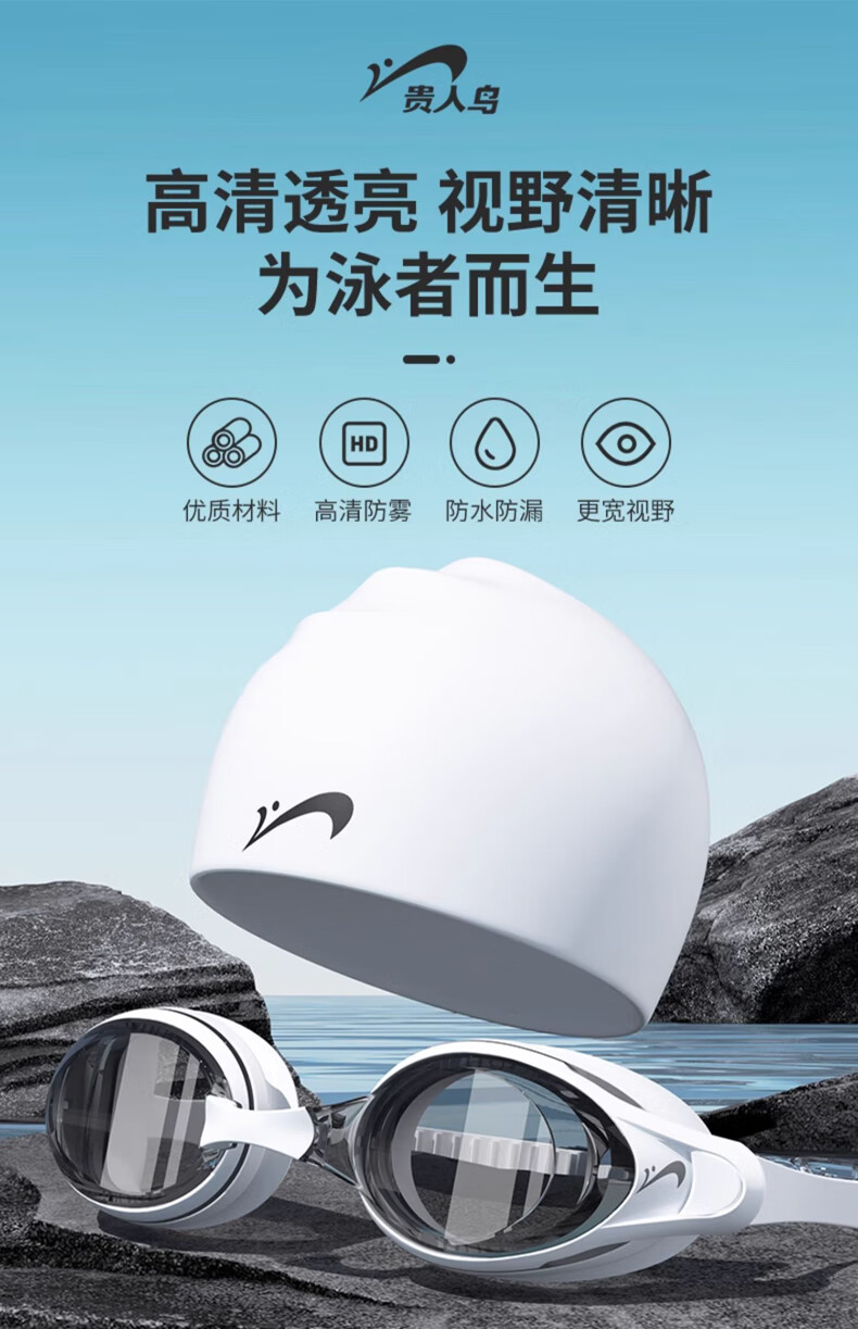 Guirenniao swimming goggles HD anti-fog and waterproof women's swimming goggles myopia with prescription men's swimming cap and goggles set silver gray white nose clip earplugs + goggle box flat light