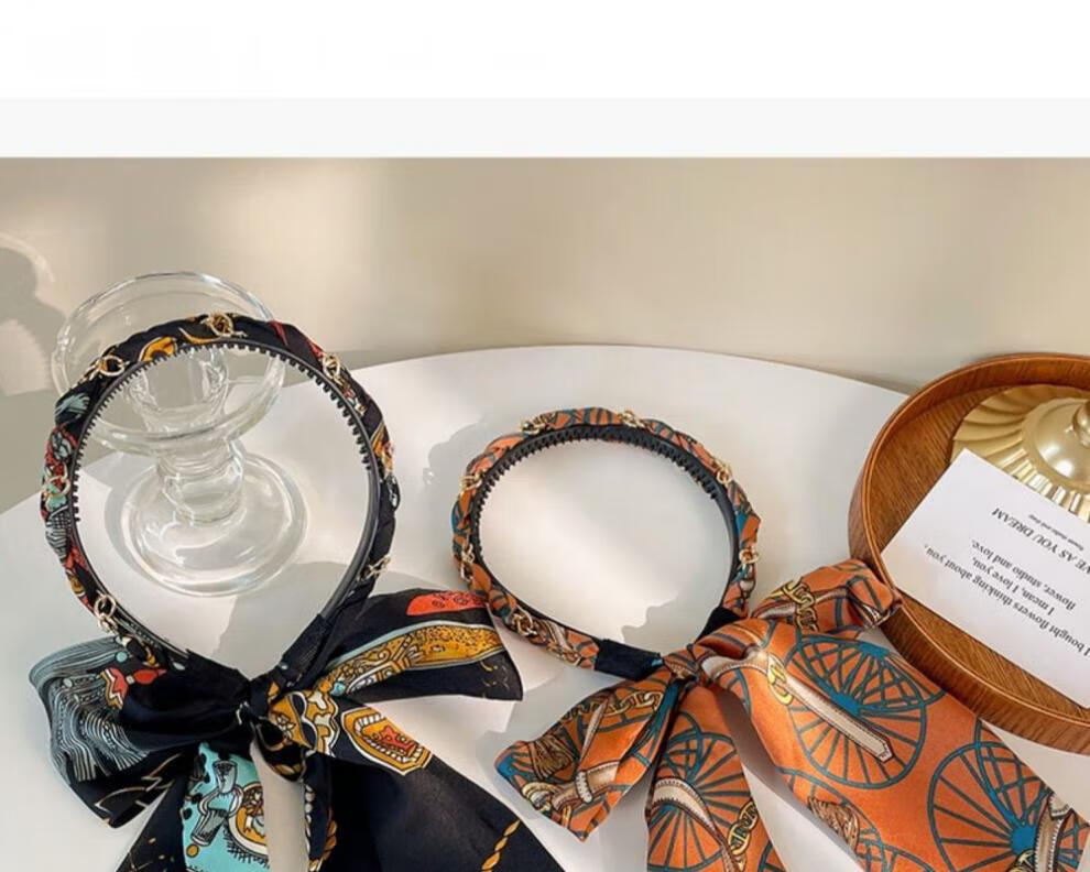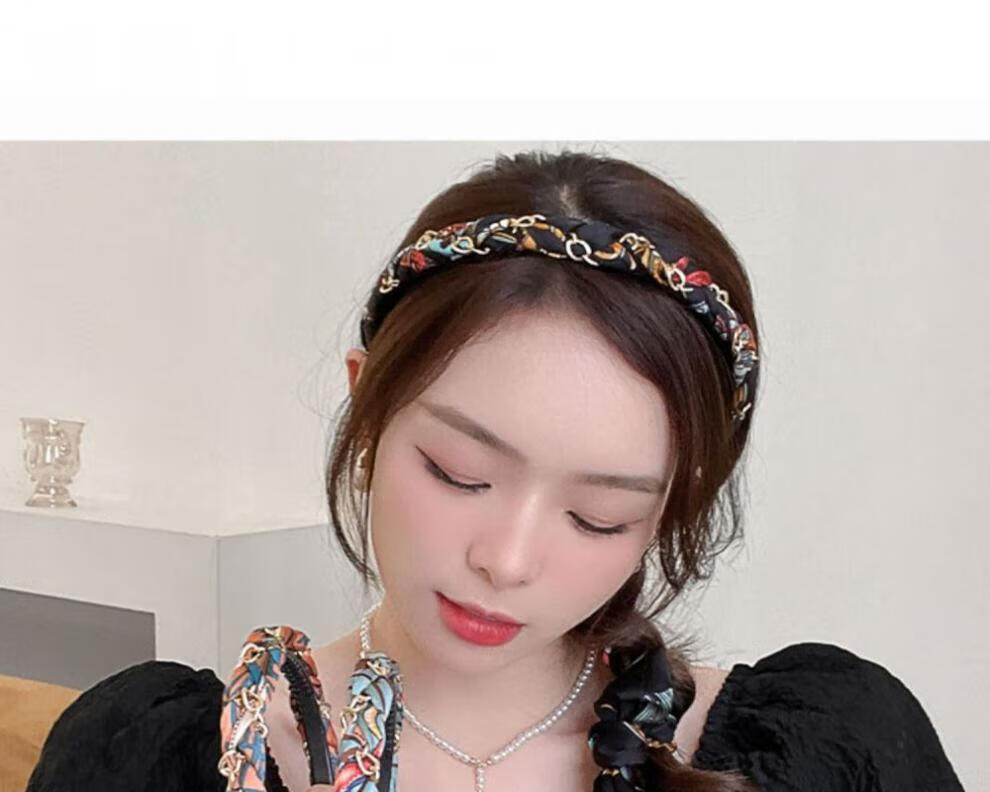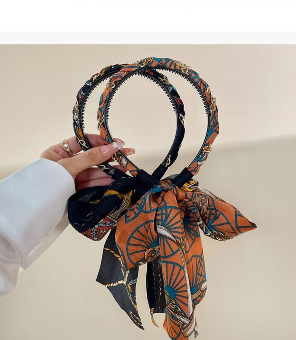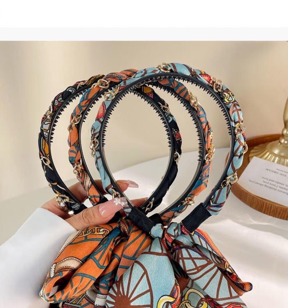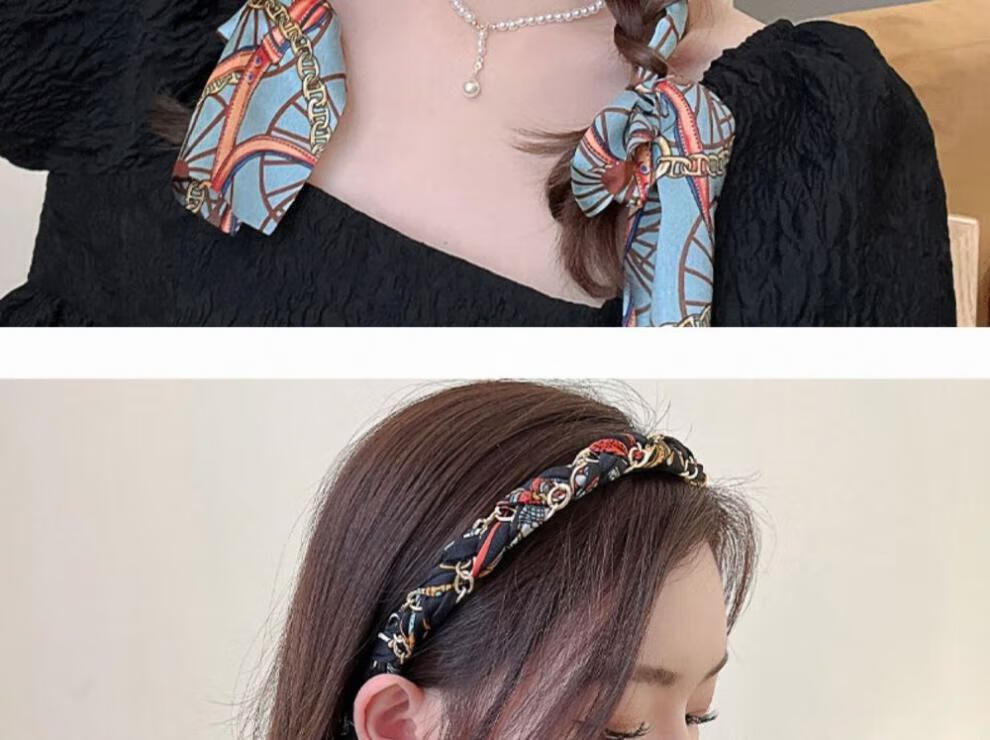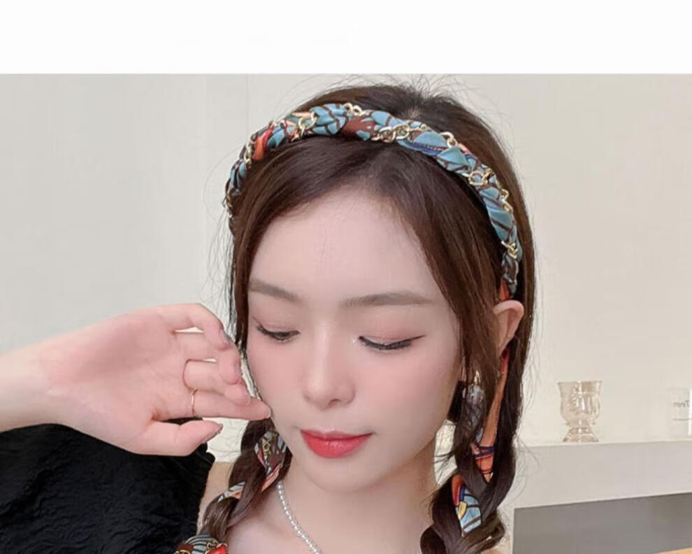 Suyi embroidery retro chain headband streamer headband one-piece satin fabric headdress temperament non-slip hair accessories blue streamer headband