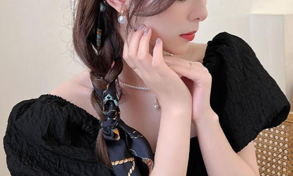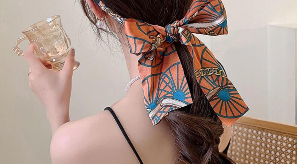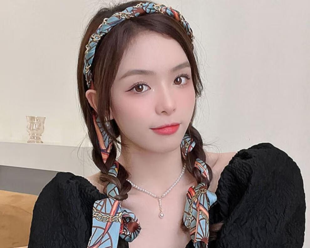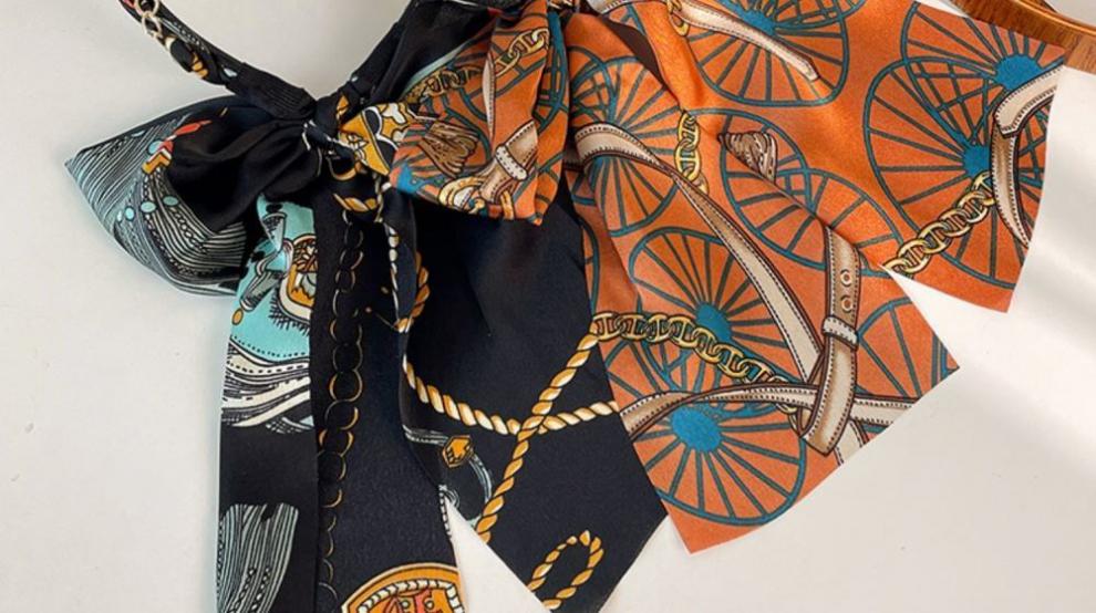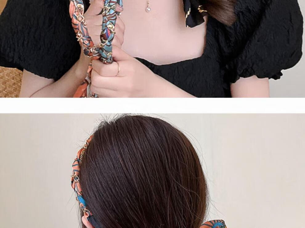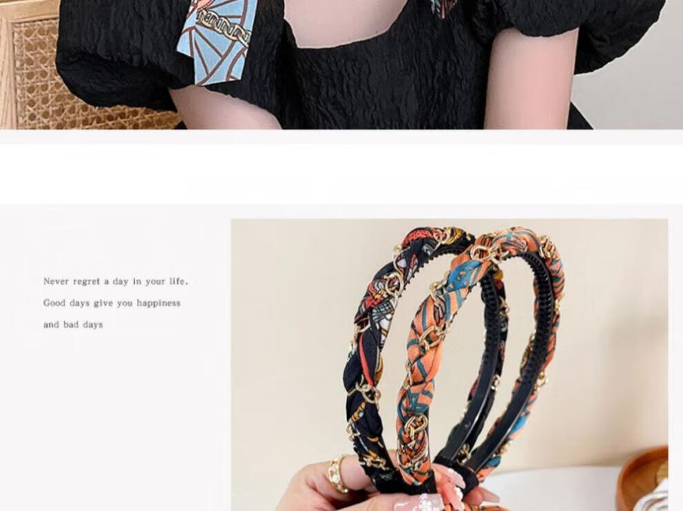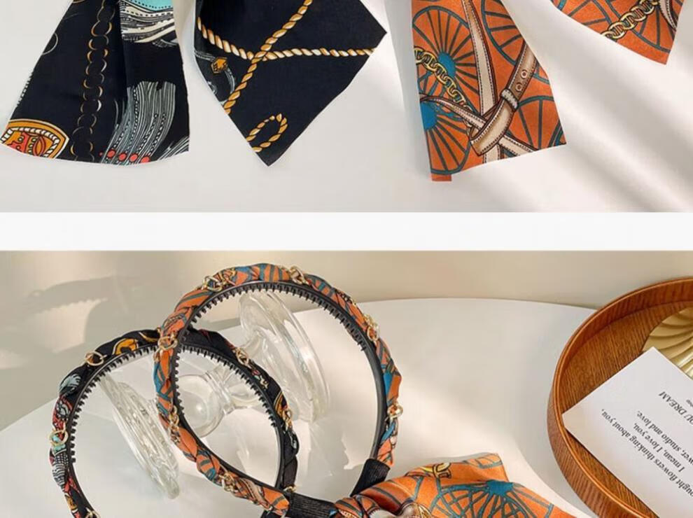 Suyi embroidery retro chain headband streamer headband one-piece satin fabric headdress temperament non-slip hair accessories blue streamer headband