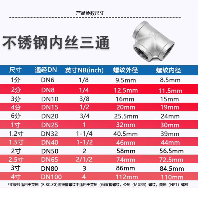 Huardino stainless steel inner wire 4-point tee 304 tee DN15 4-point