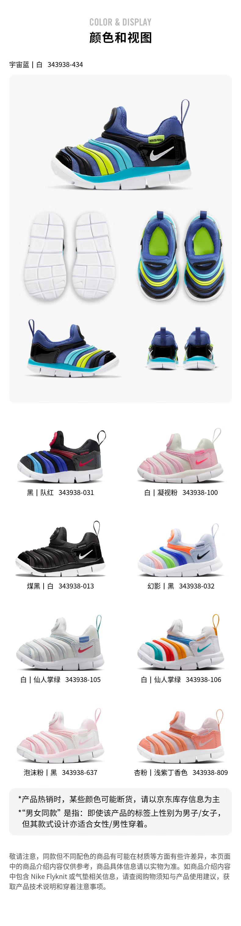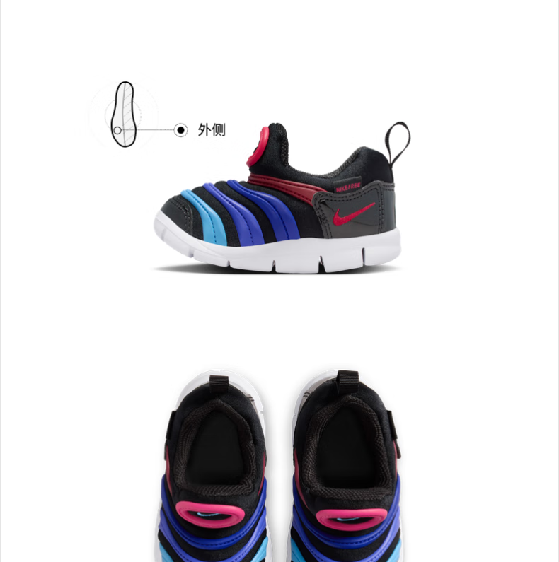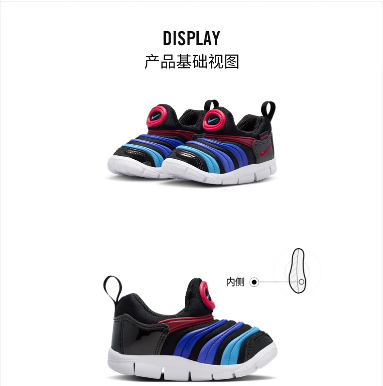 Nike caterpillar baby lightweight soft-soled sports shoes for boys and girls in winter, easy to put on and take off, one-on-one shoes NIKE 343938 013 coal black/white/black 25