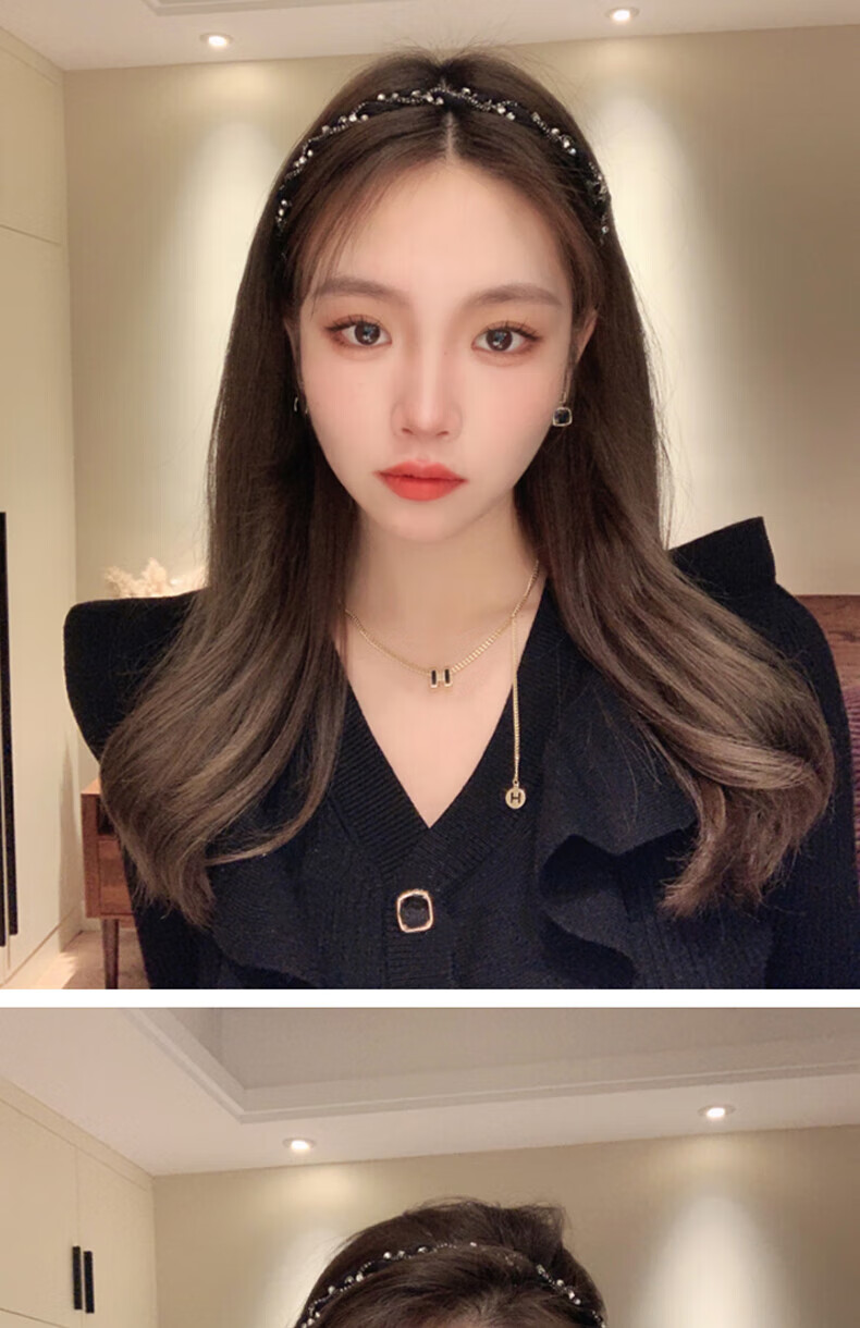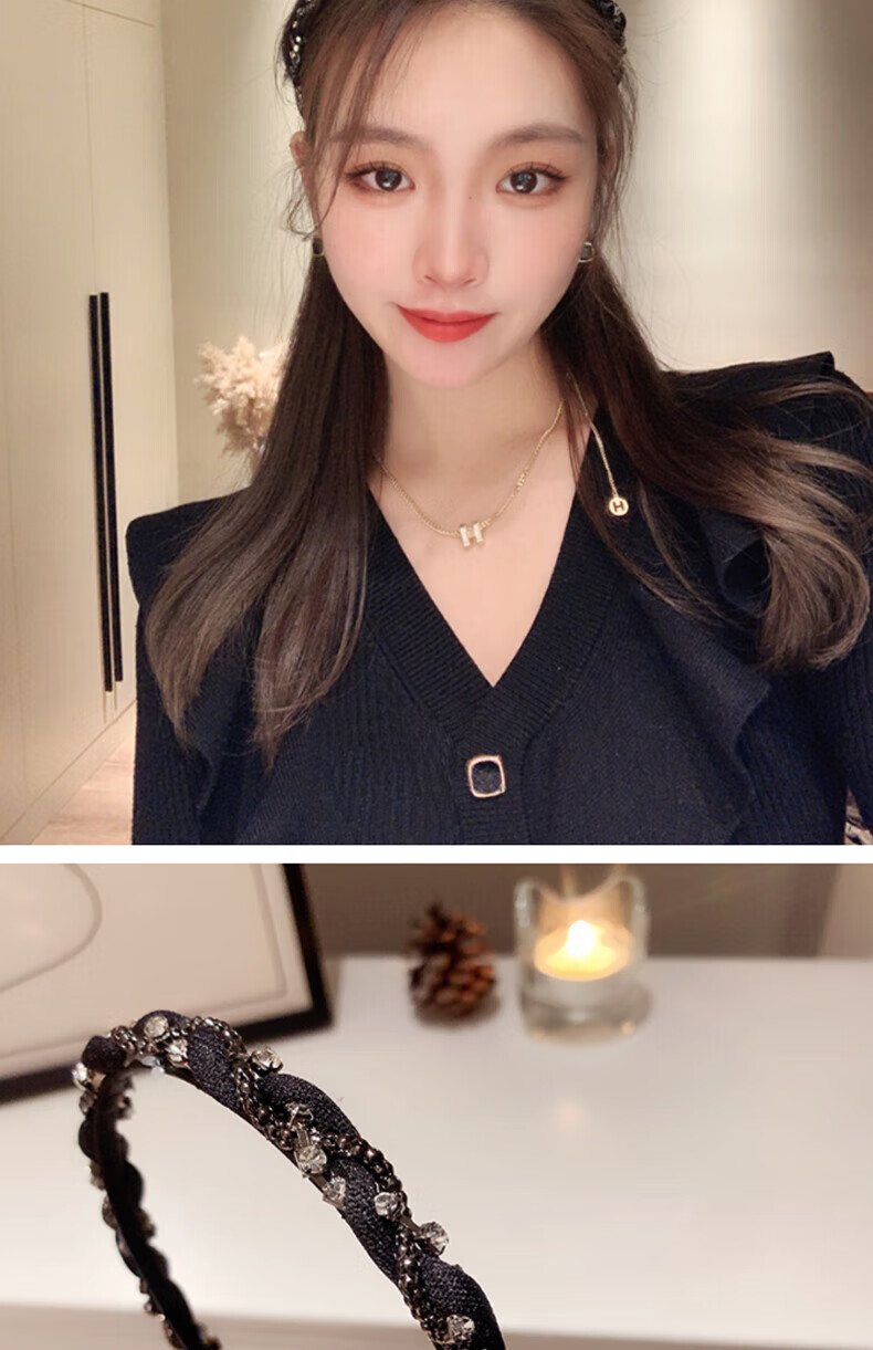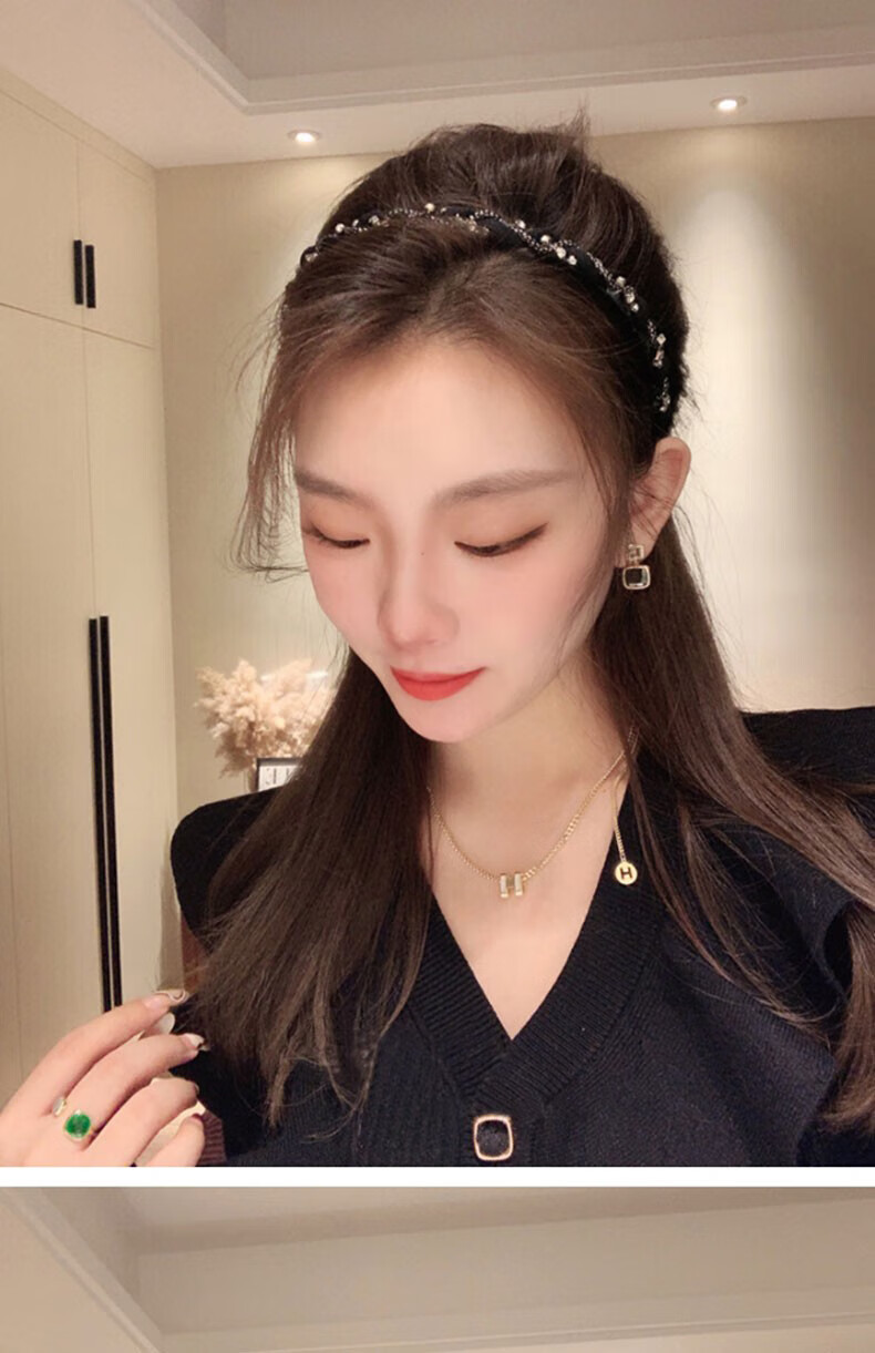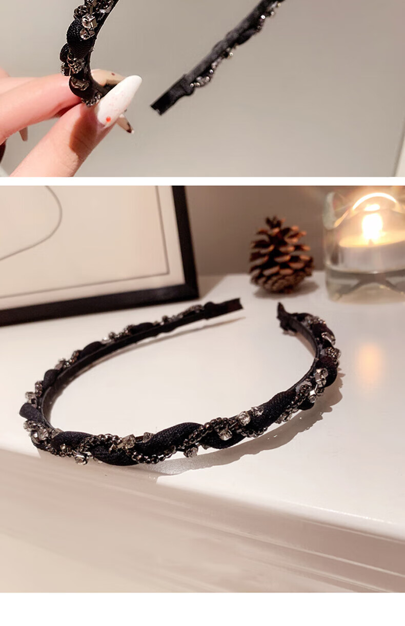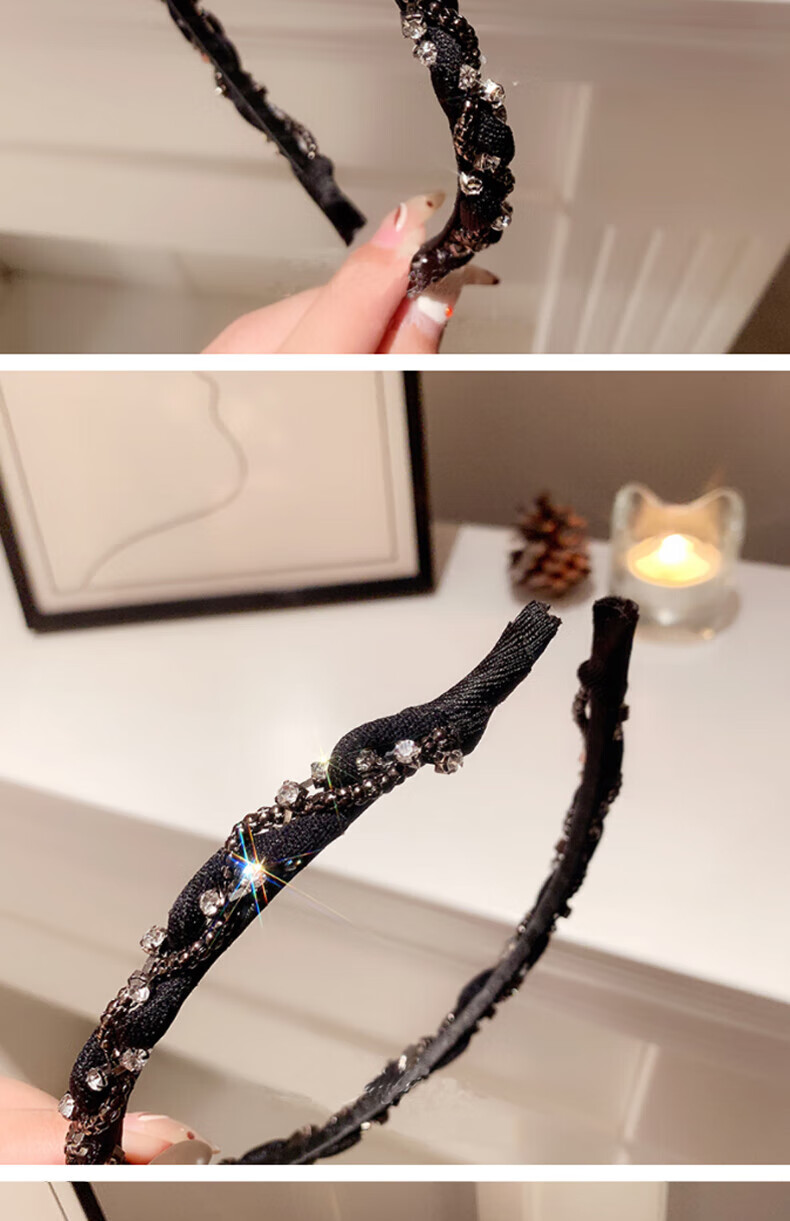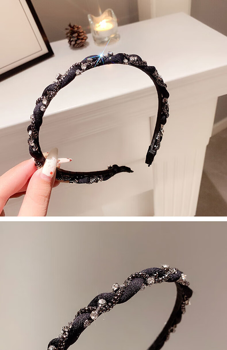 Hua She Shang black hairpin hairband for women retro French face wash without teeth anti-slip headband high-end spring and summer temperament headband sparkling diamond headband - black