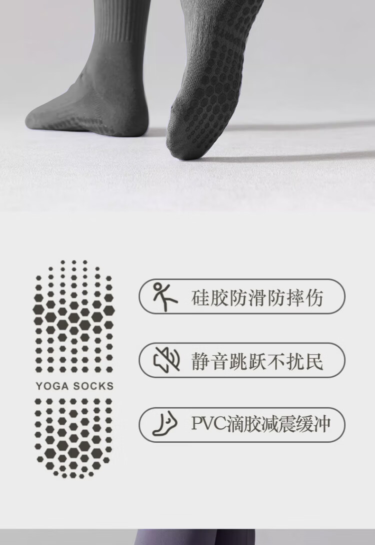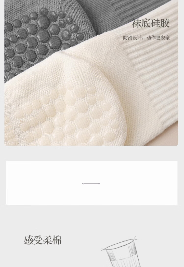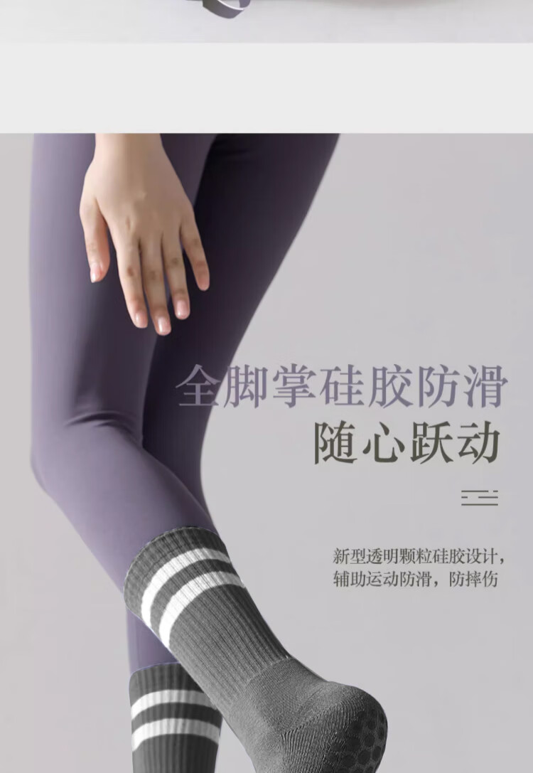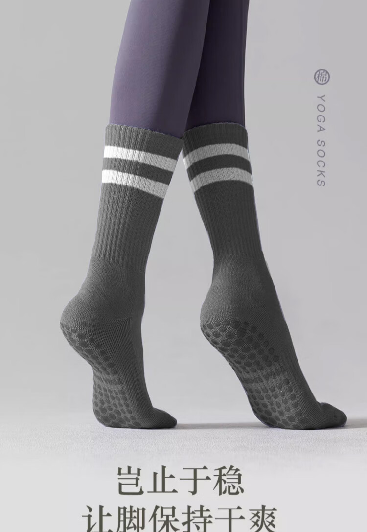Langbisu yoga socks women's non-slip cotton mid-calf socks Pilates fitness sports silicone floor one pair gray