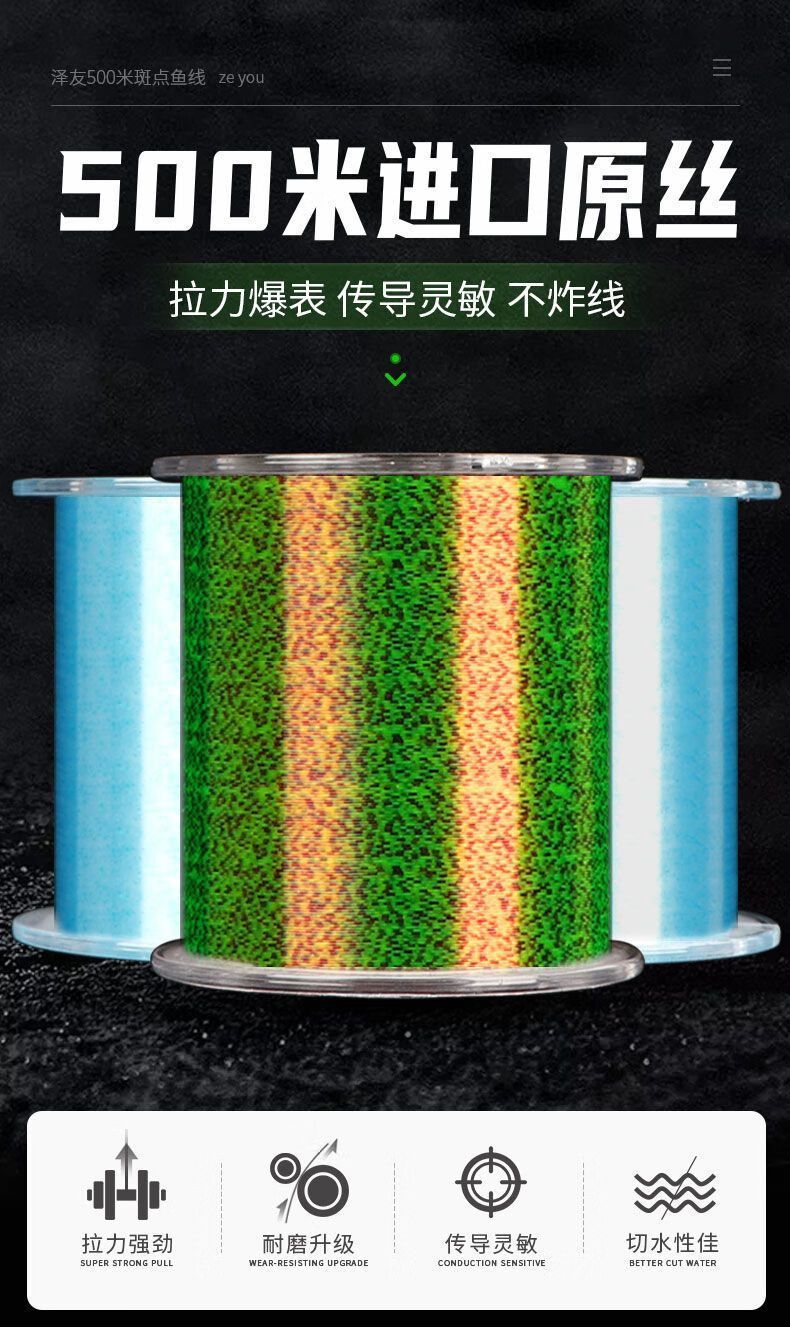 Japan imported raw silk lossless fishing line spotted fishing main line sub-line tension invisible spotted line super soft wild fishing strong spotted green main line 500 meters 5.0#
