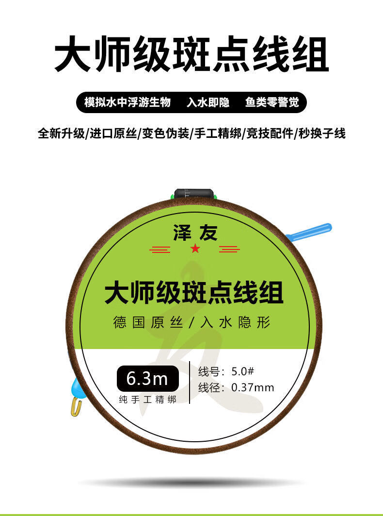 Japan imported invisible spot line group fishing line set, complete set of finished Taiwan fishing main line fishing line group combination 4.5m (eight-shaped ring style) spot invisible line number 2.0# (6 rolls)