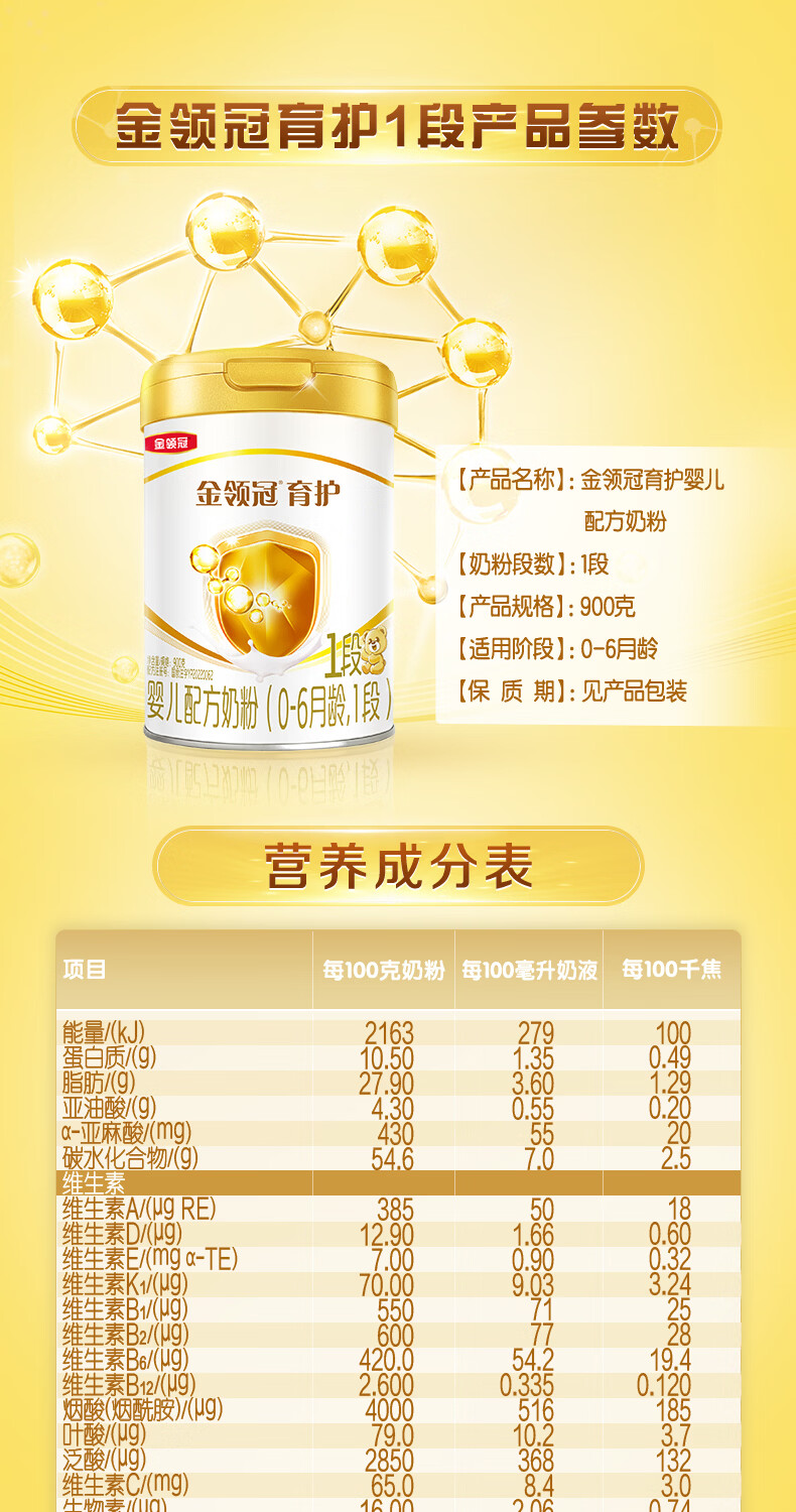 Yili Jinling Guan Yuhu 1 section 900g new national standard milk powder infant milk powder suitable for babies 0-6 months old. New customers will receive 2 small cans for consultation. Yuhu 1 section 900g