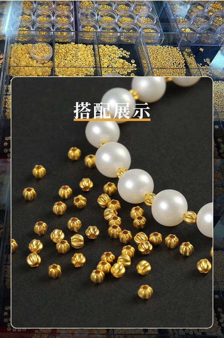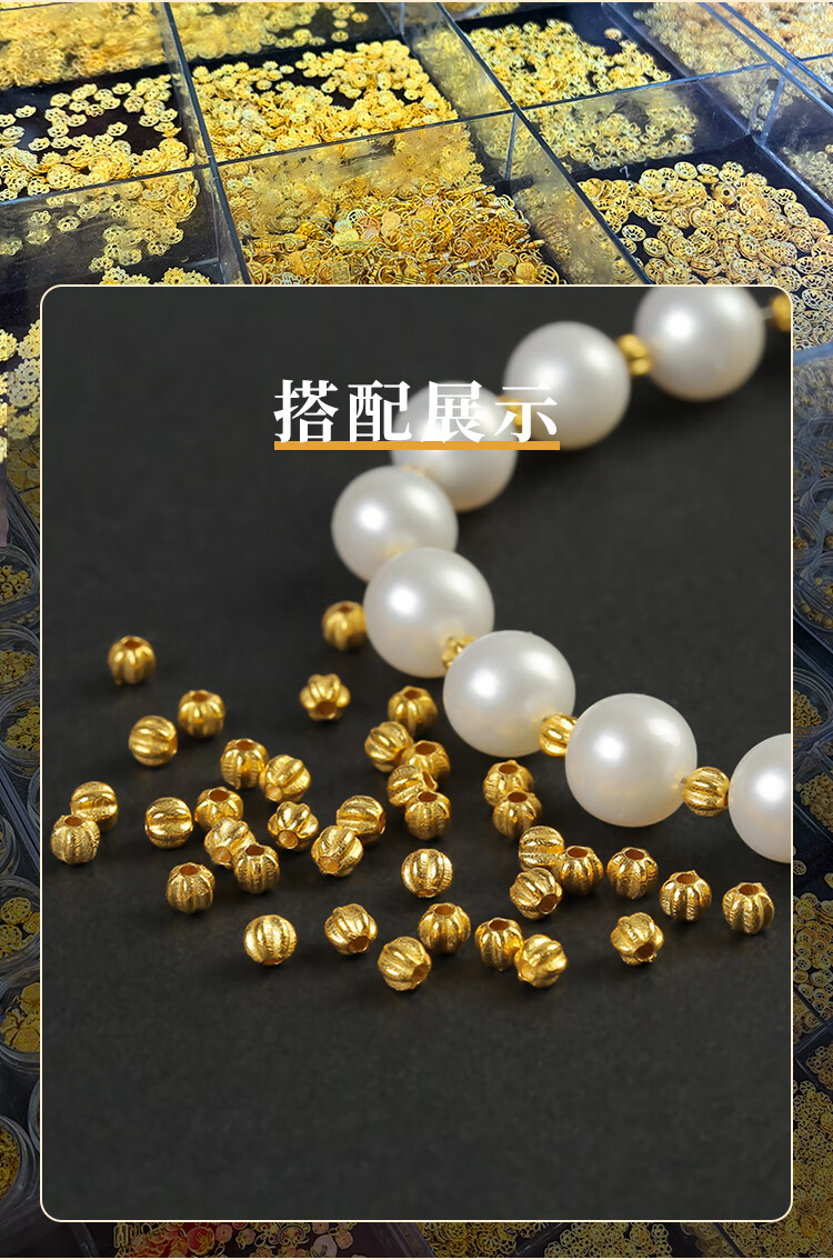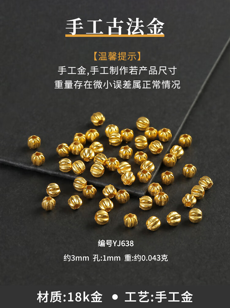 Shengxun 18k gold handmade ancient gold pumpkin beads loose beads spacer beads DIY bracelet hand bead braided rope sweater chain material accessories about 3mm/single (No. YJ638)