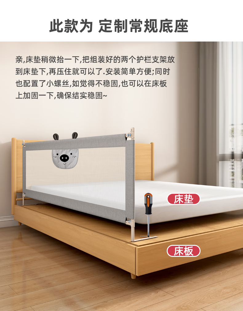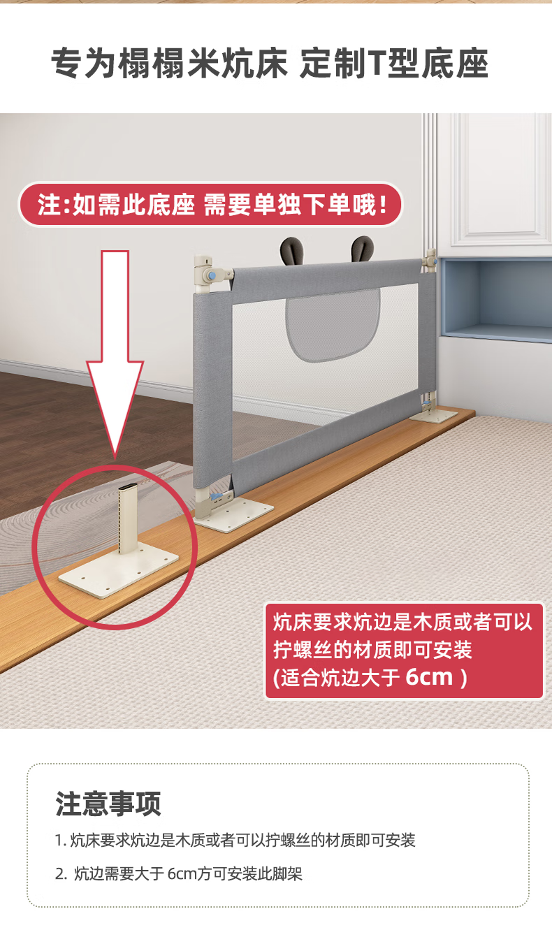 Beeio tatami kang bed fence custom-made horizontal tripod baby fence baffle, regular base replaced with T-shaped base pair, single-sided installation
