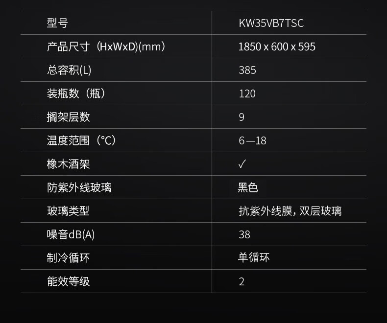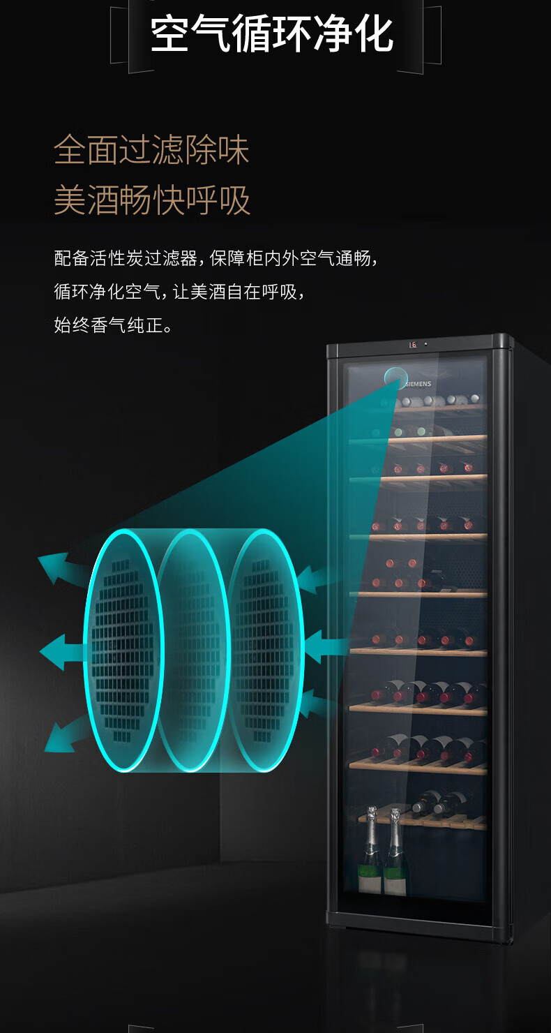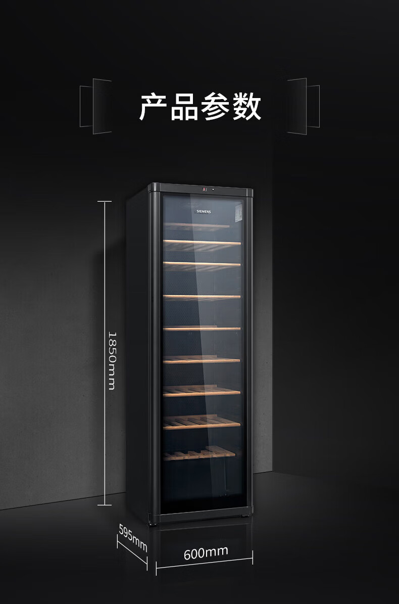 SIEMENS 385L wine cabinet 120 bottles red wine cabinet home wine cabinet constant temperature refrigeration imported oak wine rack black KW35VB7TSC 120 bottles black 385L