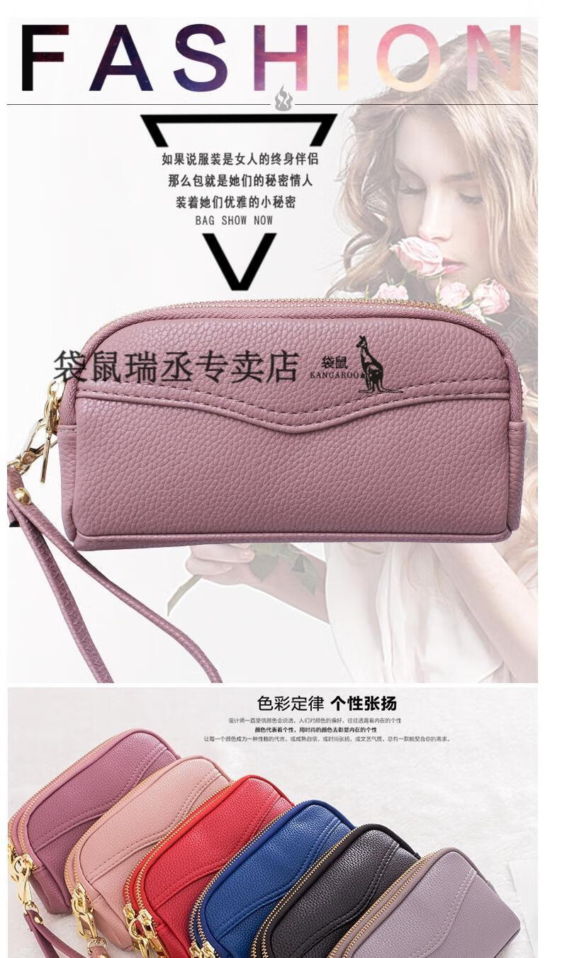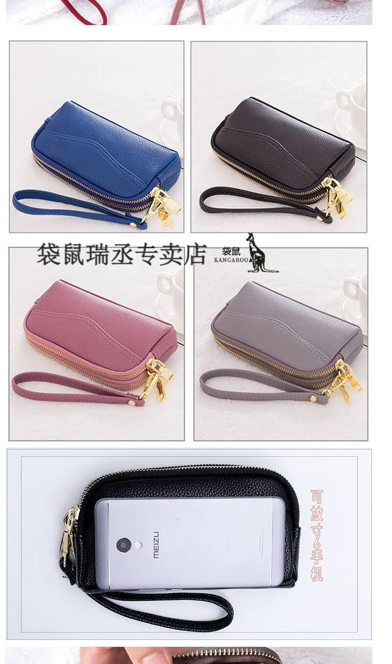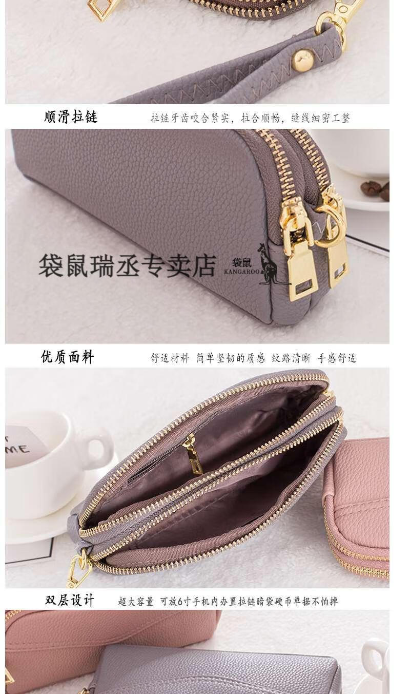 Kangaroo 2024 New Double Zipper Clutch Women's Fashion Small Handbag Mobile Phone Bag Coin Purse Large Capacity Long Wallet 662 Black JD