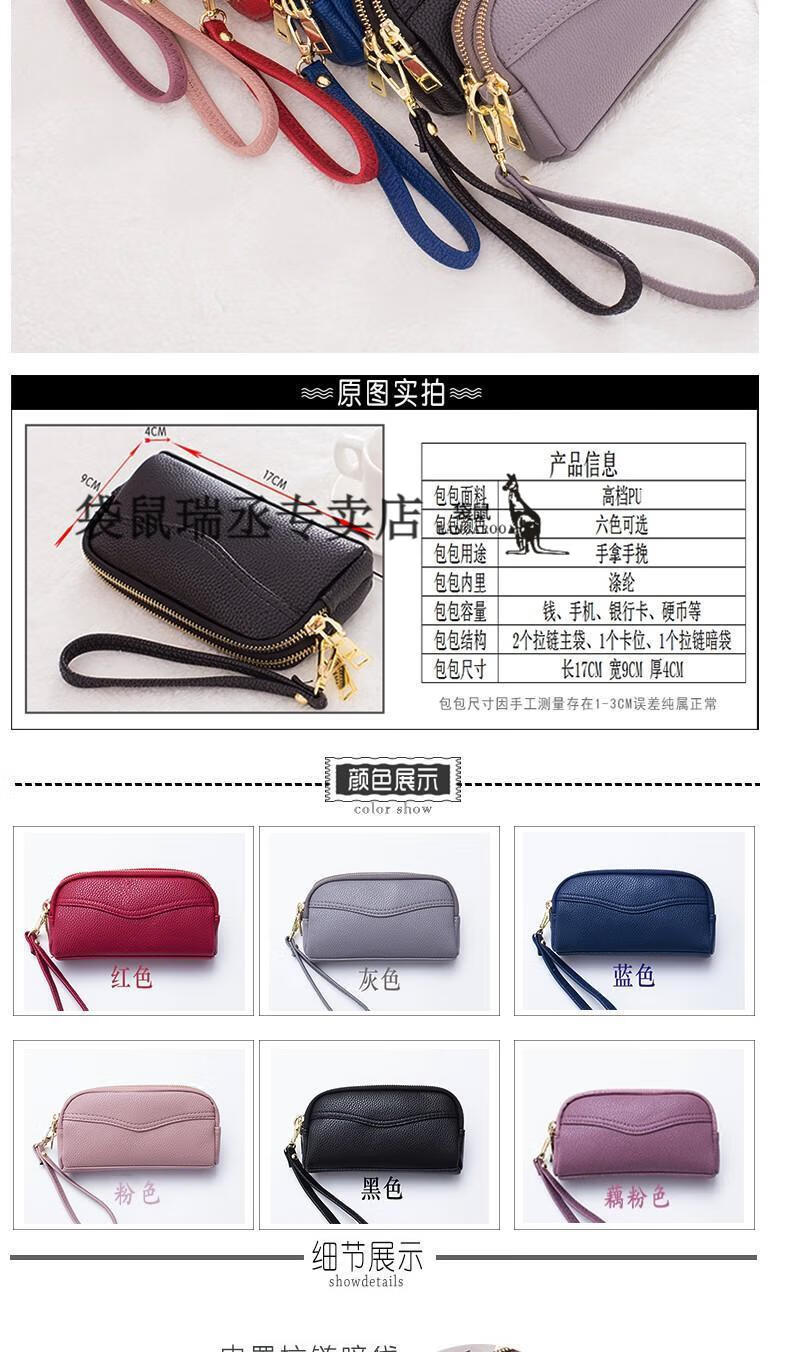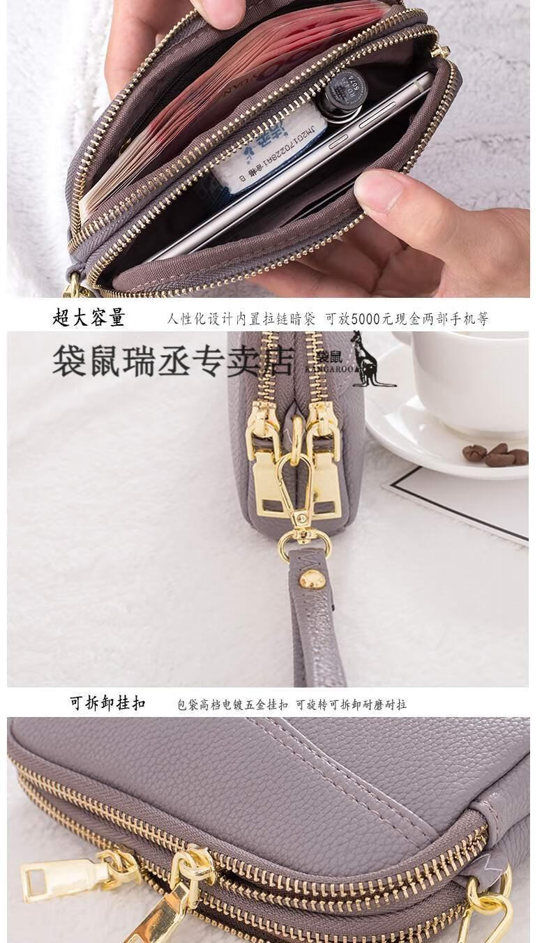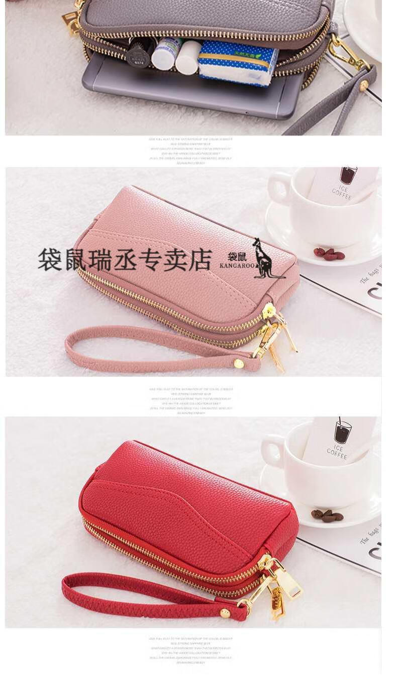 Kangaroo 2024 New Double Zipper Clutch Women's Fashion Small Handbag Mobile Phone Bag Coin Purse Large Capacity Long Wallet 662 Black JD