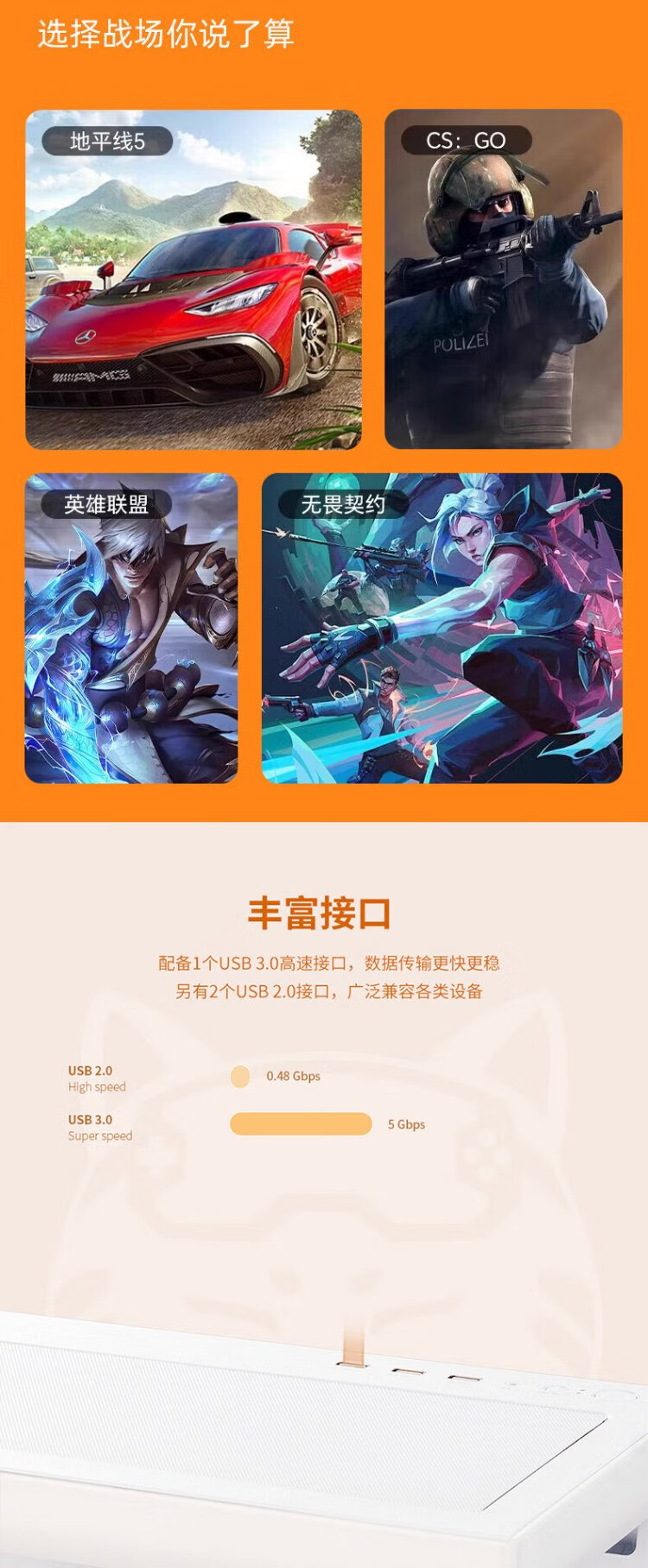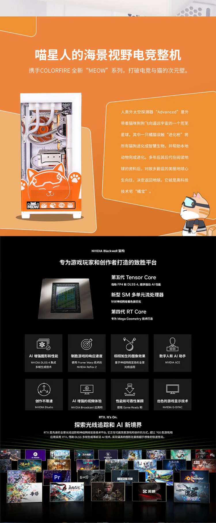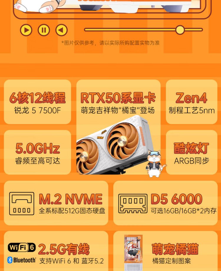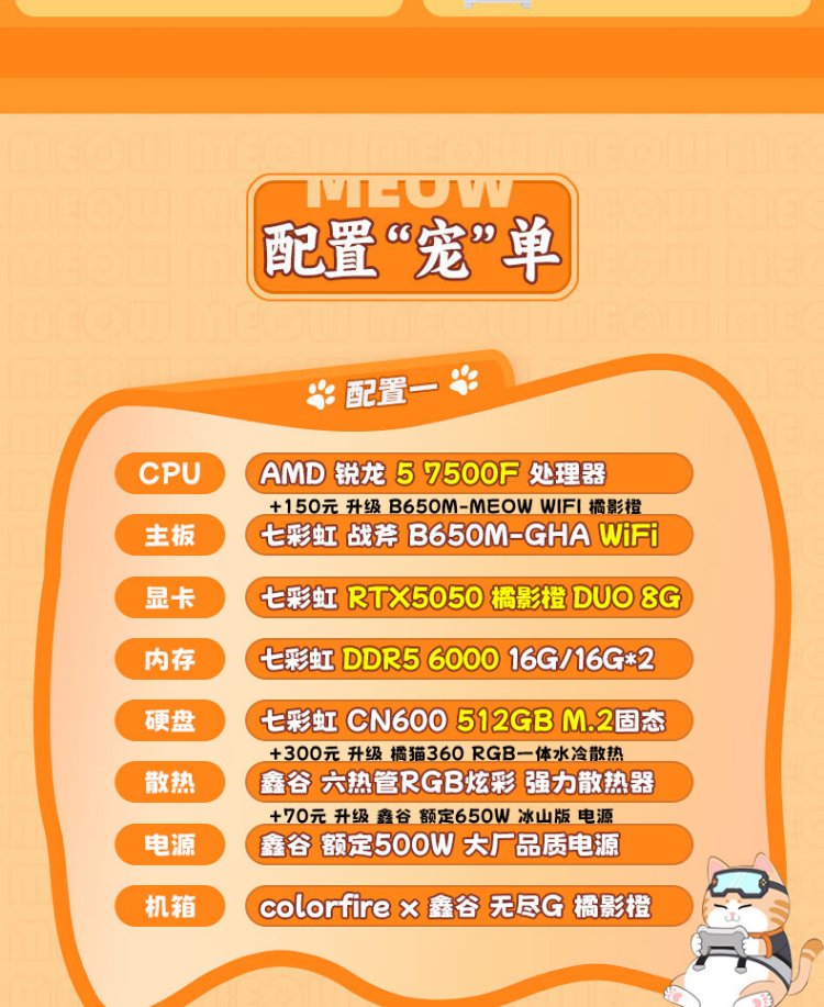 Colorful AMD Orange Cat DDR5 computer complete machine R5 7500F/RTX5060Ti RTX5070 4060Ti desktop gaming computer AI design DIY assembly host with two丨R5 7500F+D5+RTX5060 8G丨16GB D5 memory