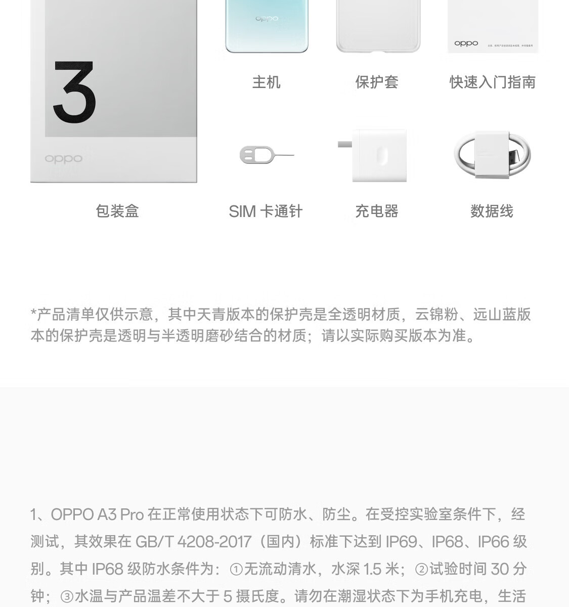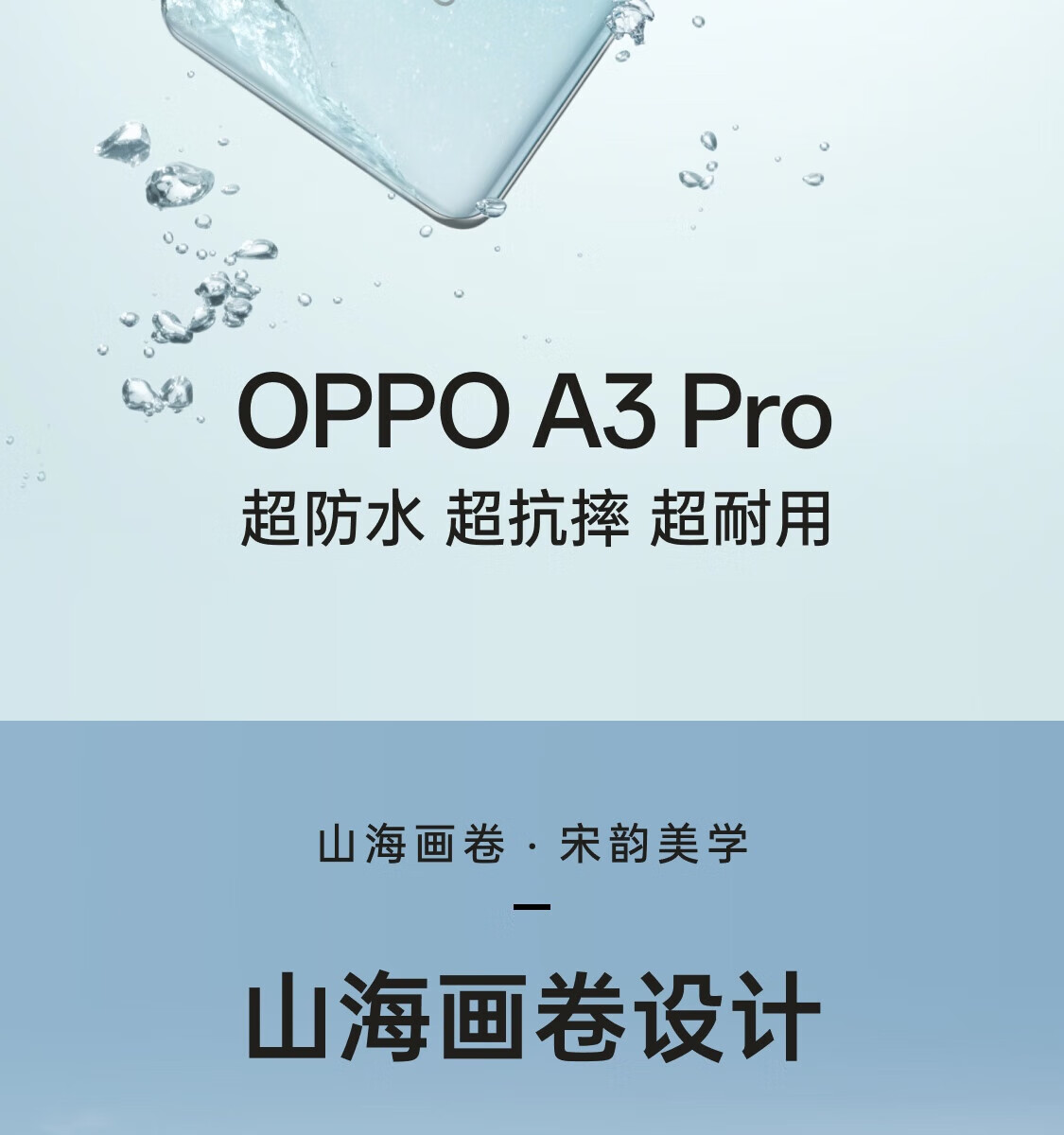 OPPO A3pro 5G mobile phone, durable God of War, full level waterproof, 360 anti-fall, four-year durability, large battery, AI mobile phone, Yunjin powder, 12GB+512GB, 0 down payment, 12 installments, interest-free + free 90-day broken screen protector (recommended)