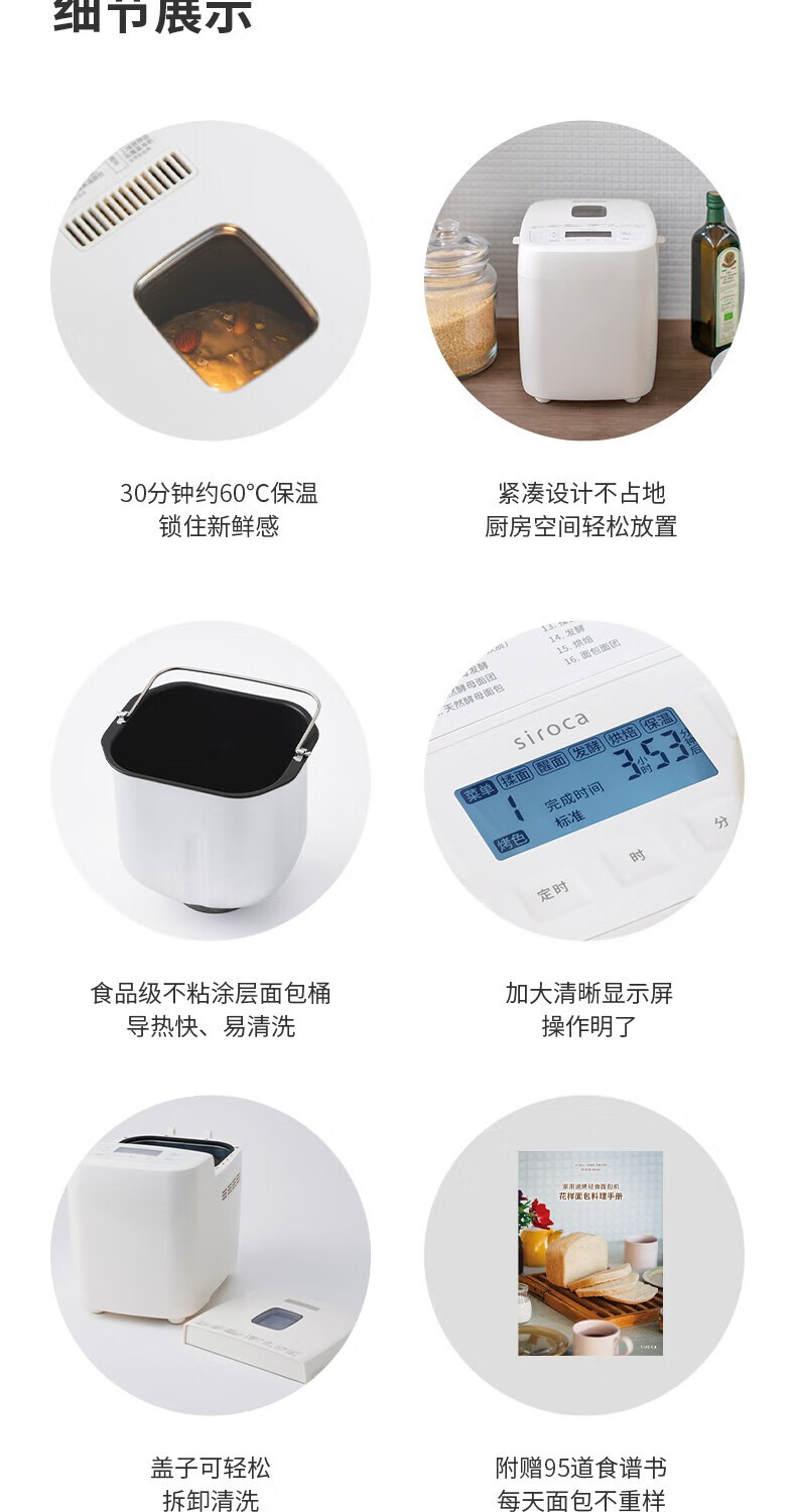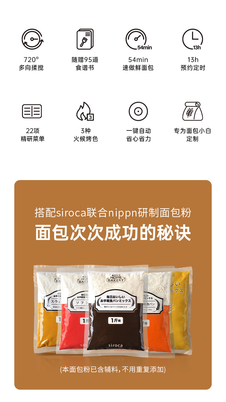 Siroka Bread Machine, Fully Automatic Toaster, All-in-one Home Multifunctional Kneading Machine and Dough Making Machine, Toaster, Fermentation Baking, Small Intelligent Breakfast Machine, Fang Xiaobai-Standard Set (Free 1 Pack of Flour + 1 Glove)
