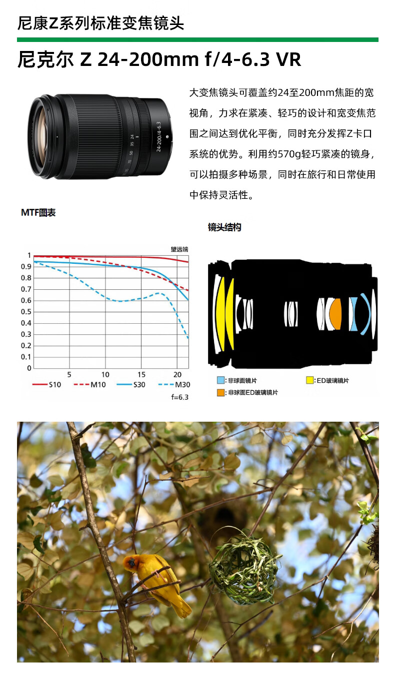 Nikon Nikkor Z mount lens Nikon Z series mirrorless camera lens Nikon z lens zoom lens Z28-400mmf/4-8 VR zoom lens official standard