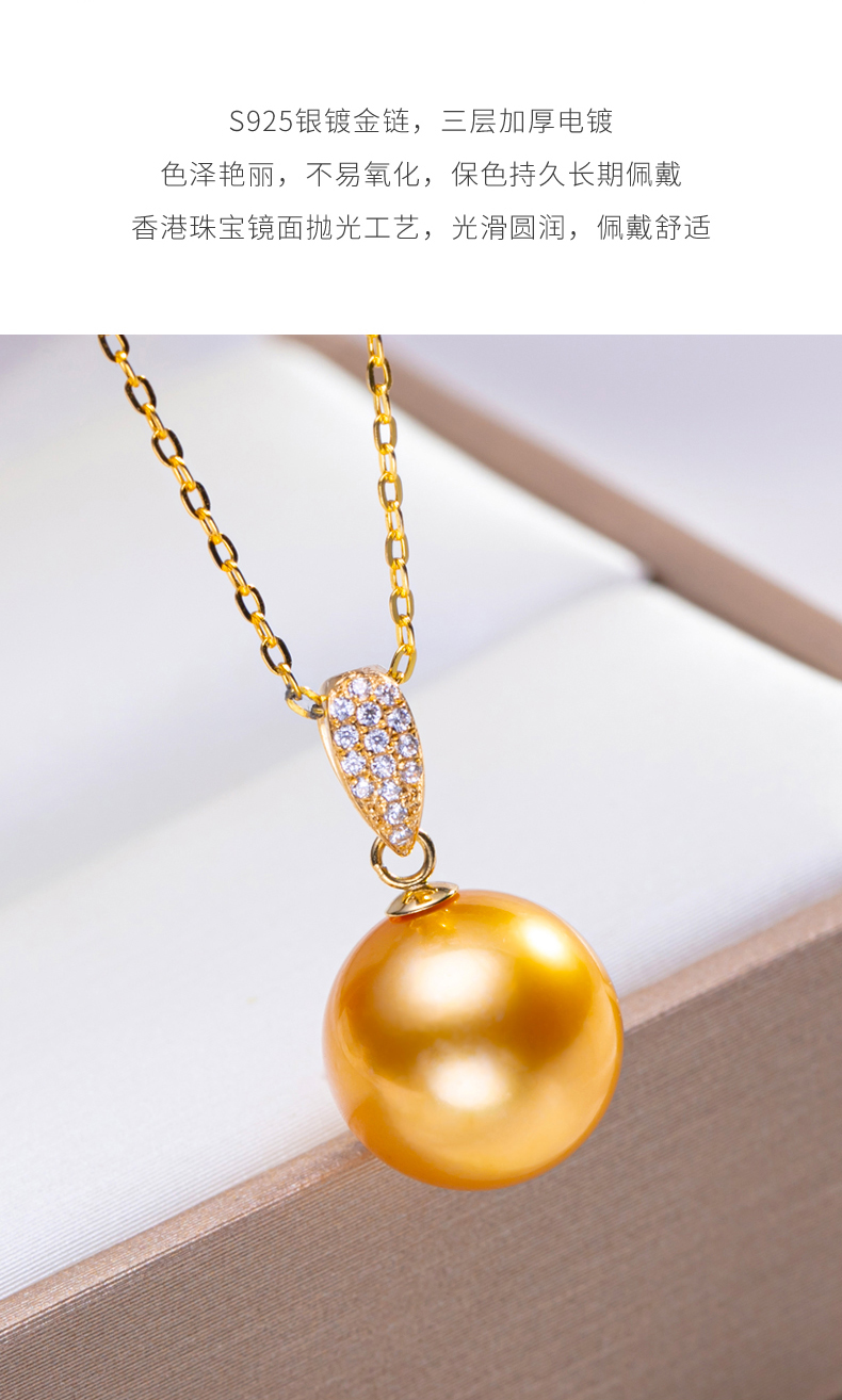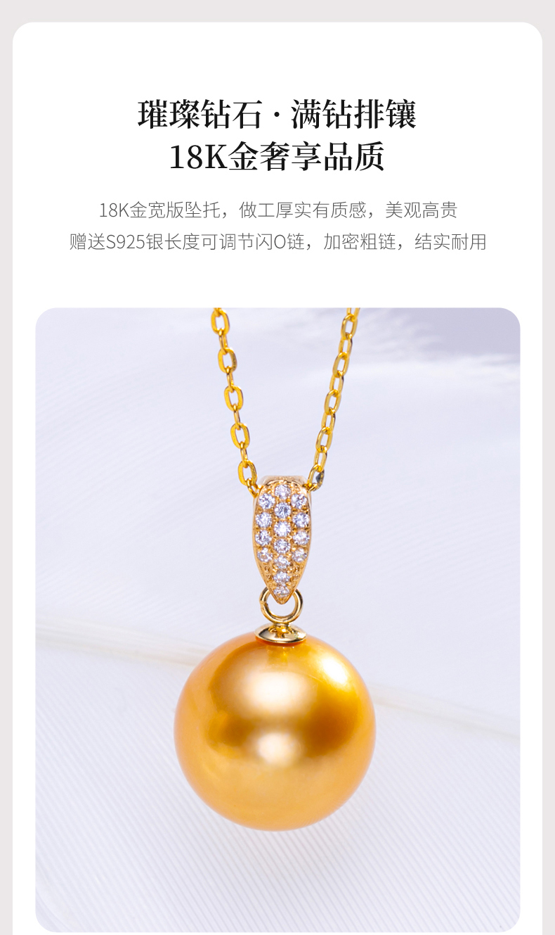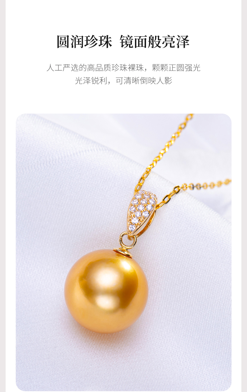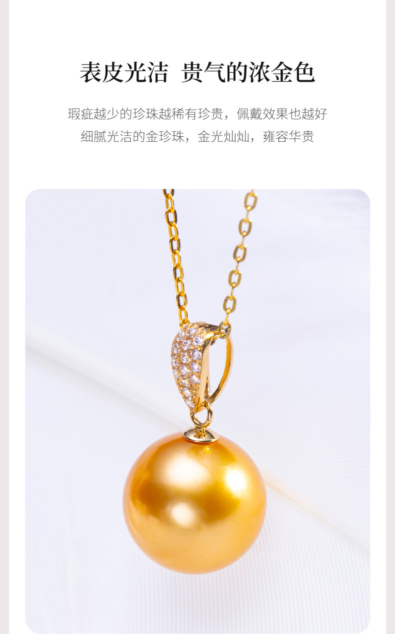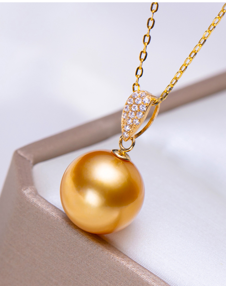 Nan Xi Brilliant Diamond Thickened 18K Gold South Sea Gold Beads Golden Pearl Pendant Seawater Pearl Necklace Single Female A Grade/Slightly Flawed 13-14mm+925 Silver Chain