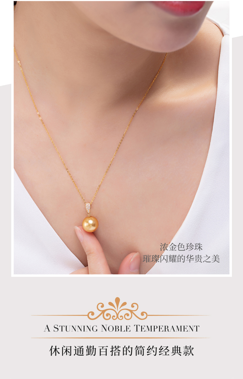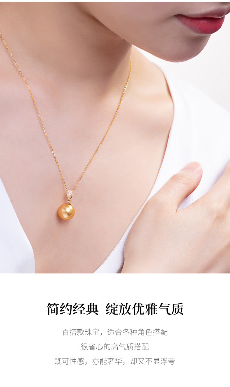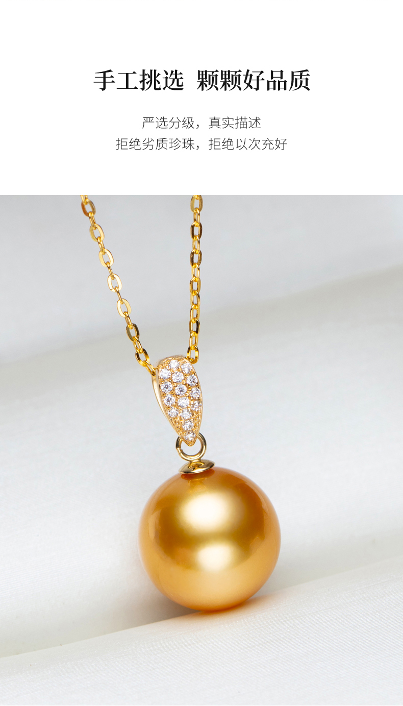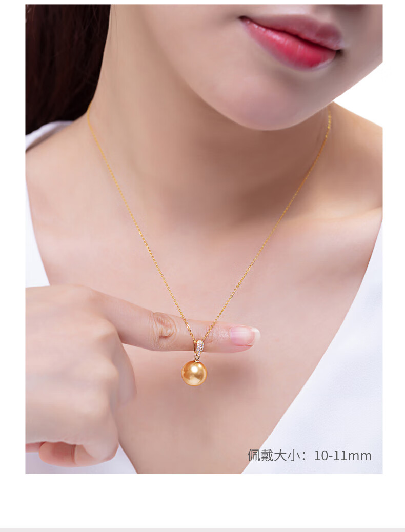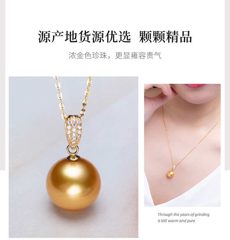 Nan Xi Brilliant Diamond Thickened 18K Gold South Sea Gold Beads Golden Pearl Pendant Seawater Pearl Necklace Single Female A Grade/Slightly Flawed 13-14mm+925 Silver Chain