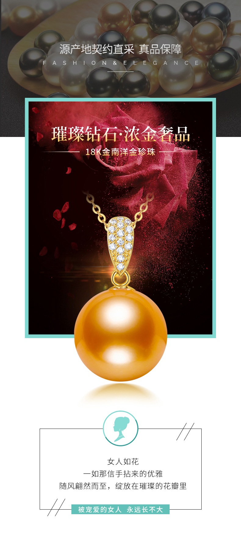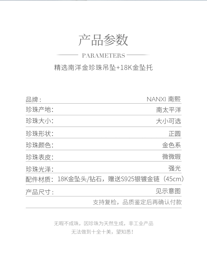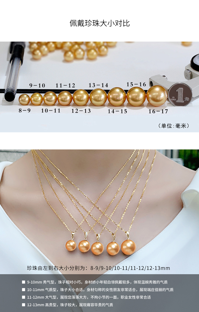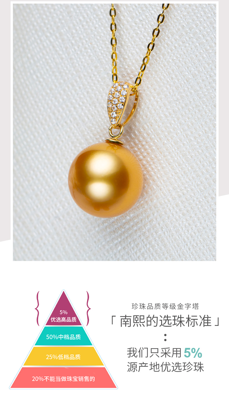 Nan Xi Brilliant Diamond Thickened 18K Gold South Sea Gold Beads Golden Pearl Pendant Seawater Pearl Necklace Single Female A Grade/Slightly Flawed 13-14mm+925 Silver Chain